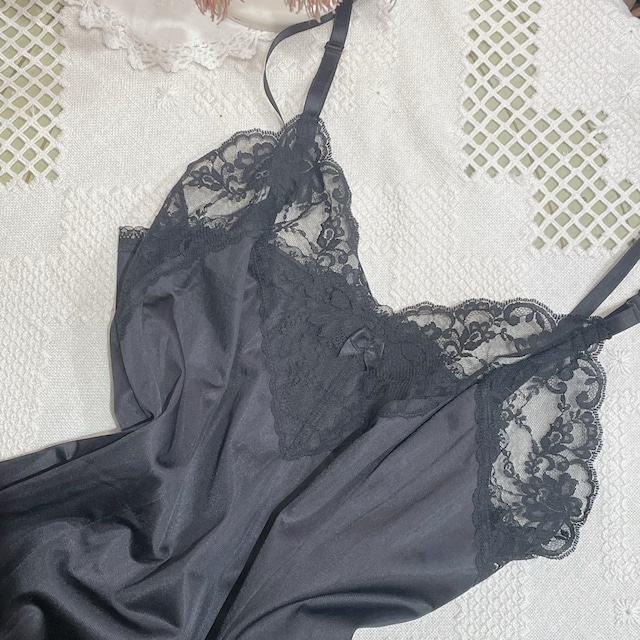 Details 透け感がございます。(写真16) ★ダメージ 目立つダメージはございません。 ★表記サイズ 80-90 ★実寸 着丈 約81㎝~(ストラップで調節可能。) 身幅 約41㎝ 多少の誤差はご容赦くださいませ。 モデル身長163㎝ ★素材 身生地 ポリエステル 100% レース部分 ナイロン 100% ★ダメージ以外にも、全体に古着商品特有の使用感があります。実際と若干お色味が異なる場合があります。ご了承お願い致します。 ★お客様のご都合によるキャンセル、返品、交換は固くお断りしております。