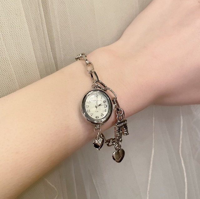 シルバーパリモチーフ×ハート時計