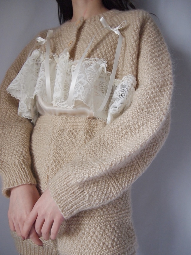 ベージュニットレースショート丈カーディガン