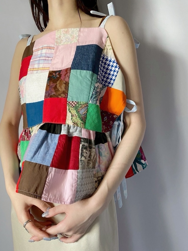 Details ヴィンテージの生地を使用したパッチワークキャミソール。個性的なデザインで、普段使いにも特別な日にもぴったりです。リボンで着丈と身幅を調節できるため、自分だけのスタイルを楽しめます。 ★ダメージ 目立つダメージはございません。 ★表記サイズ 表記なし ★実寸 着丈 約42㎝~(前中心から採寸。リボンで調節可能。) 身幅 約51.5㎝~(リボンで調節可能。) 多少の誤差はご容赦くださいませ。 モデル身長163㎝ ★素材 表記なし ★ダメージ以外にも、全体に古着商品特有の使用感があります。実際と若干お色味が異なる場合があります。ご了承お願い致します。 ★お客様のご都合によるキャンセル、返品、交換は固くお断りしております。
