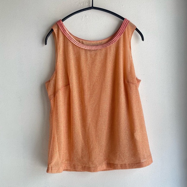 Details ★ダメージ 細かい傷がございます。(写真14.15) ★表記サイズ 表記なし ★実寸(スパンコール部分のみ採寸) 着丈 約16㎝(チェーンで、調節可能。) 身幅 約45.5㎝(チェーンで、調節可能。) 多少の誤差はご容赦くださいませ。 モデル身長163㎝ ★素材 表記なし ★ダメージ以外にも、全体に古着商品特有の使用感があります。実際と若干お色味が異なる場合があります。ご了承お願い致します。 ★お客様のご都合によるキャンセル、返品、交換は固くお断りしております。