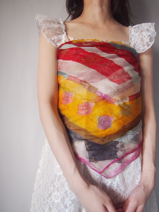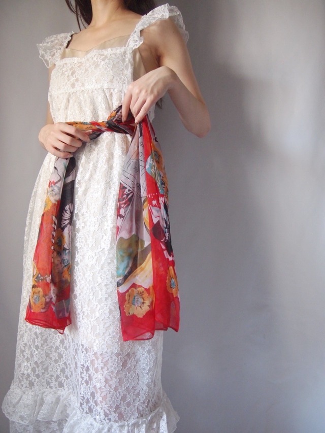 Details 透け感がございます。(写真8) ★ダメージ 所々に伝線している箇所がございます。(写真9.10) ★実寸 縦 約179㎝ 横 約71㎝ 多少の誤差はご容赦くださいませ。 ★素材 シルク100% ★ダメージ以外にも、全体に古着商品特有の使用感があります。実際と若干お色味が異なる場合があります。ご了承お願い致します。 ★お客様のご都合によるキャンセル、返品、交換は固くお断りしております。