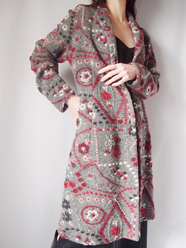 グレー×レッドお花デザインコート
