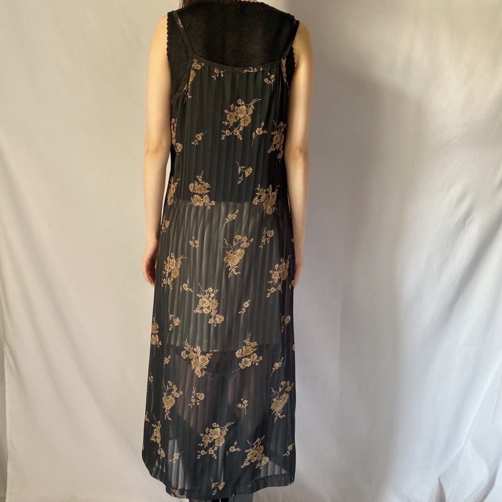 ブラック花柄シアーキャミワンピース