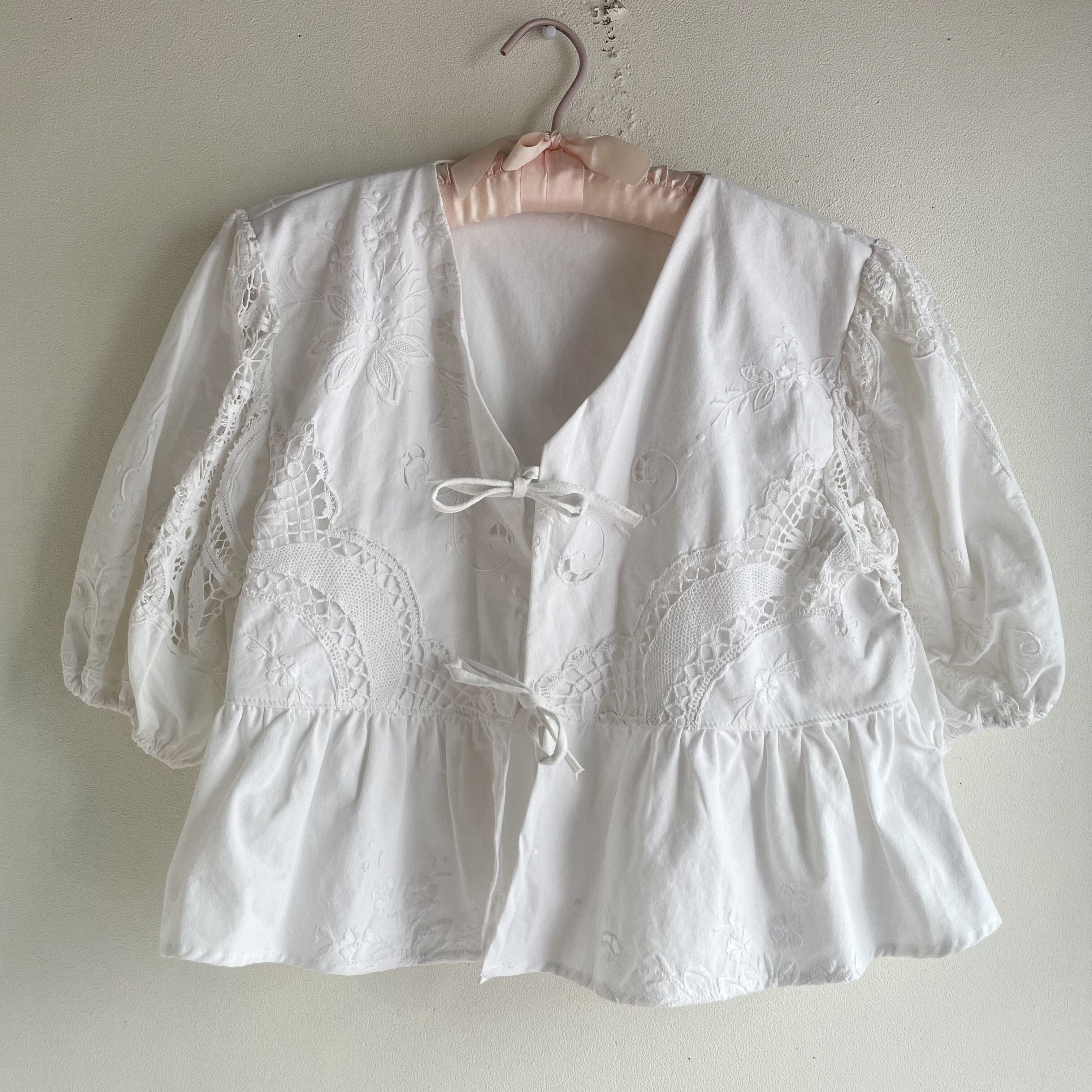 ホワイト刺繍かぎ編みブラウス