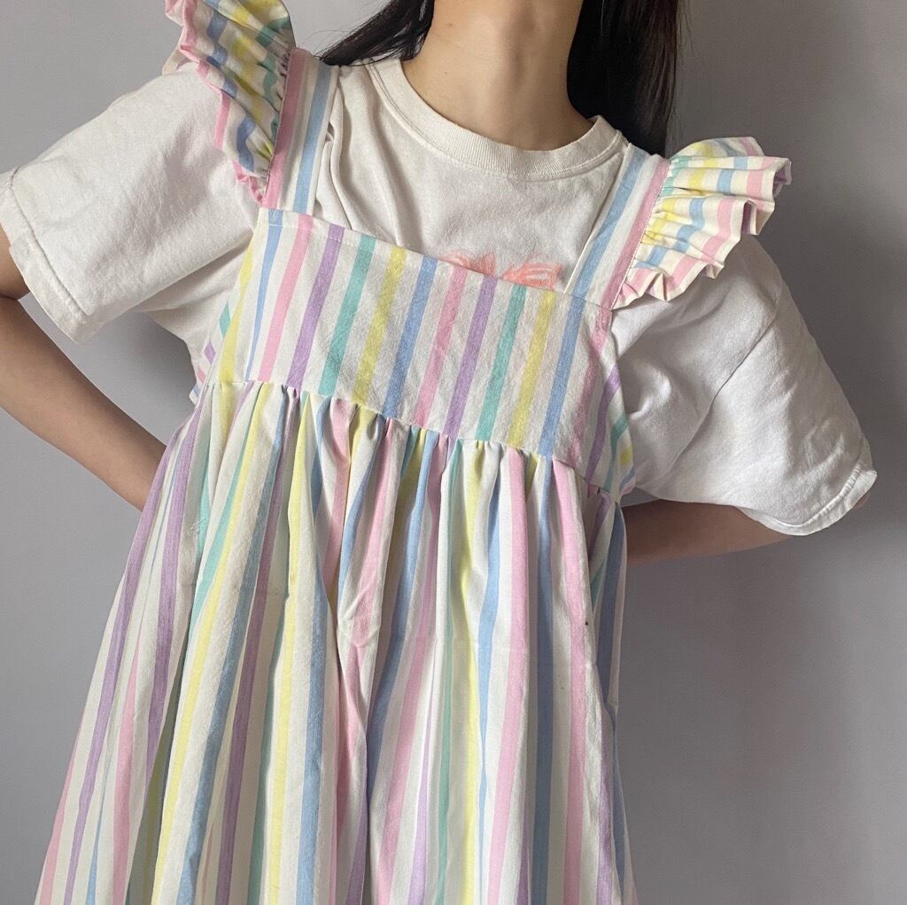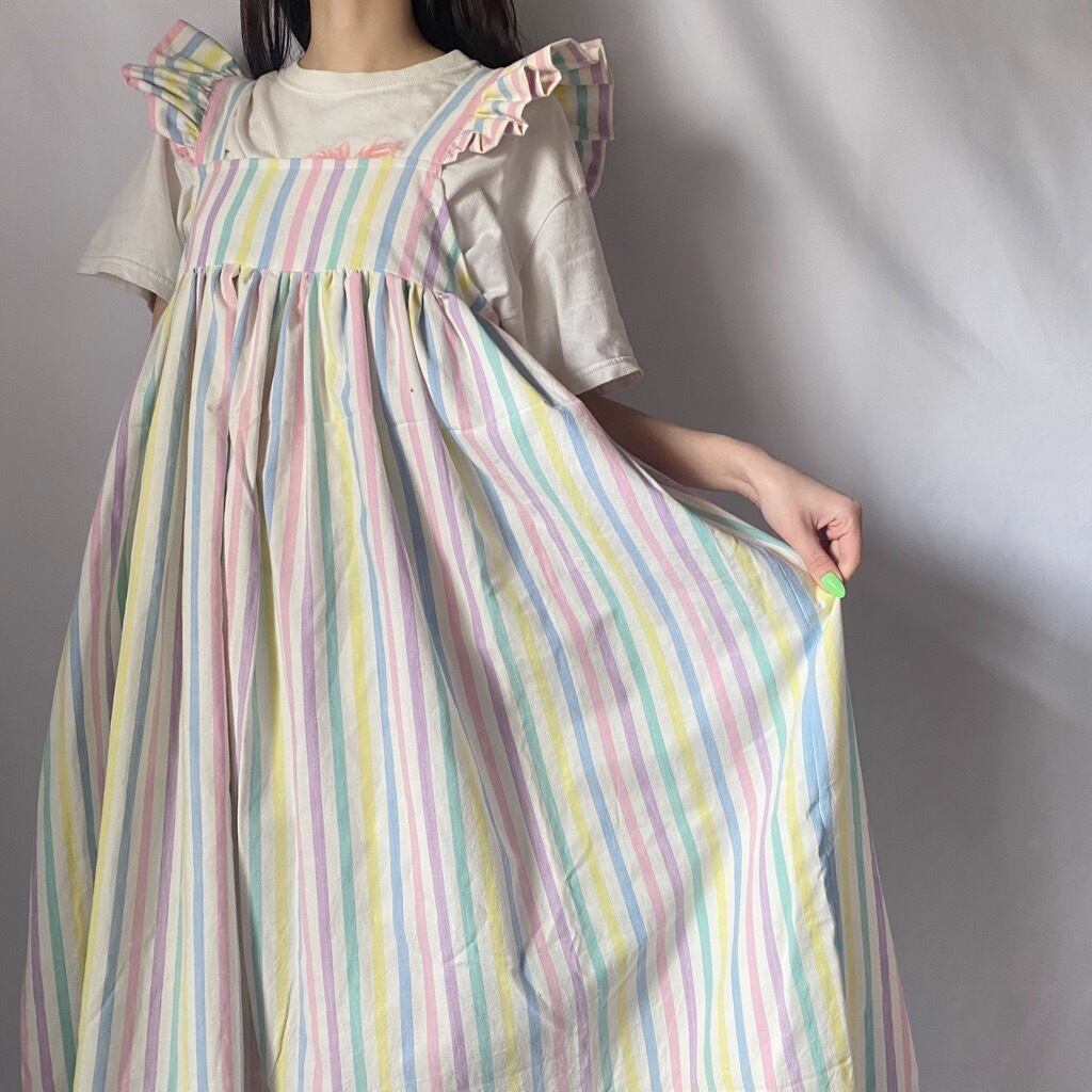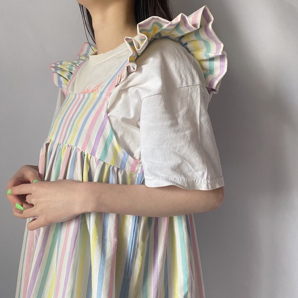 カラフルストライプフリルワンピース