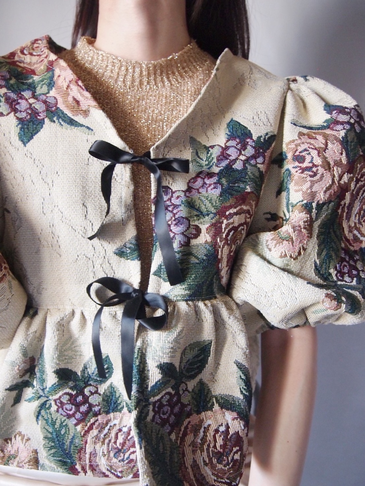 ゴブラン花柄ショートスリーブジャケット