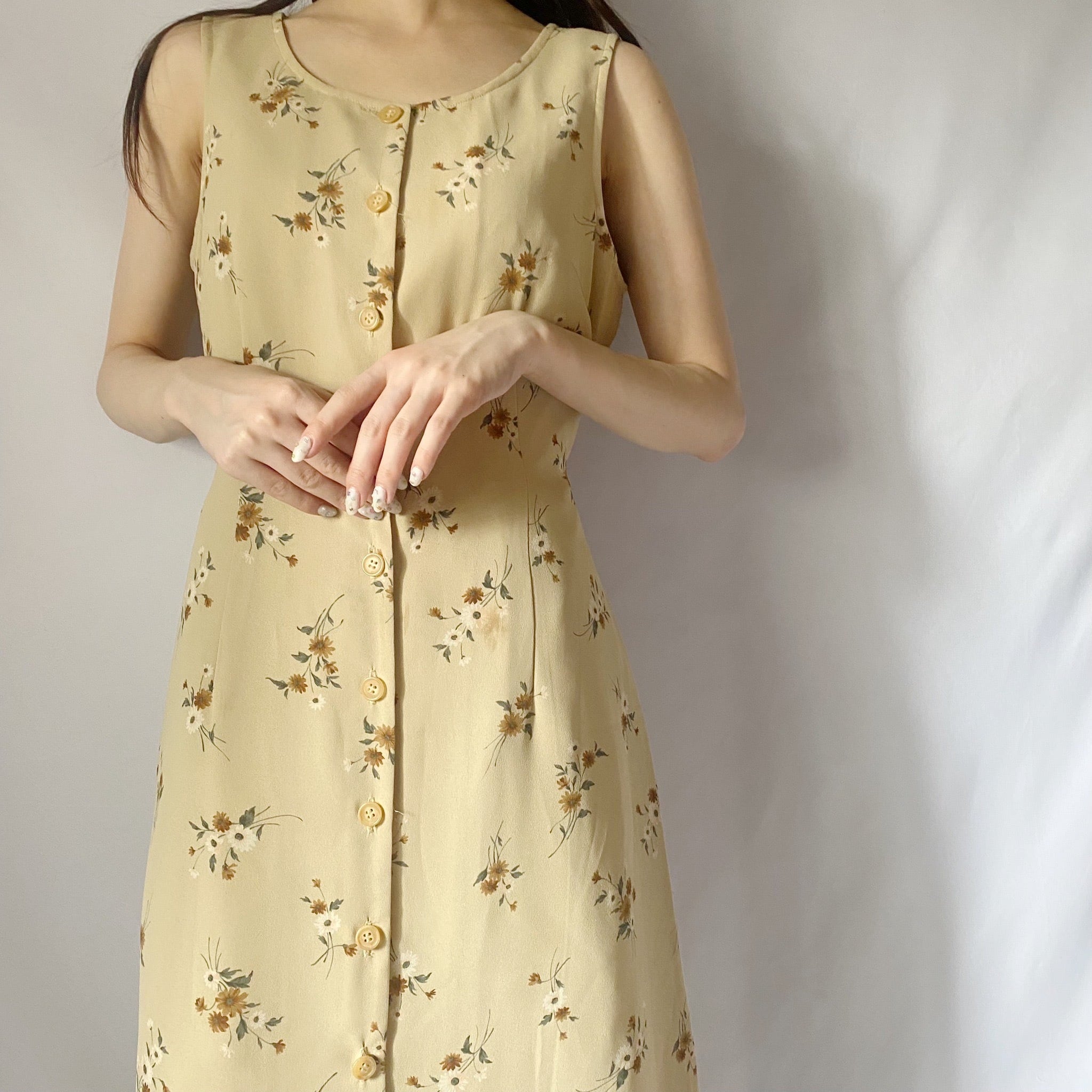 ベージュノースリーブフラワーワンピース