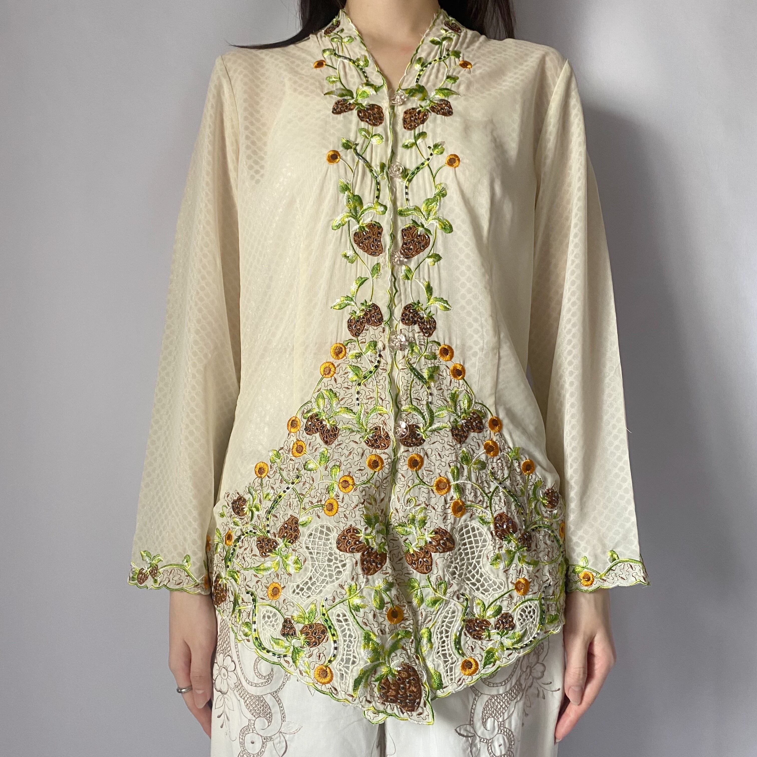 いちご刺繍シャツ