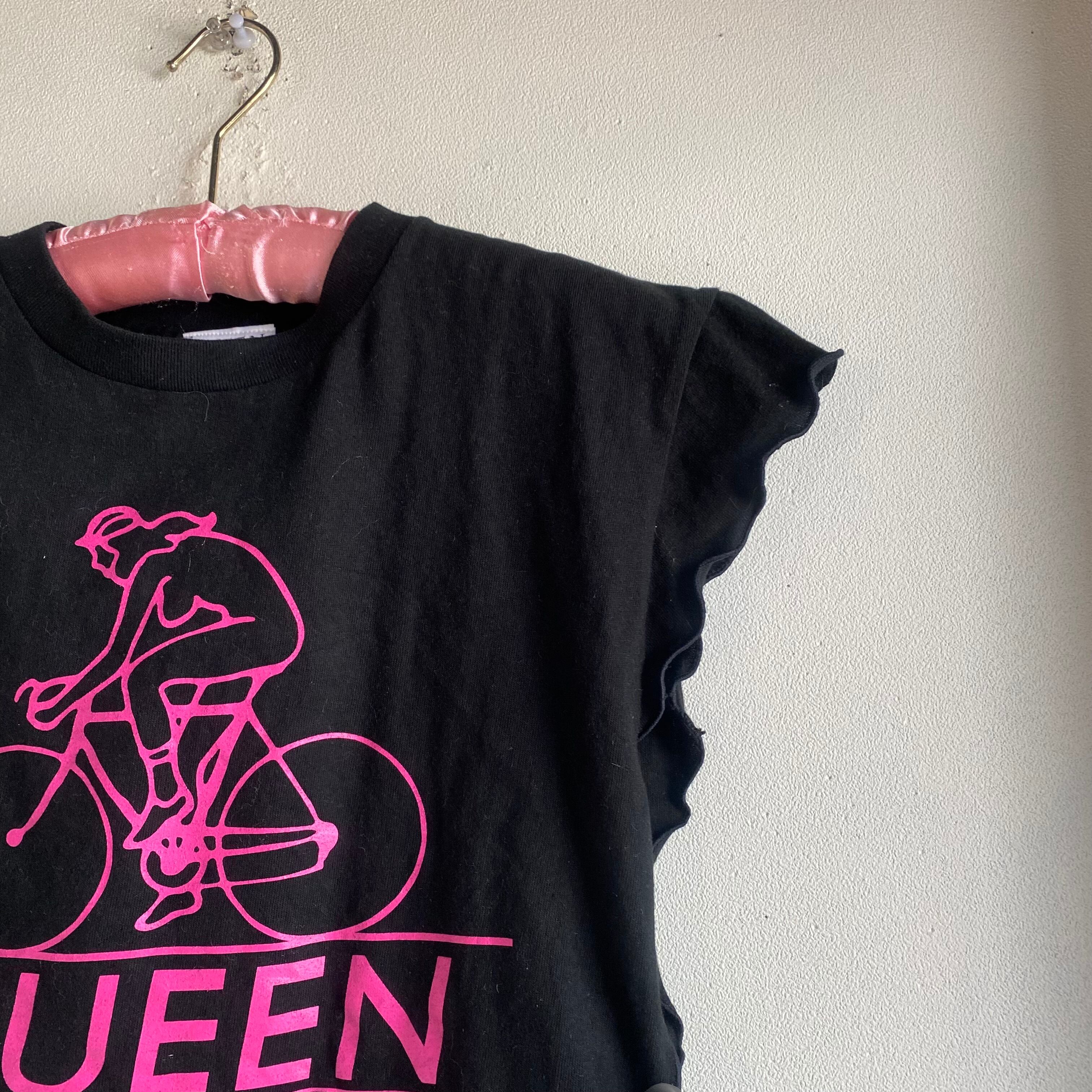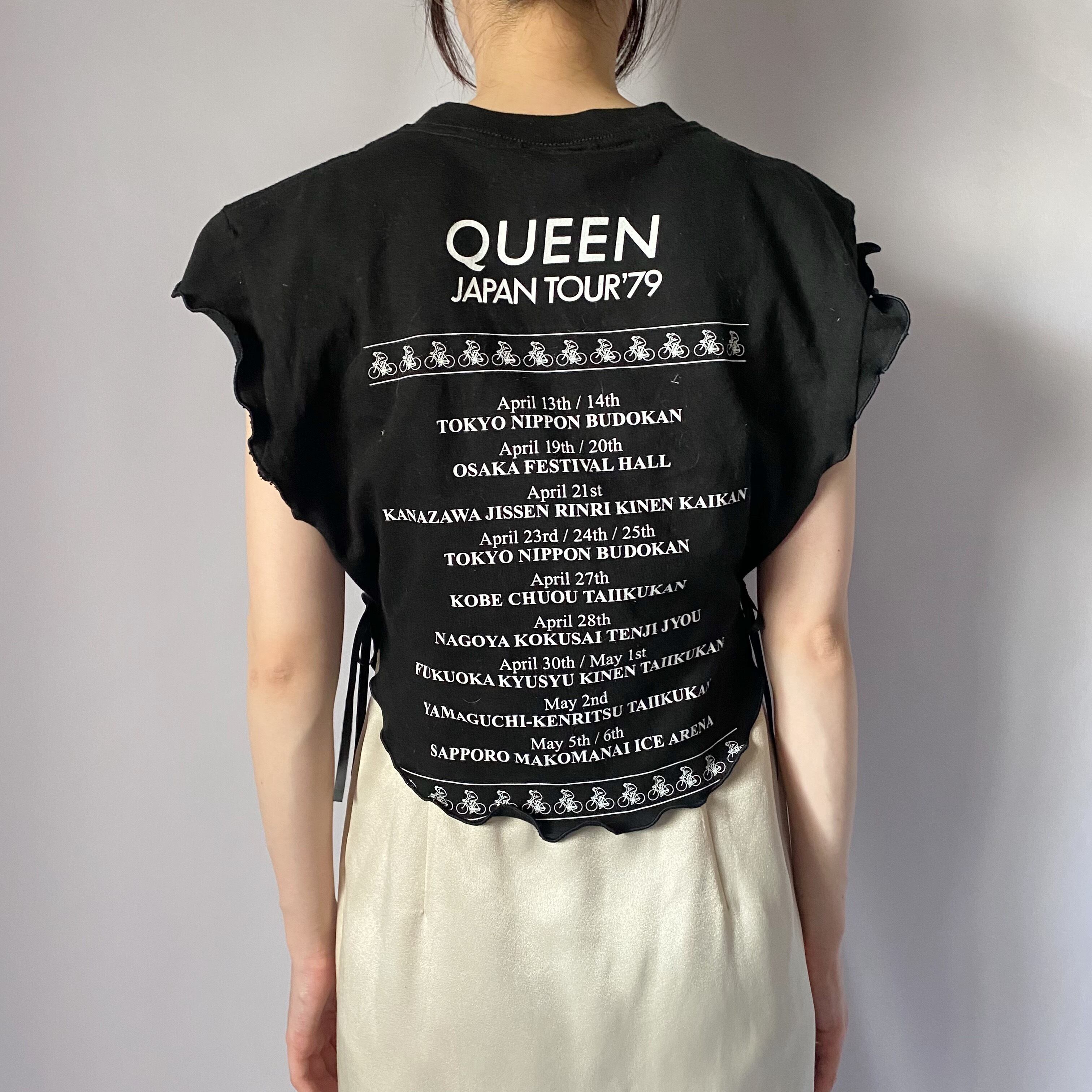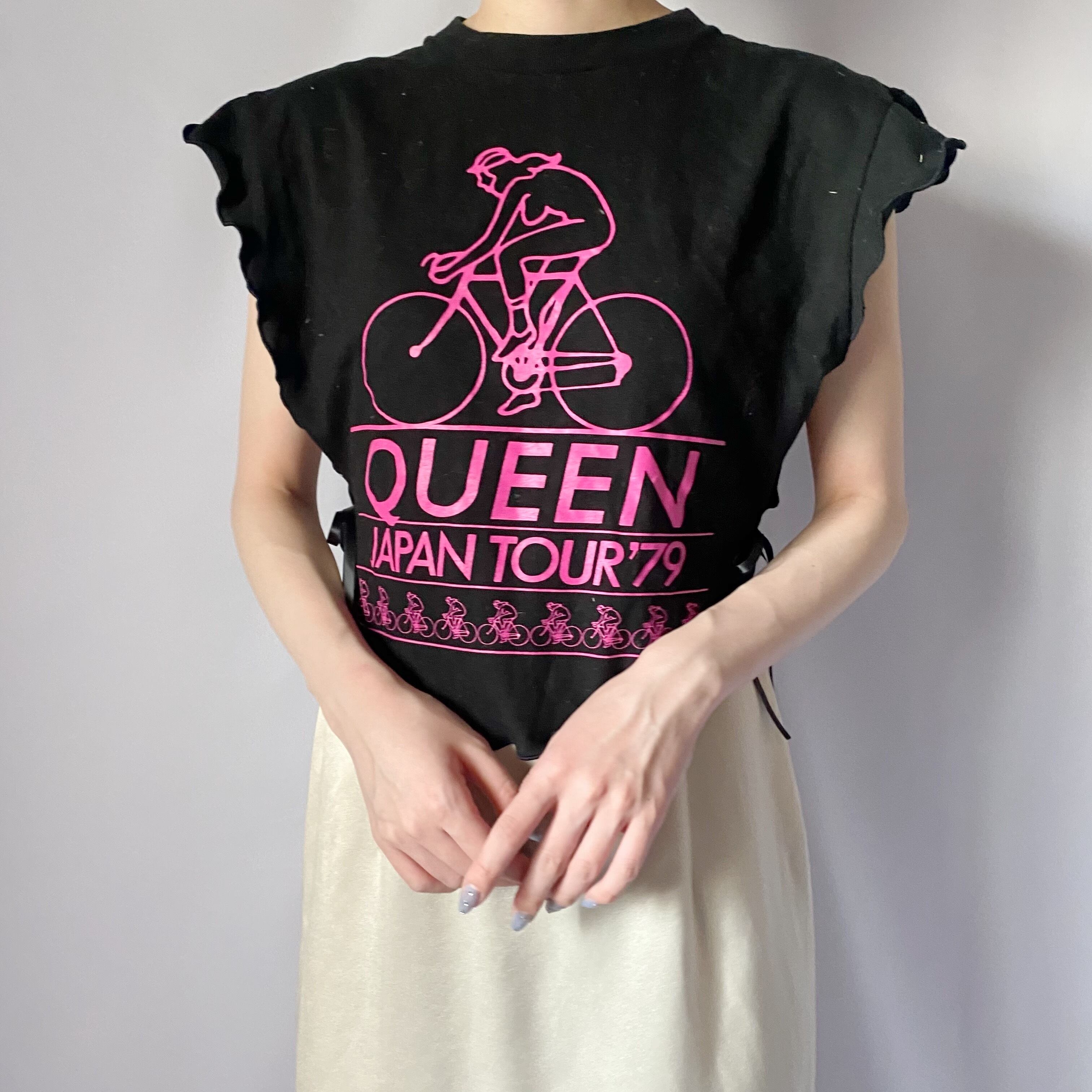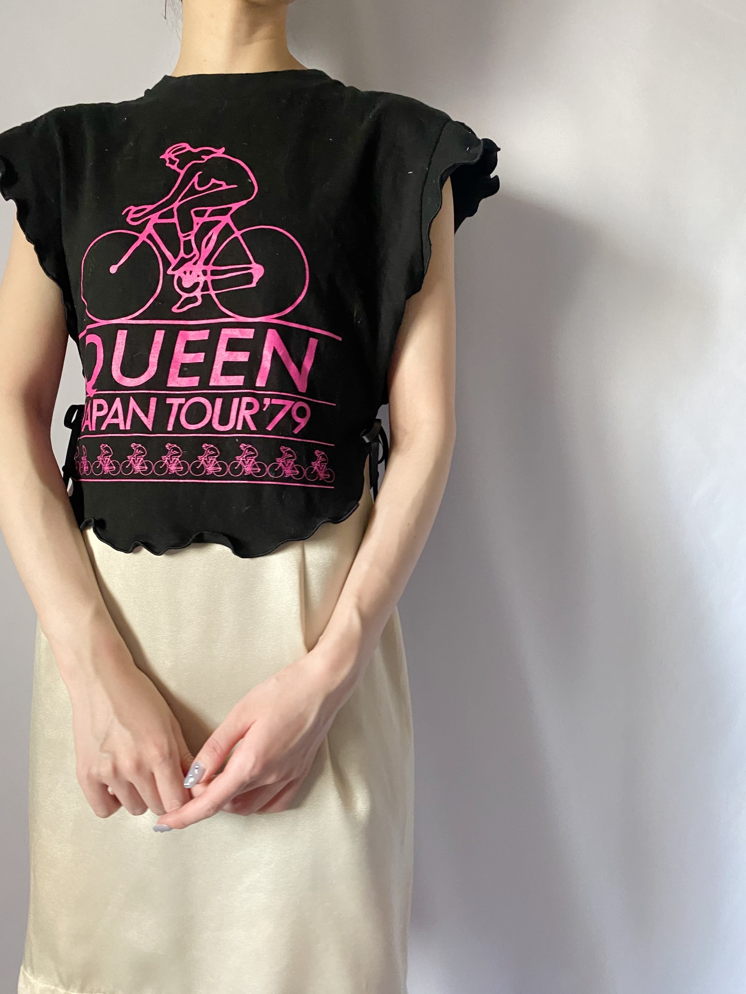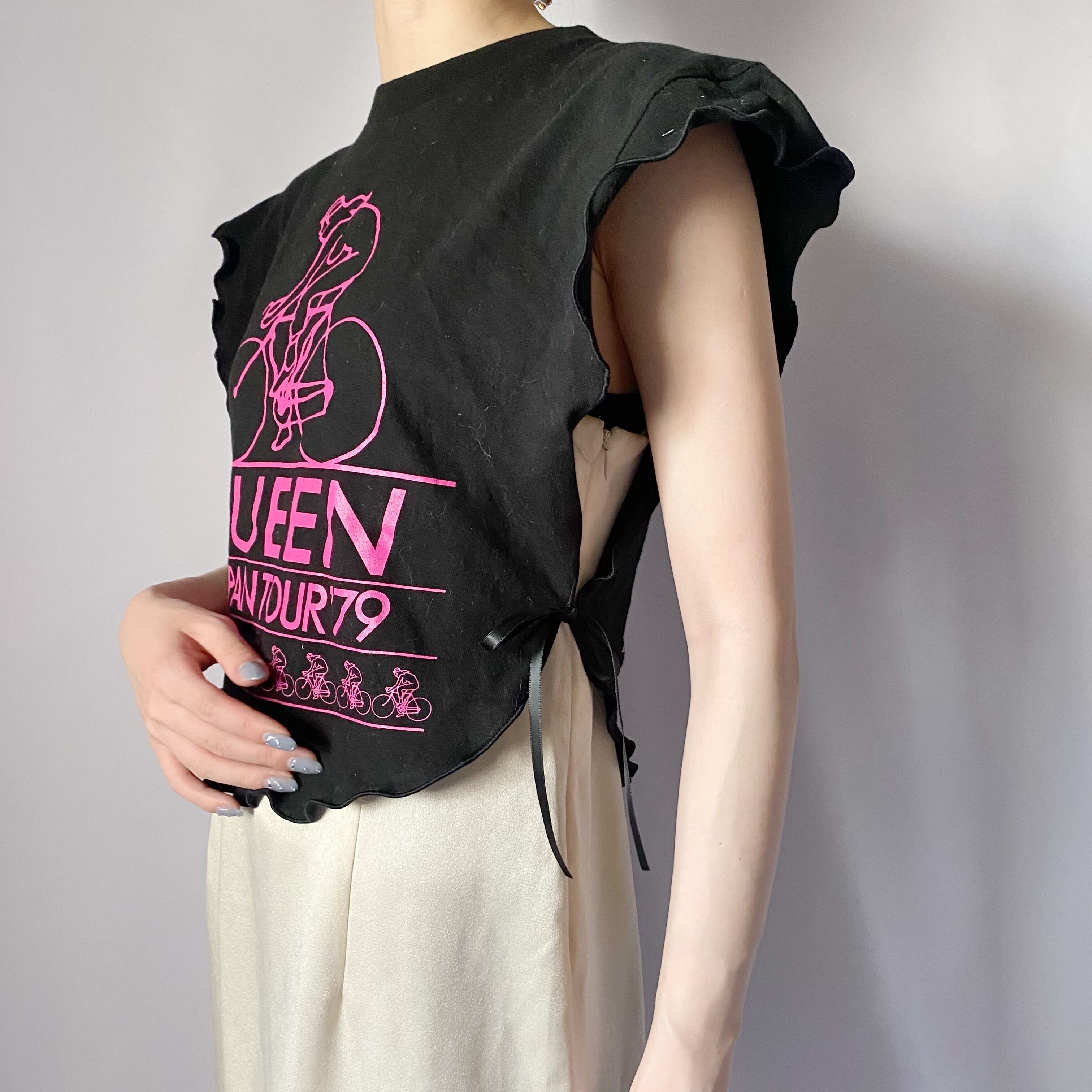 ビンテージTシャツをリメイクした、個性あふれるメロートップスです。独特のメローカットが施されており、カジュアルながらも華やかさを演出します。さまざまなボトムスと相性が良く、日常使いから特別な日まで幅広く活躍する一枚です。シンプルながらも、存在感のあるデザインが魅力です