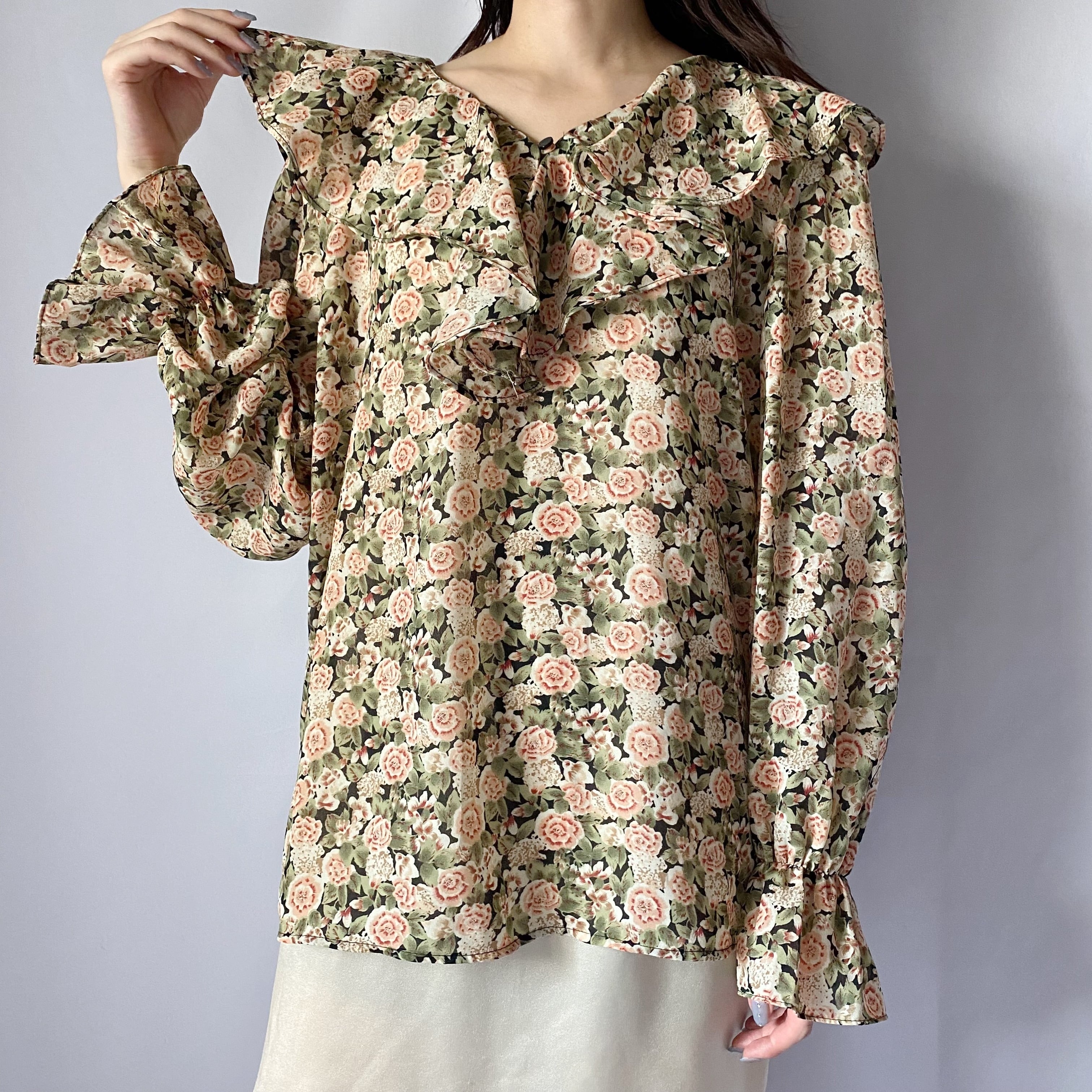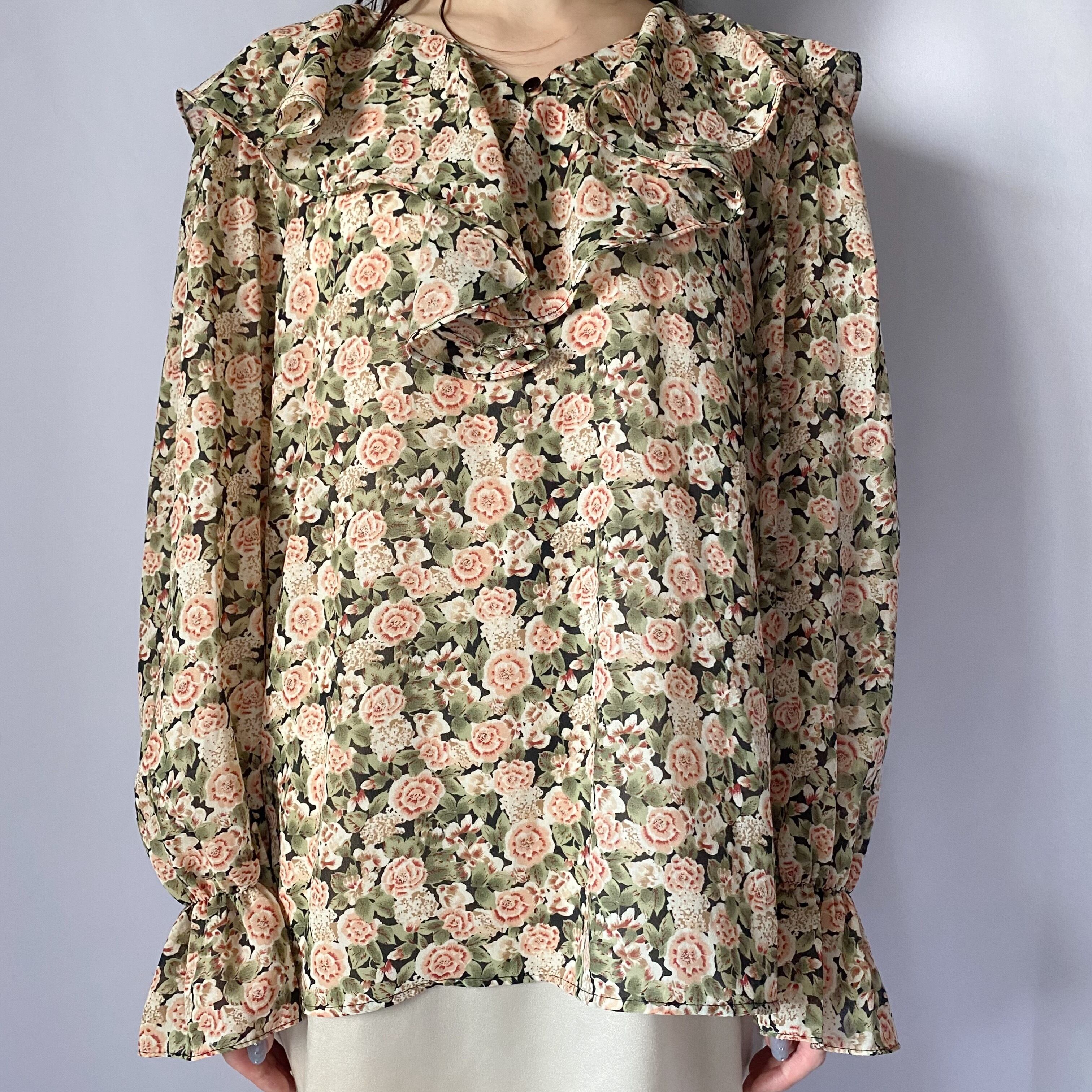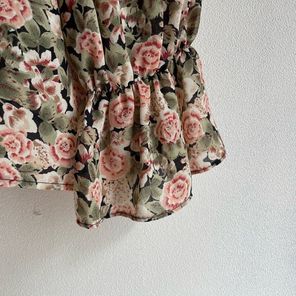 花柄ラッフルトップス