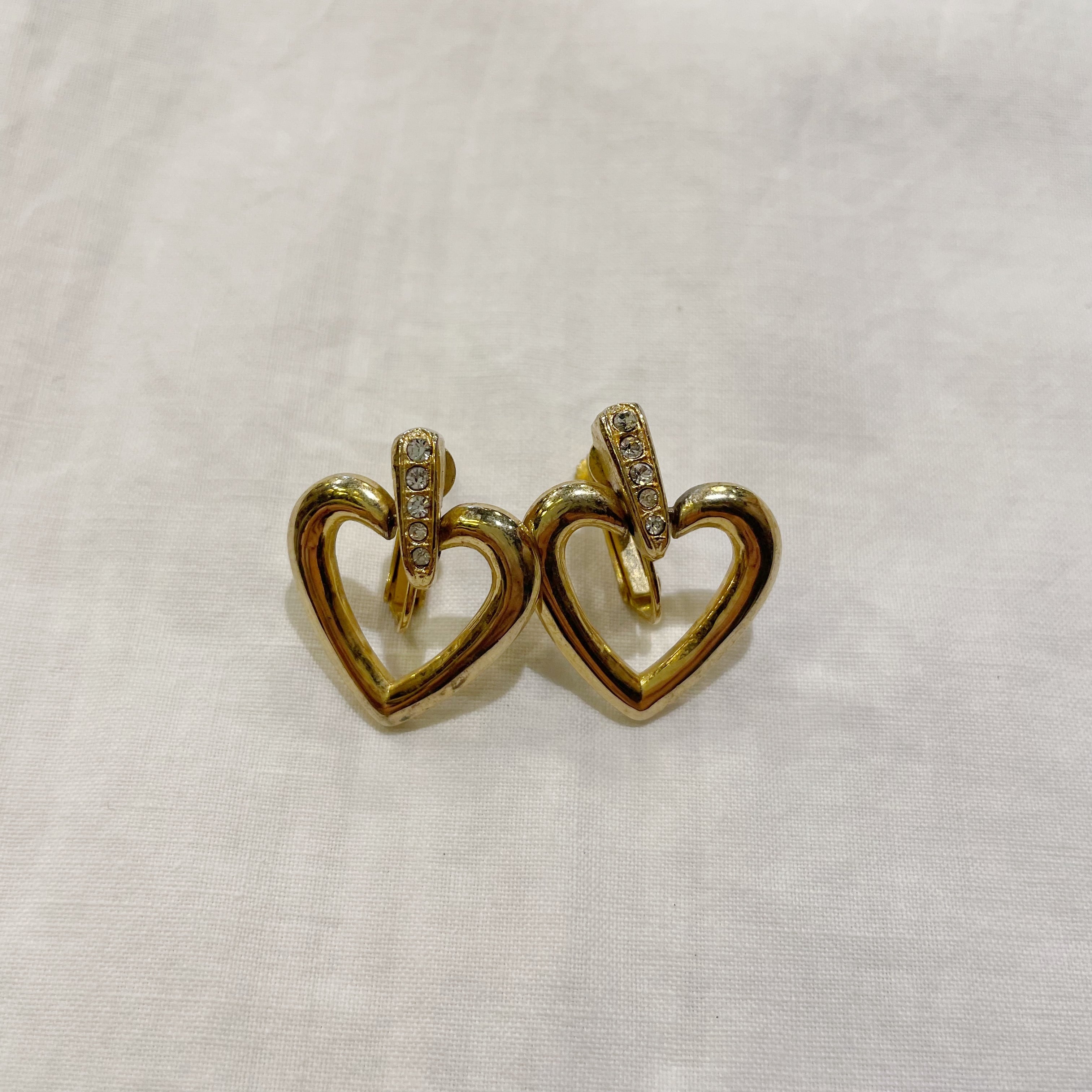 ゴールドハートビジューイヤリング