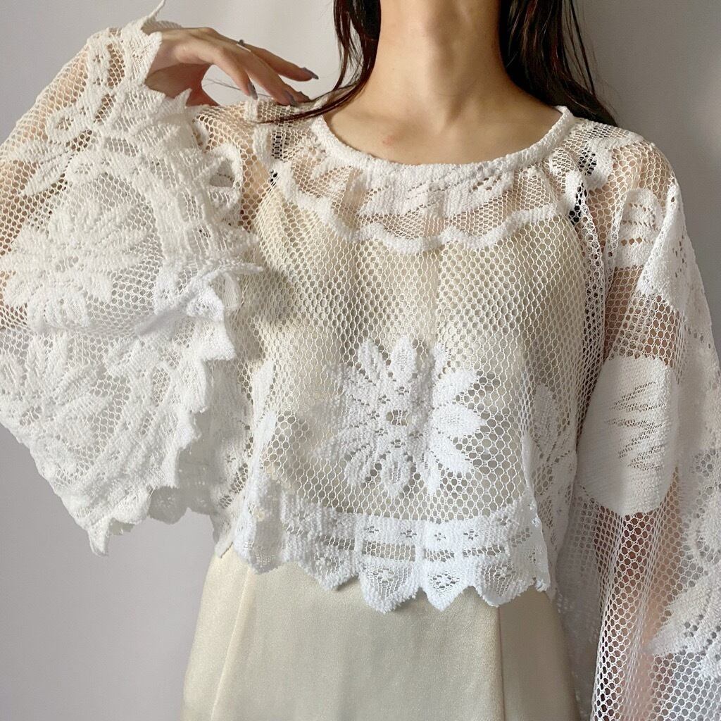 ヴィンテージレースを贅沢に1枚まるまる使ったレーストップス。 どんなコーディネートにも合わせやすく、特別な日のお出かけにはもちろん、普段使いにも最適な一着です。