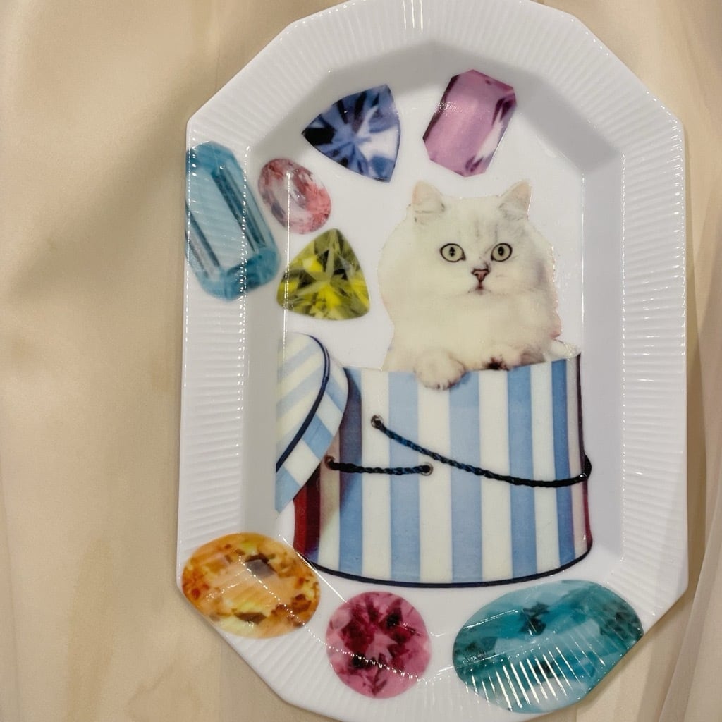 ヴィンテージのお皿たちをお気に入りのモチーフたちでひとつひとつプリントしております。