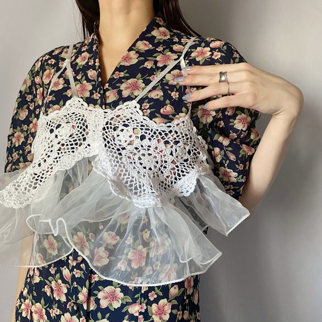 ホワイトハートかぎ編みフリルブラ