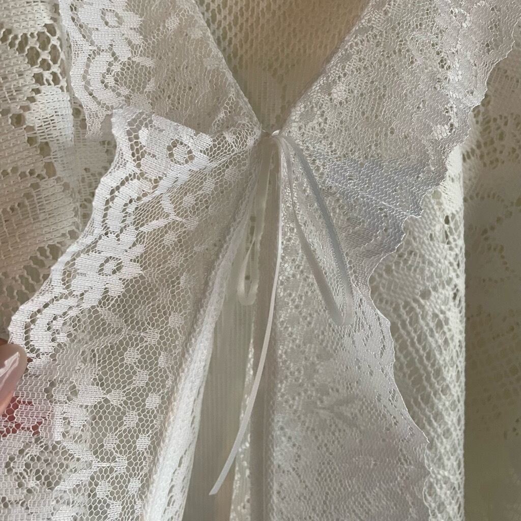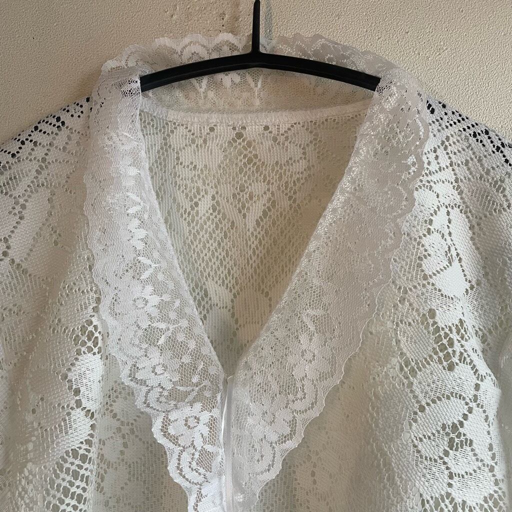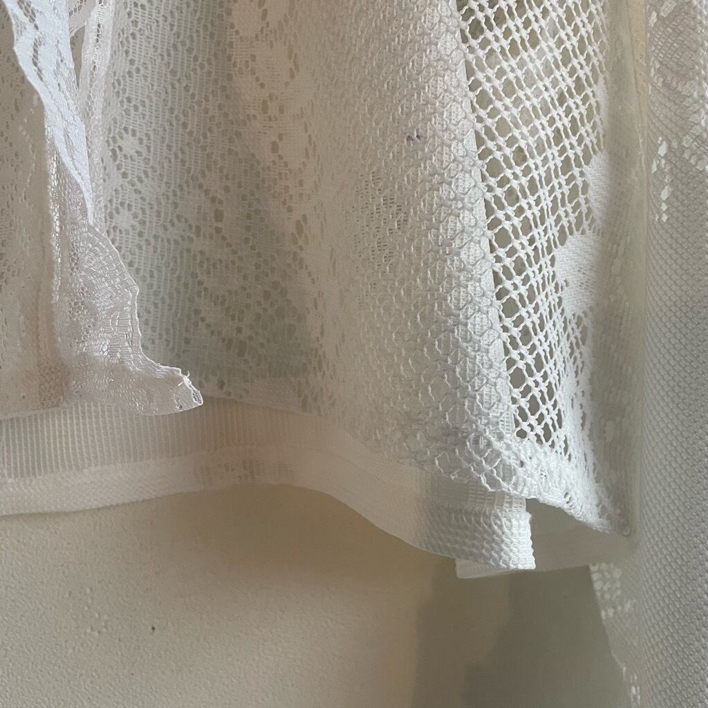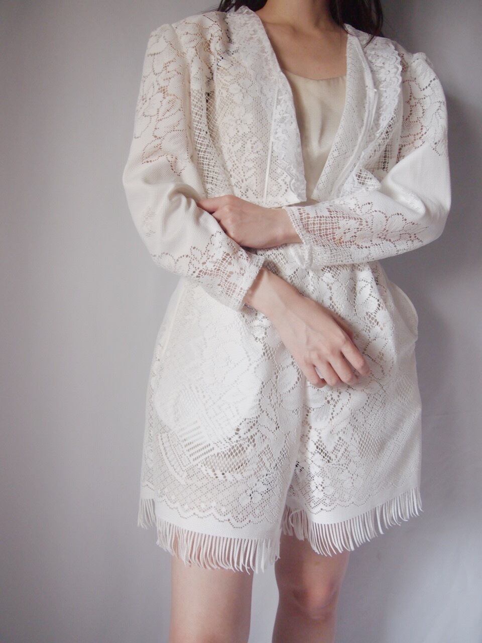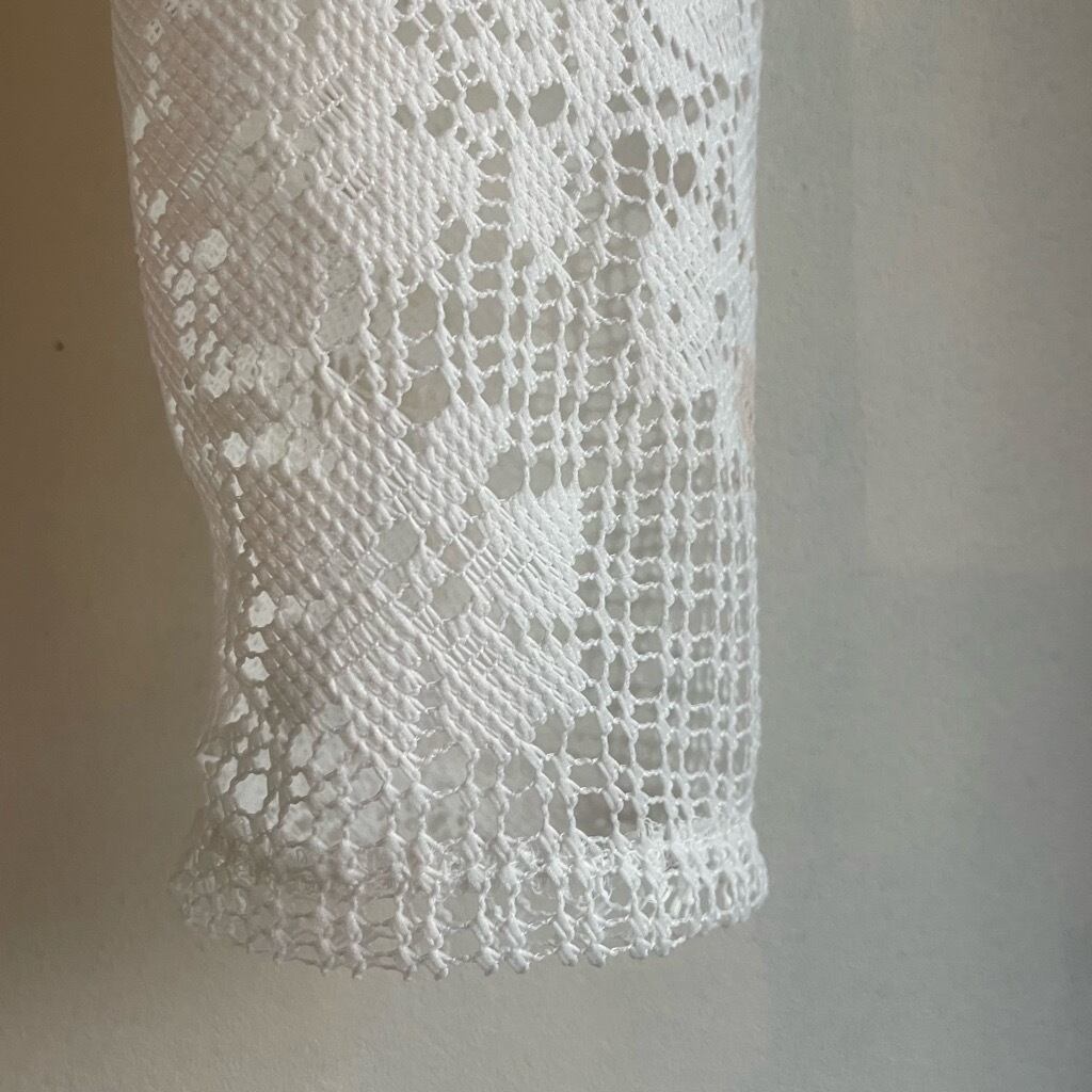 軽やかでありながらエレガントな雰囲気を持つ一着です。細やかなレースのディテールが、どんなシーンでも華やかさをプラスします。シンプルなトップスやドレスと合わせることで、スタイリッシュなコーディネートを楽しむことができます。襟のレースは、立たせてもねかせても素敵です。