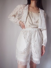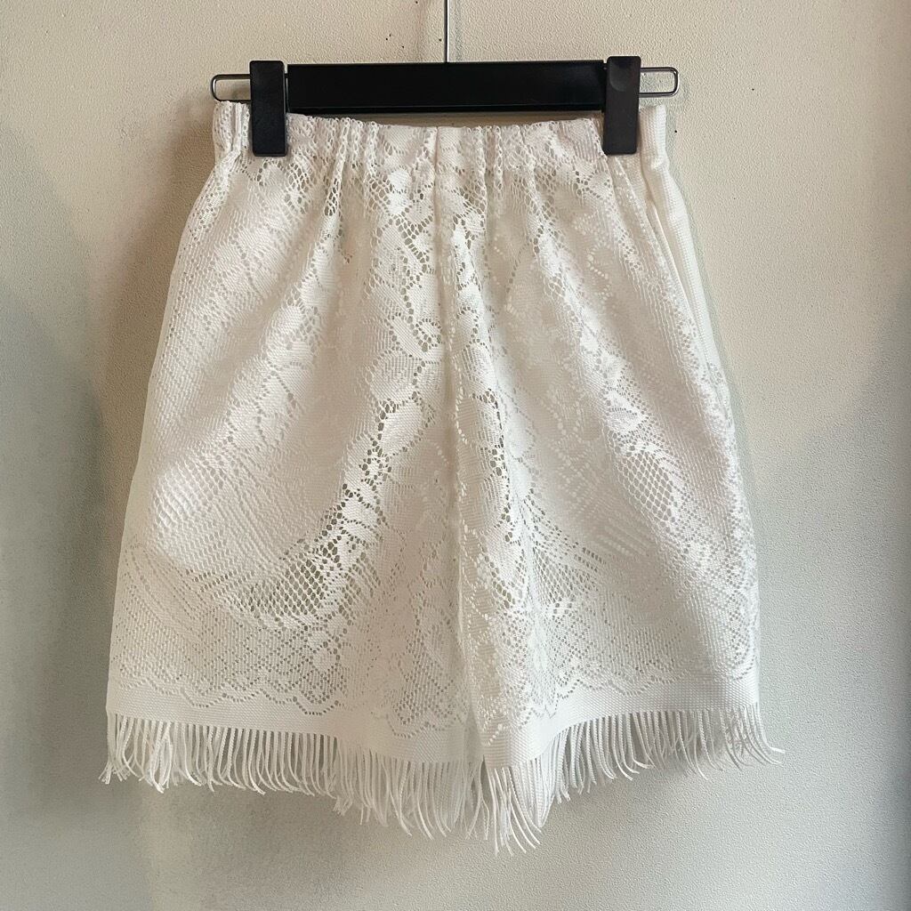 ホワイトレースフリンジショートパンツ