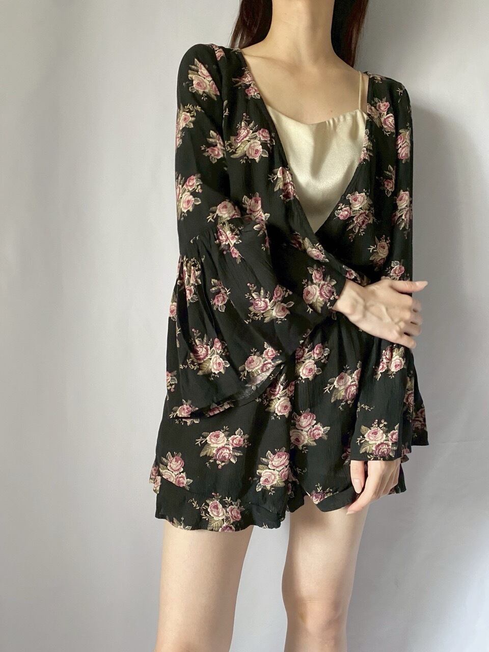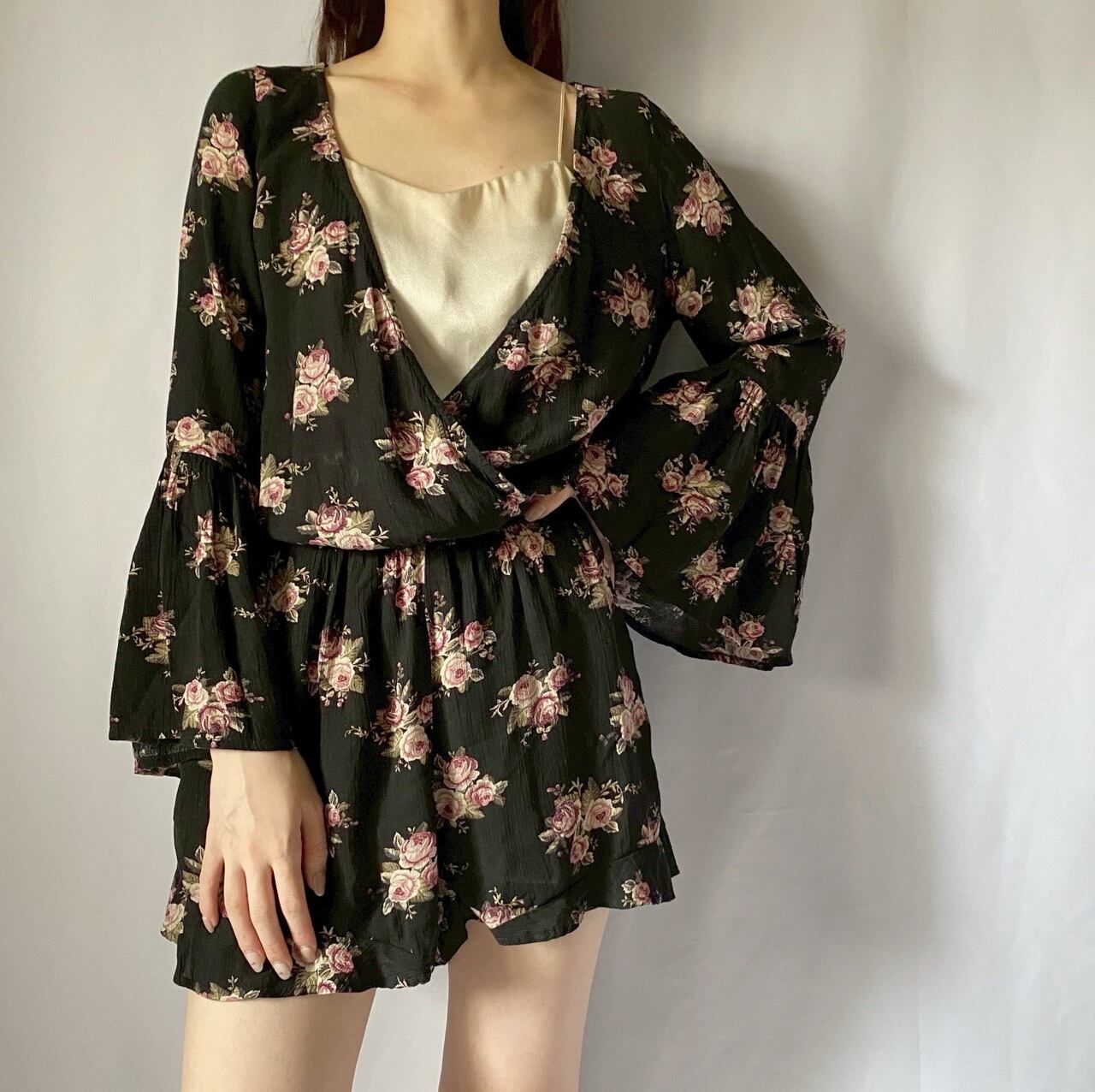 ブラック花柄ロンパース