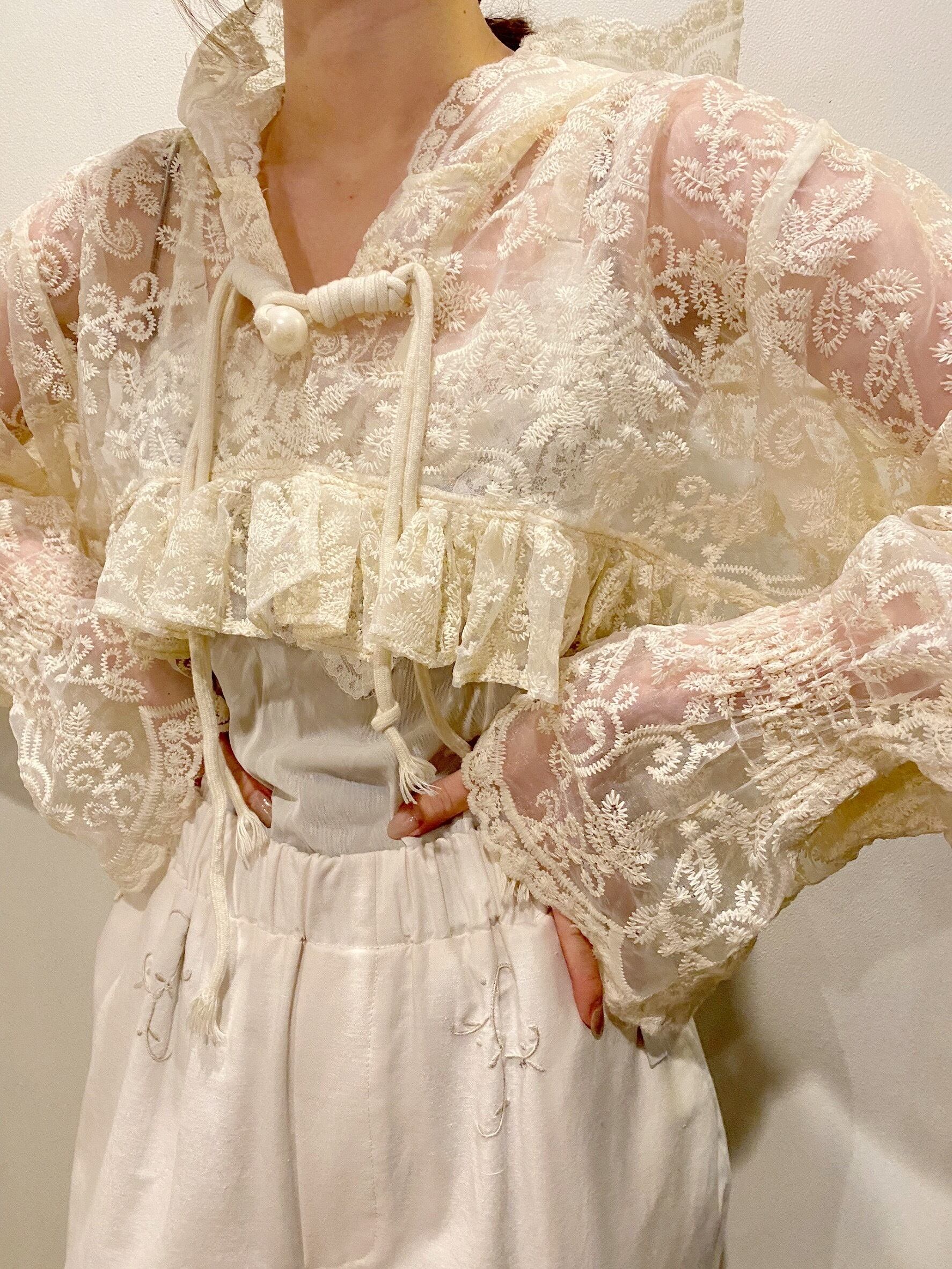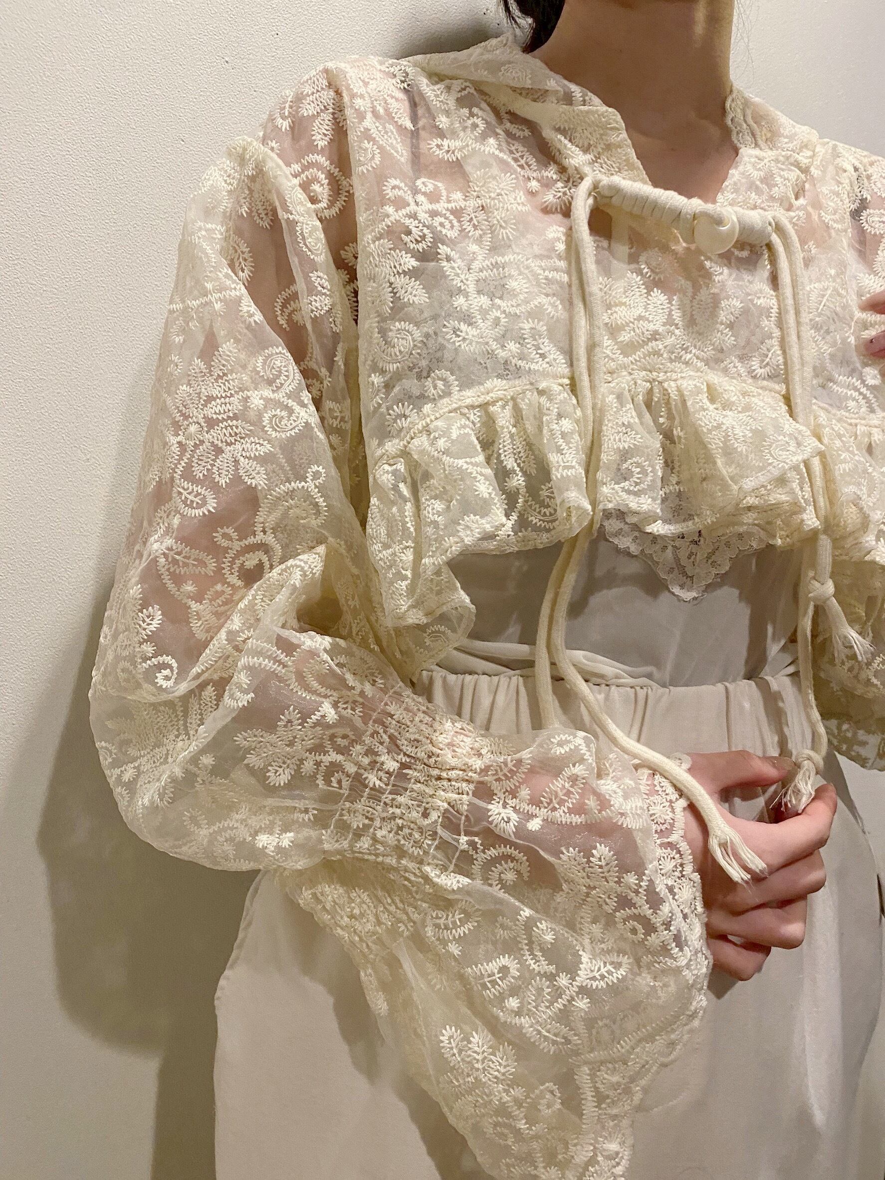 アイボリー刺繍ショート丈トップス