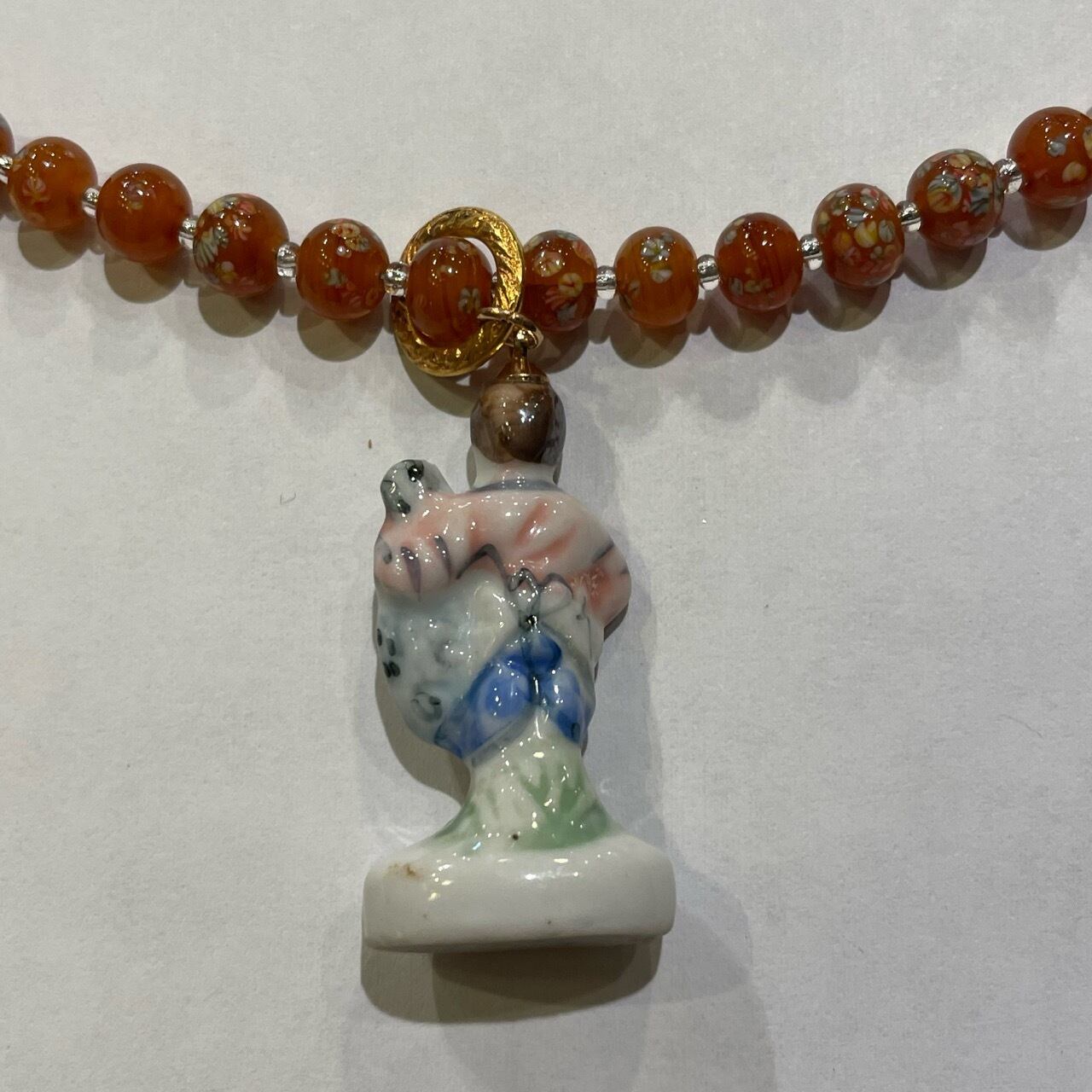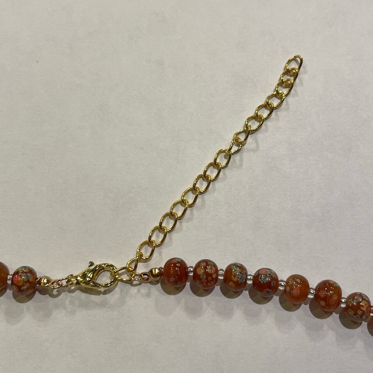 ヴィンテージガラスビーズ ブラウン×お魚屋さん