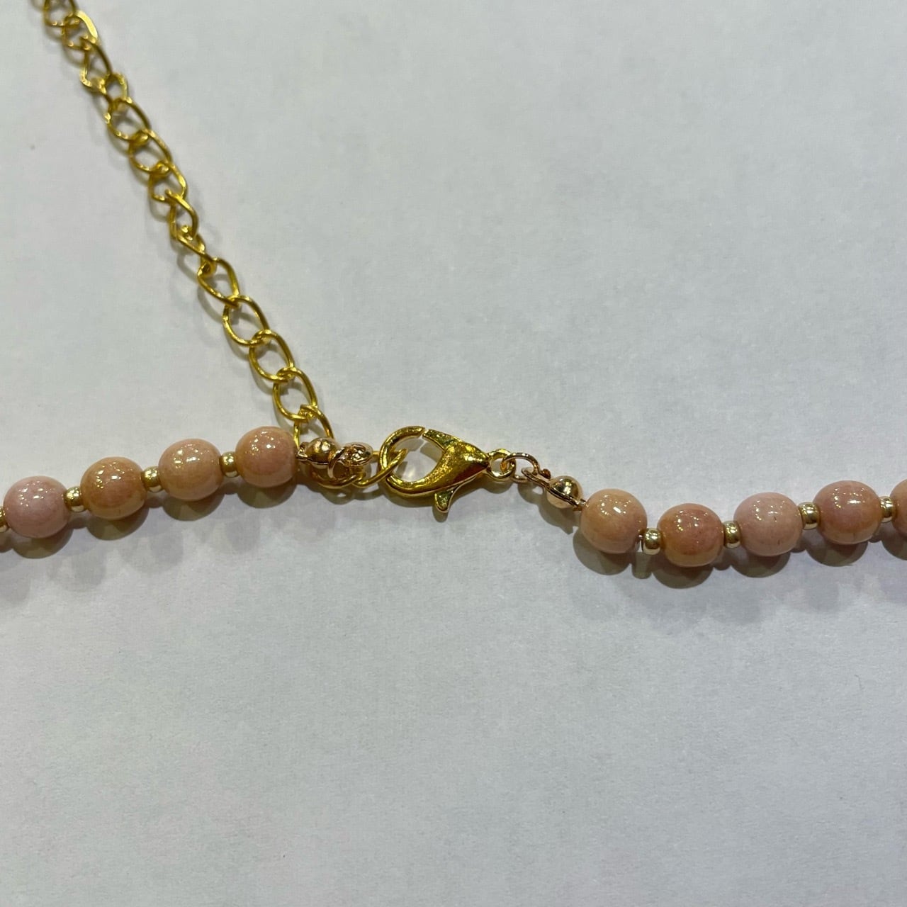 チェコガラスビーズ ピンク系×椅子の布張り職人