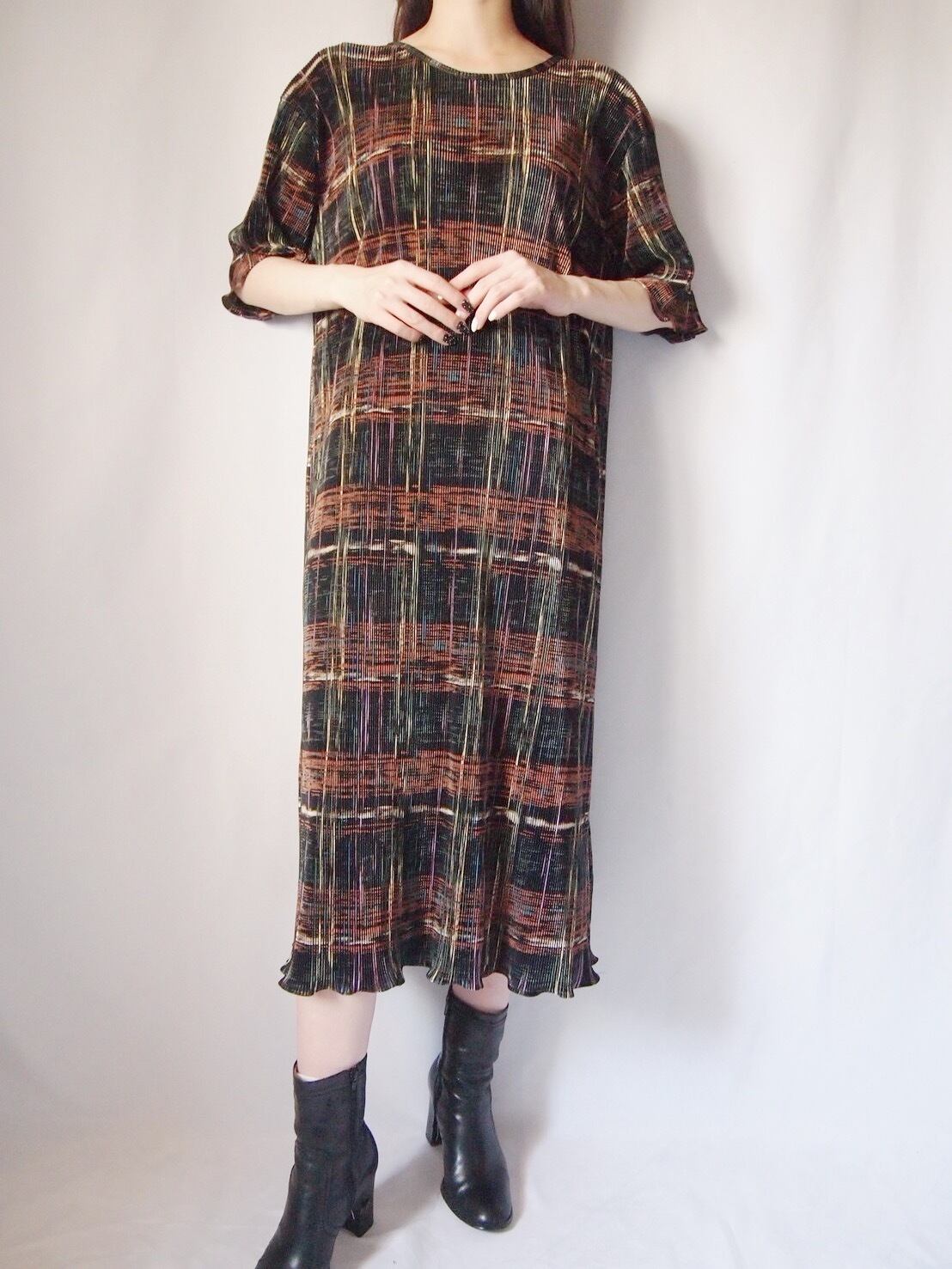 プリーツデザインワンピース