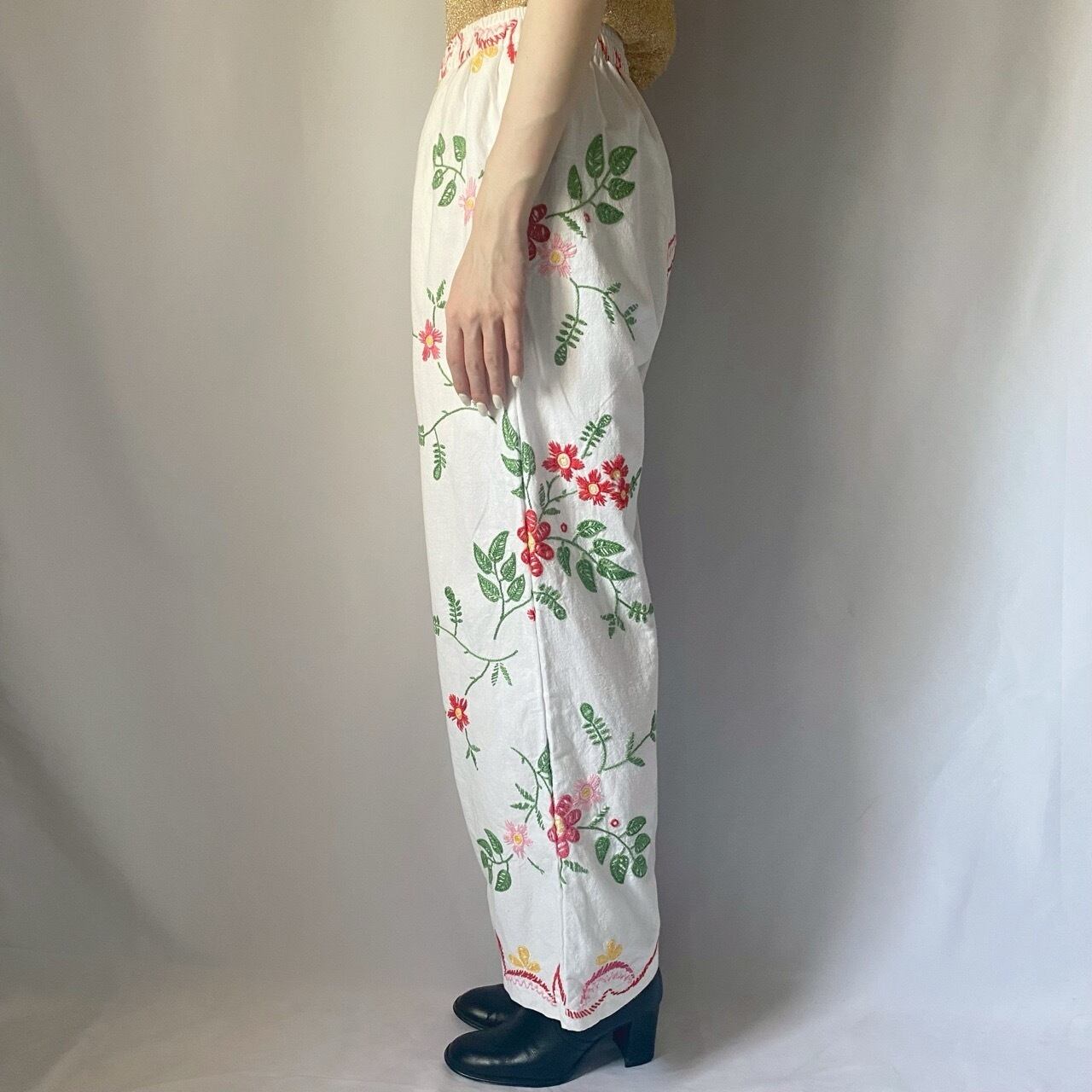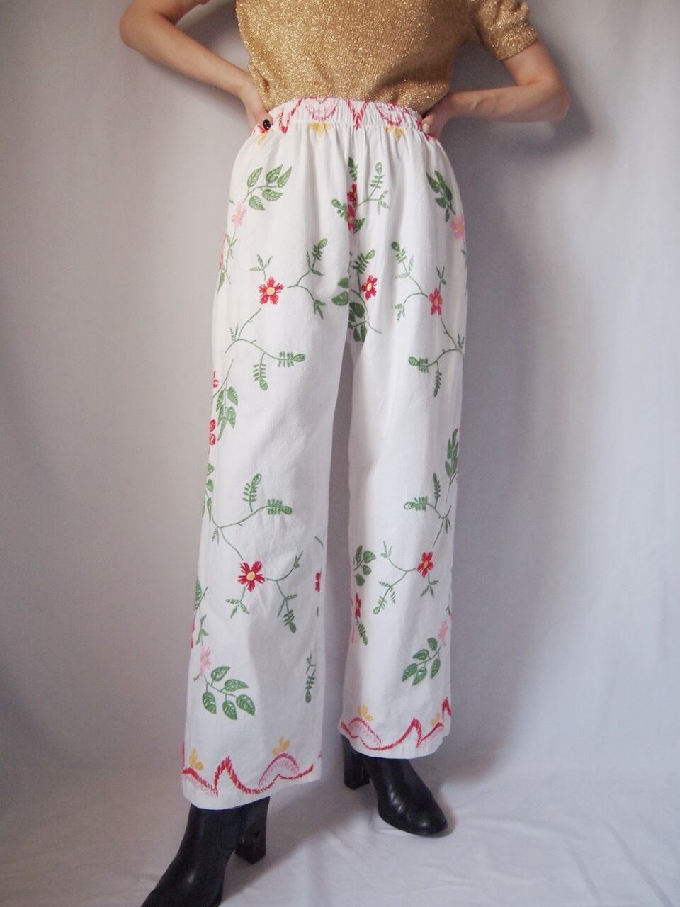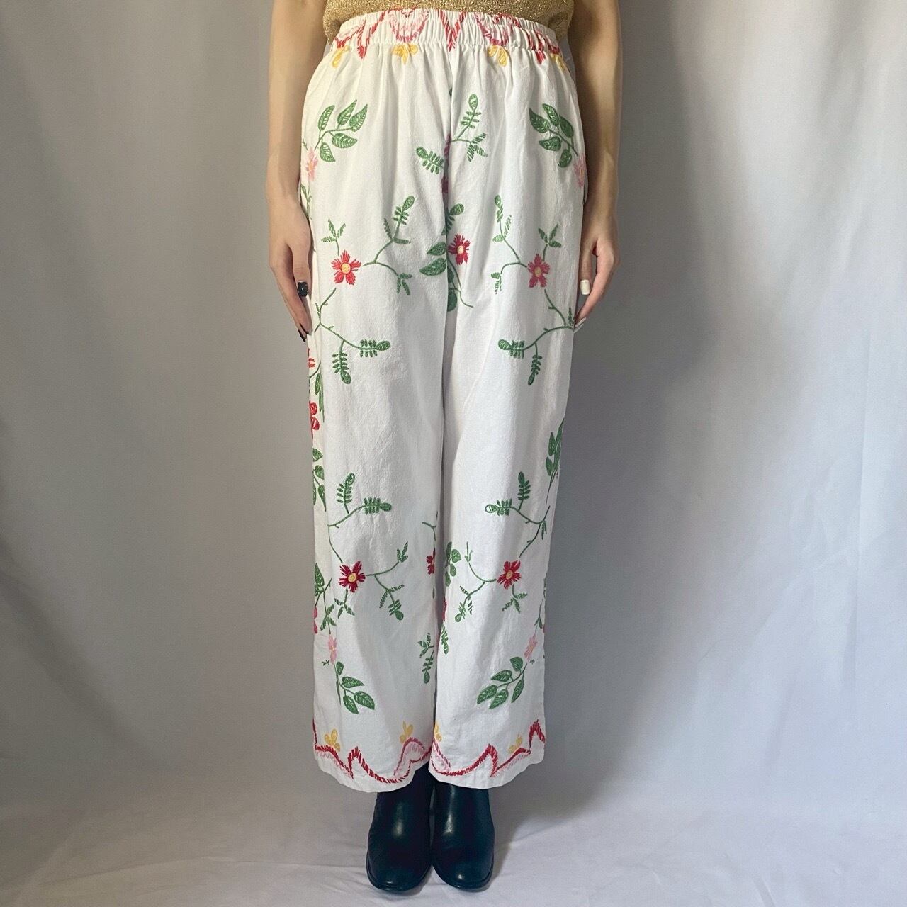 ホワイト花柄刺繍パンツ