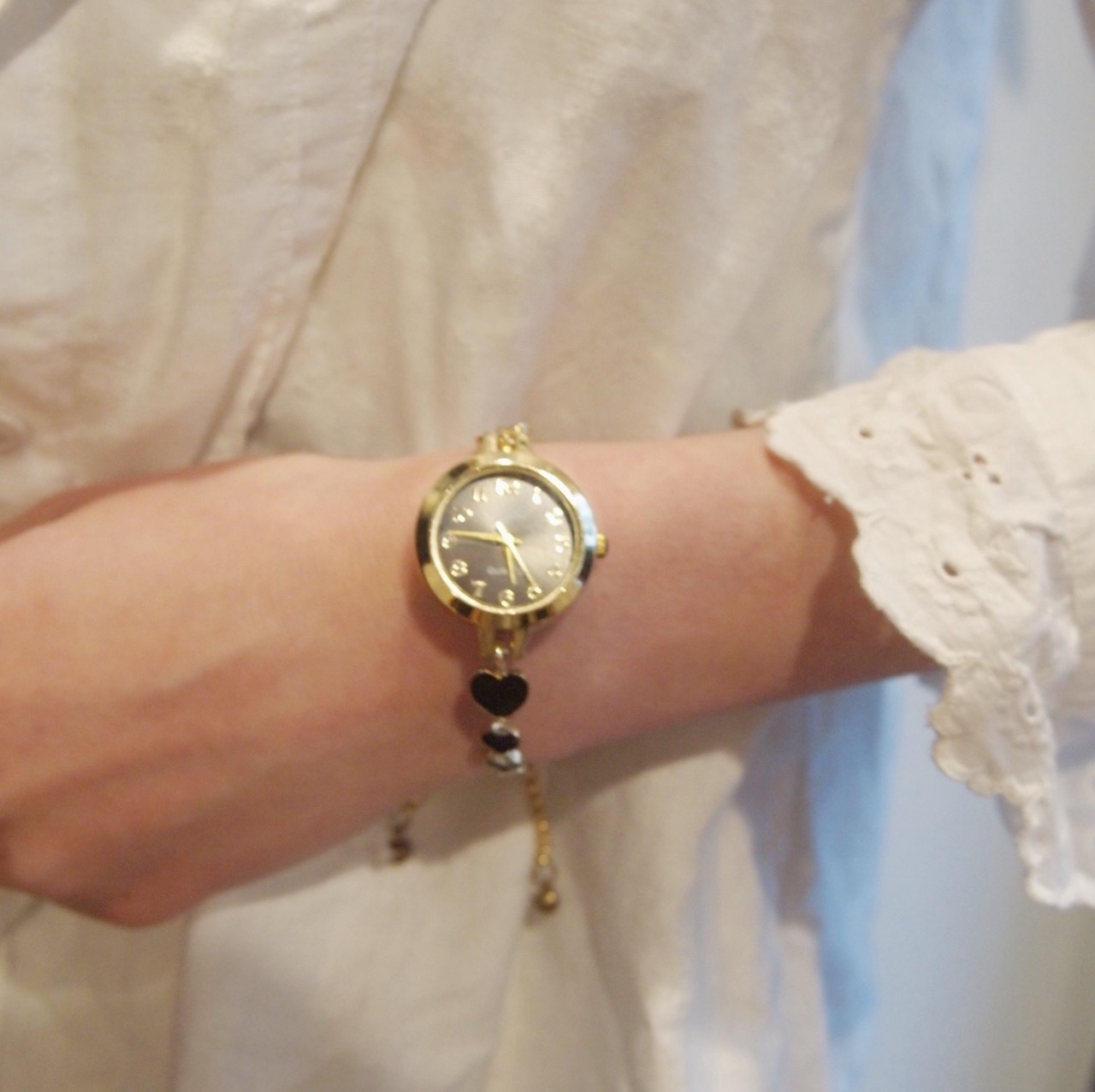 ゴールド×ブラックハートクォーツ時計