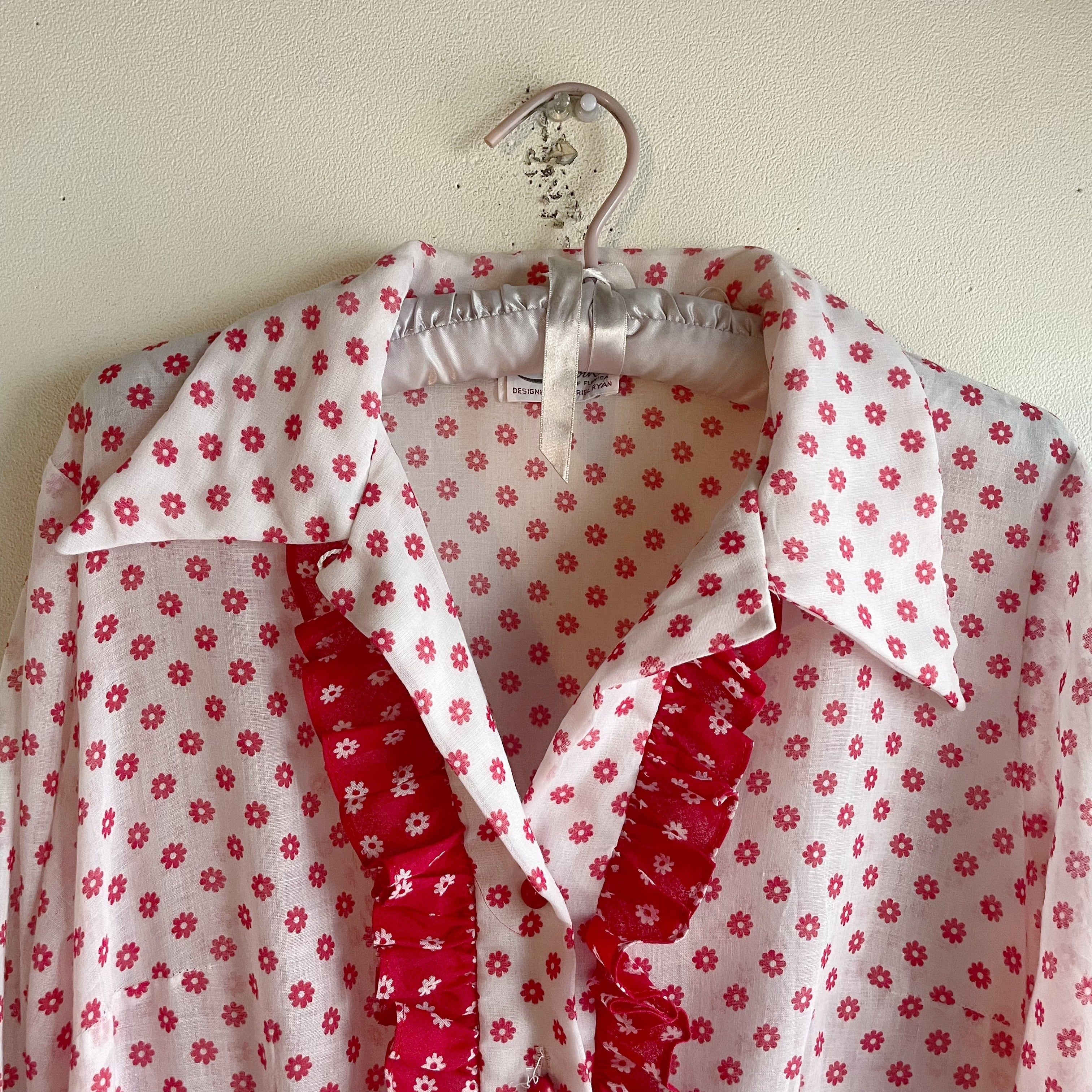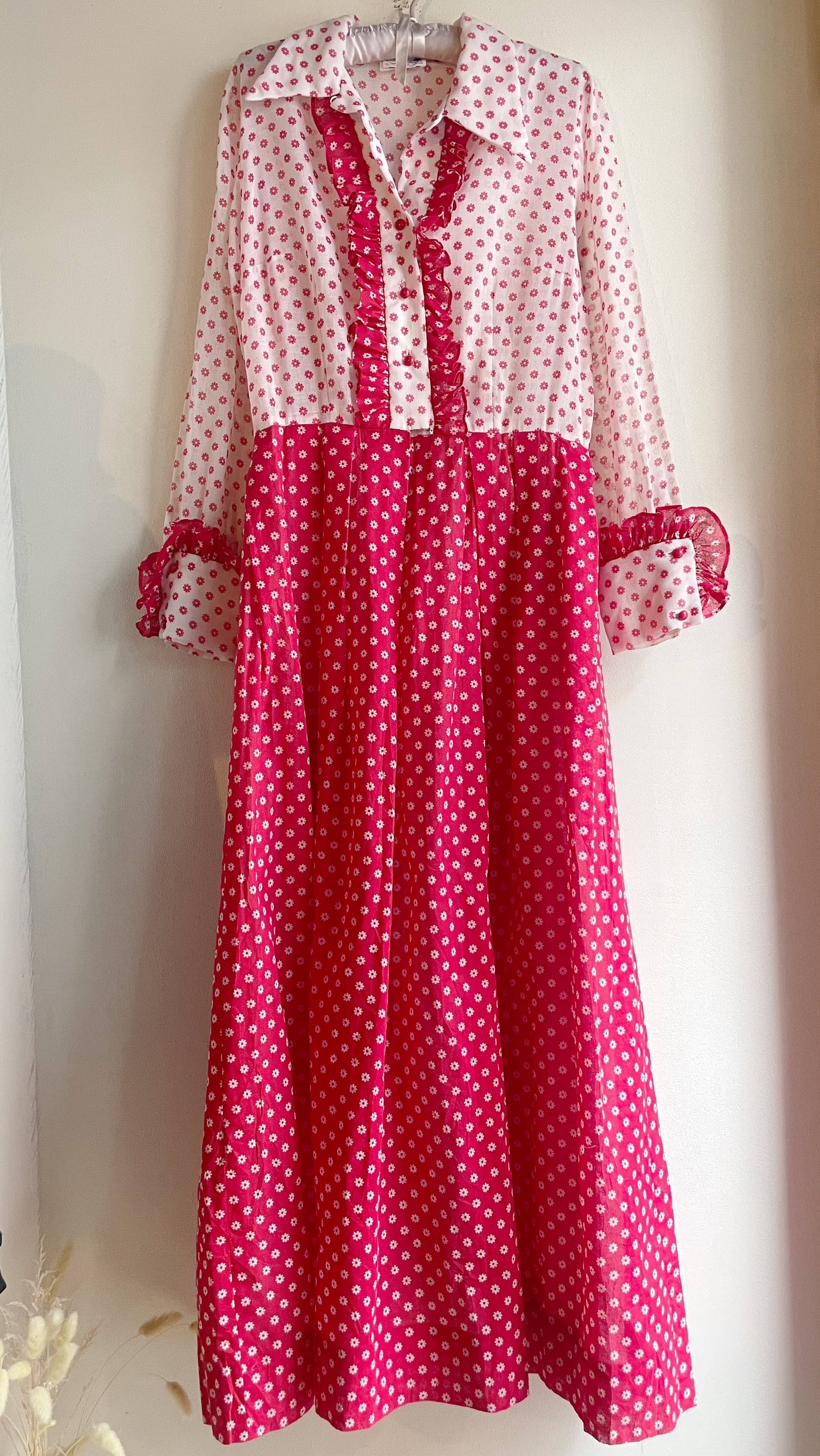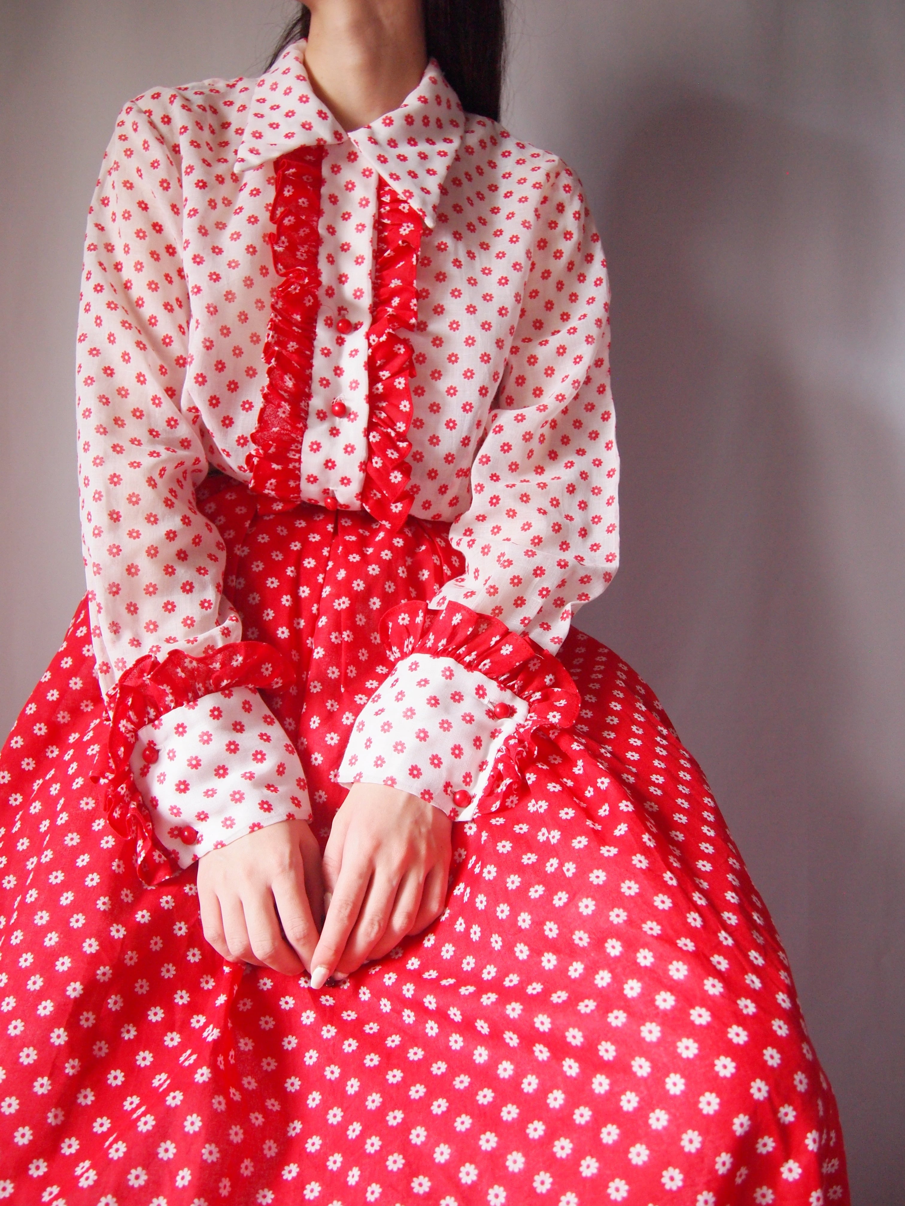 レッド×ホワイトフラワーロングワンピース