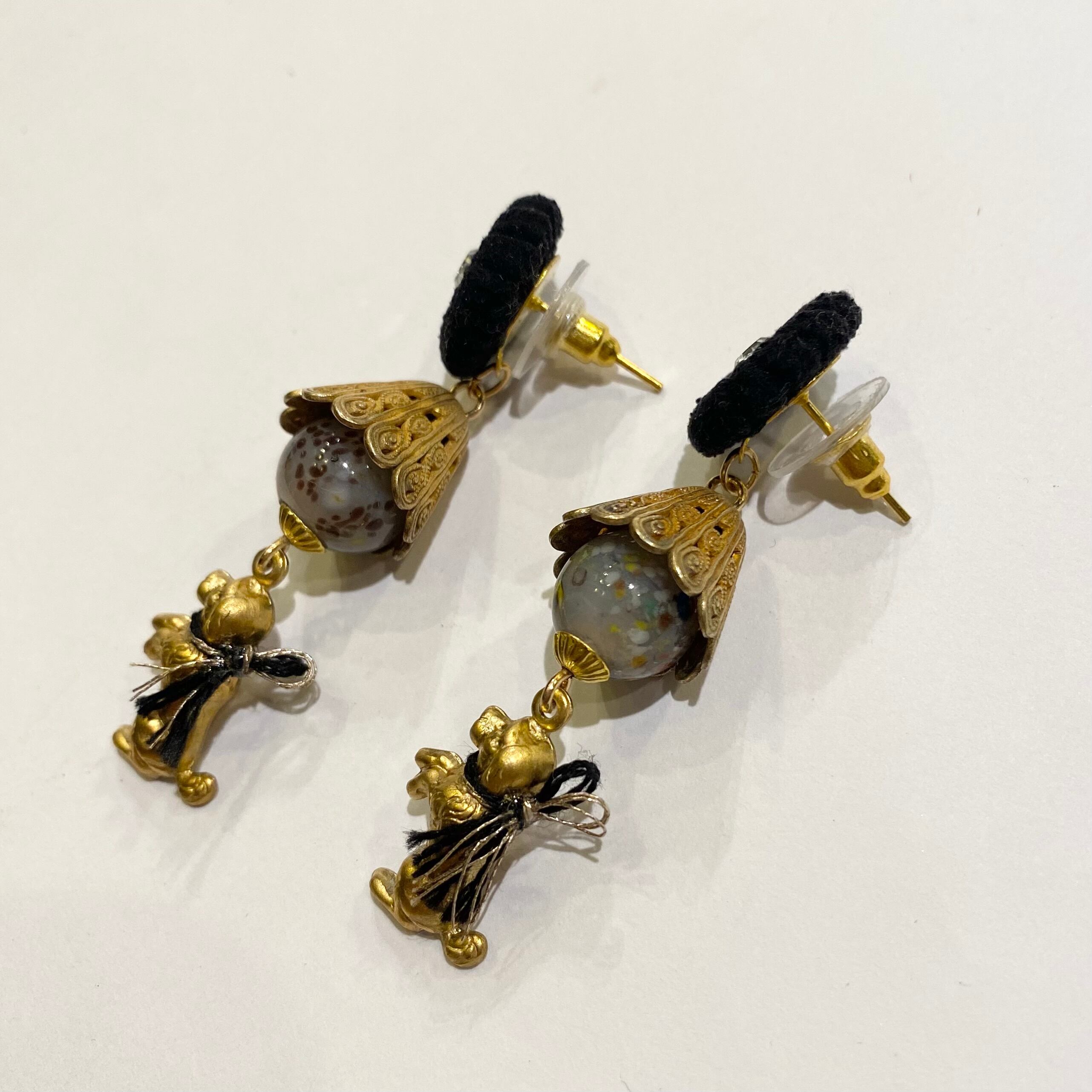 ヴィンテージボタン×ヴィンテージ真鍮パーツ+ガラスパーツ