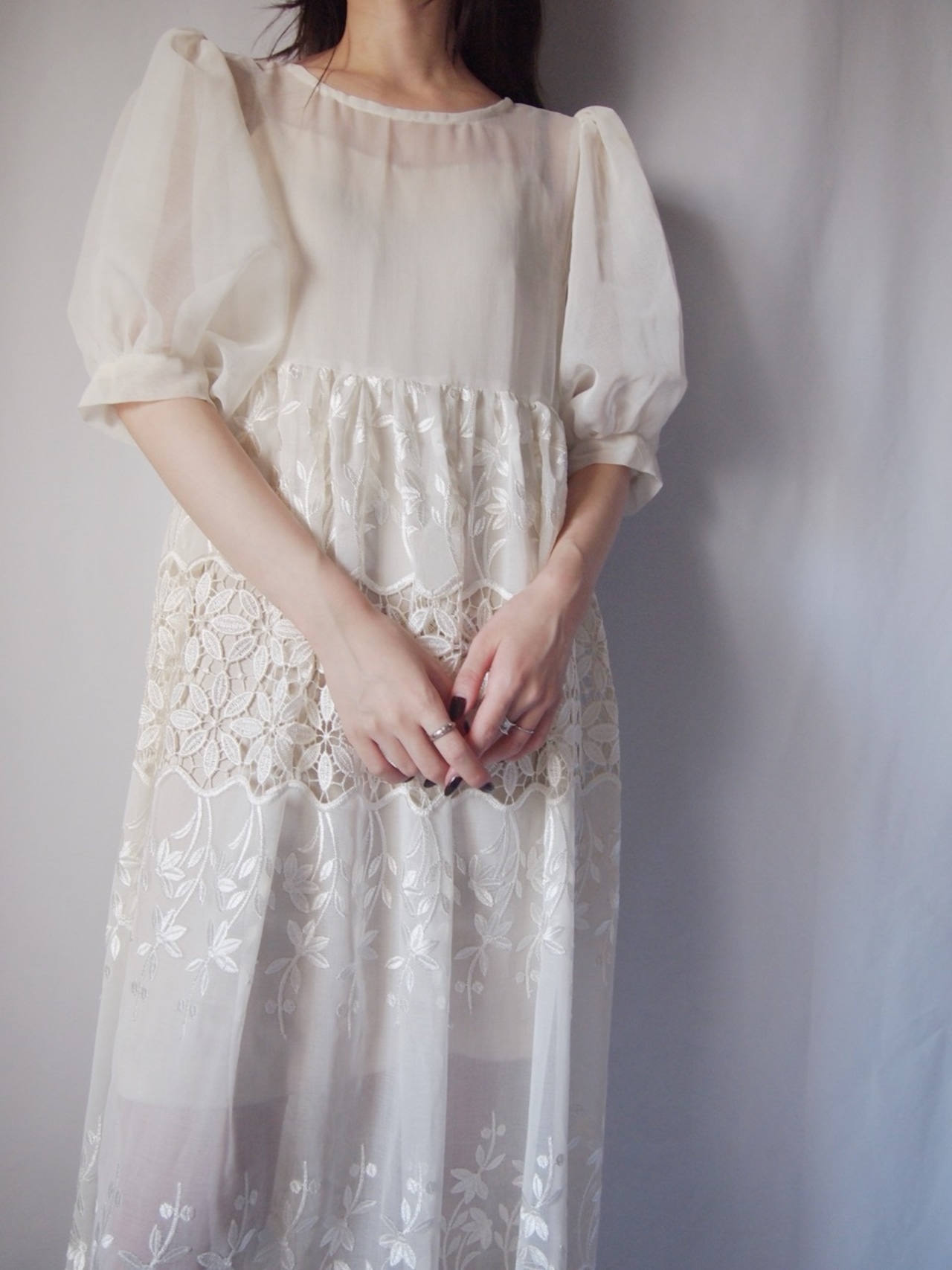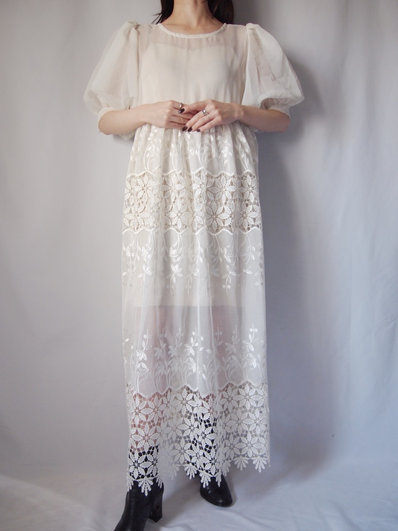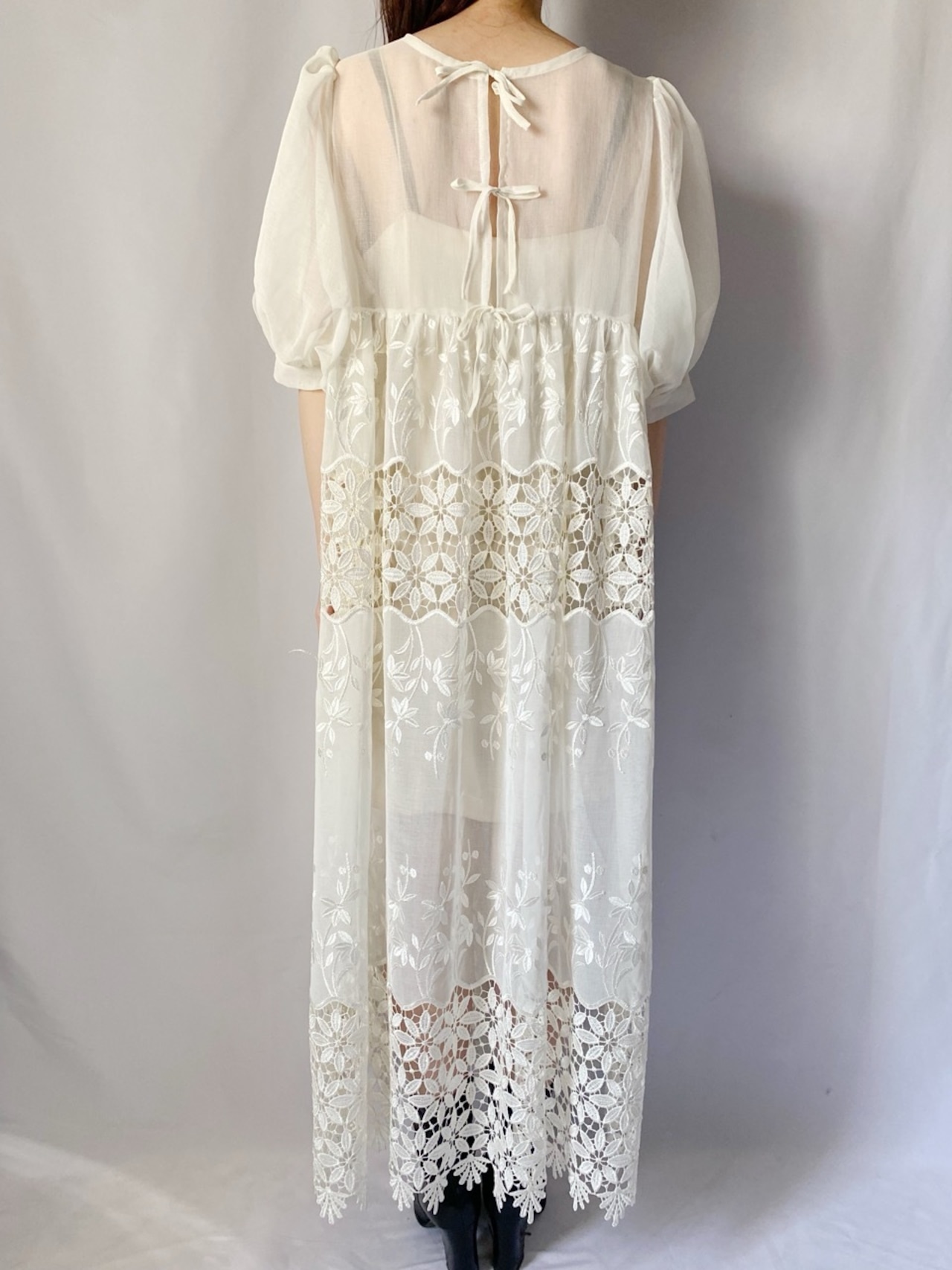 ホワイトレースロングワンピース