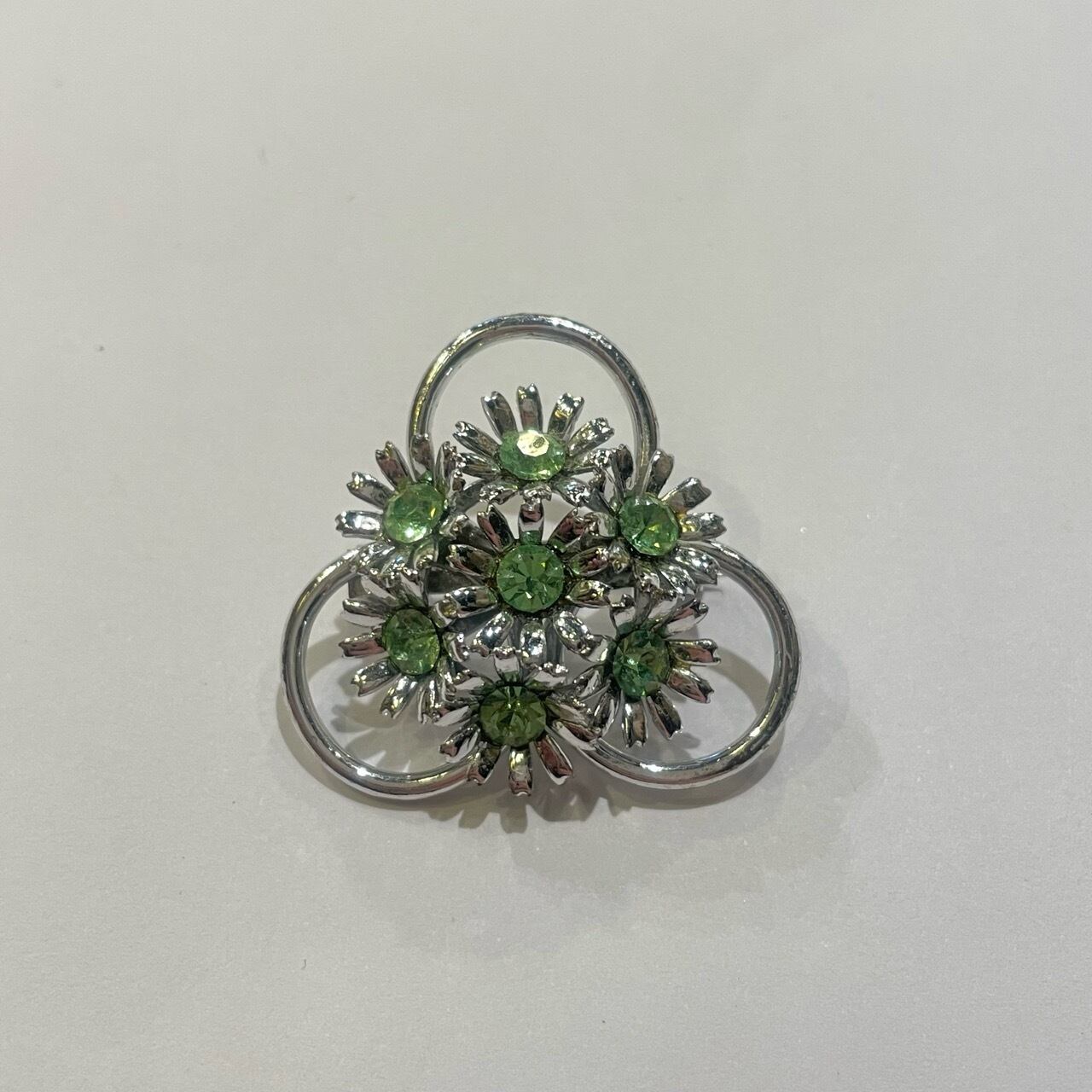 シルバー×ライトグリーンビジューブローチ