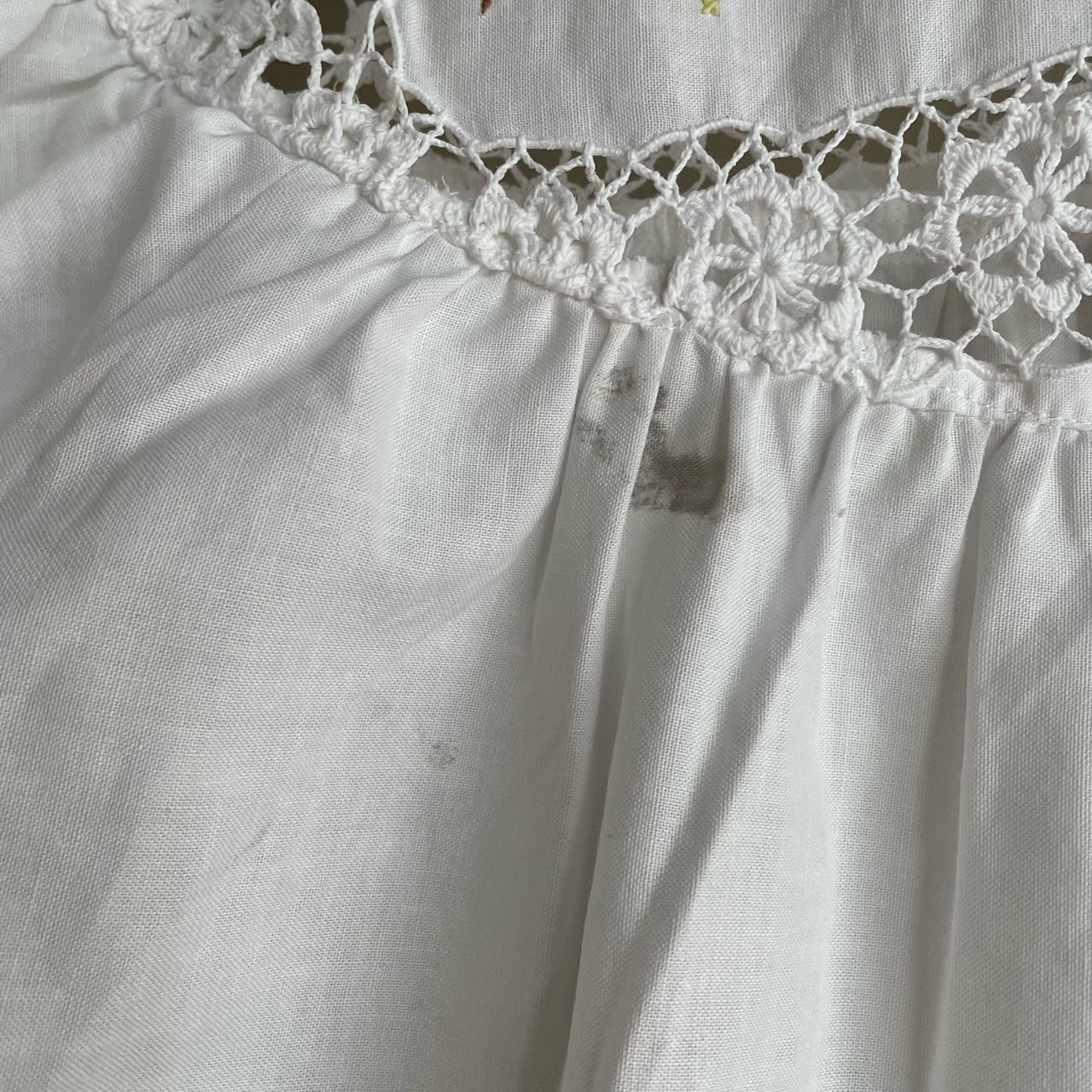 前かぎ編み部分にほつれがございます。(写真15.16)