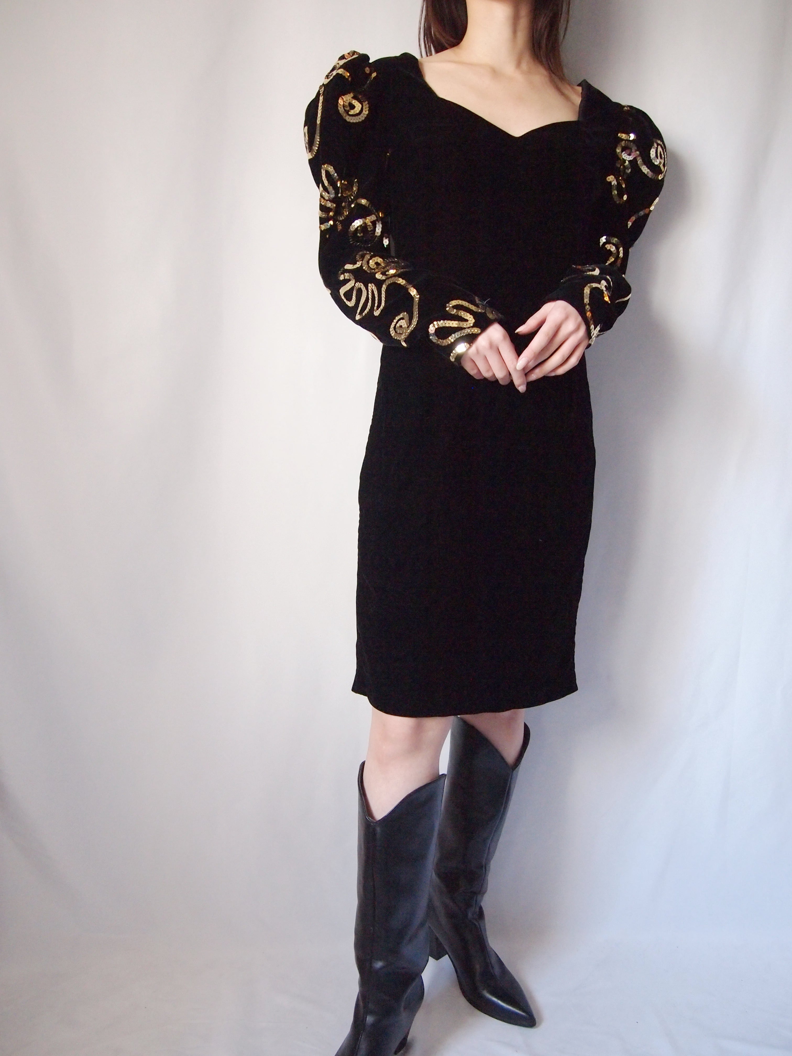 ブラックベロアスパンコールワンピース