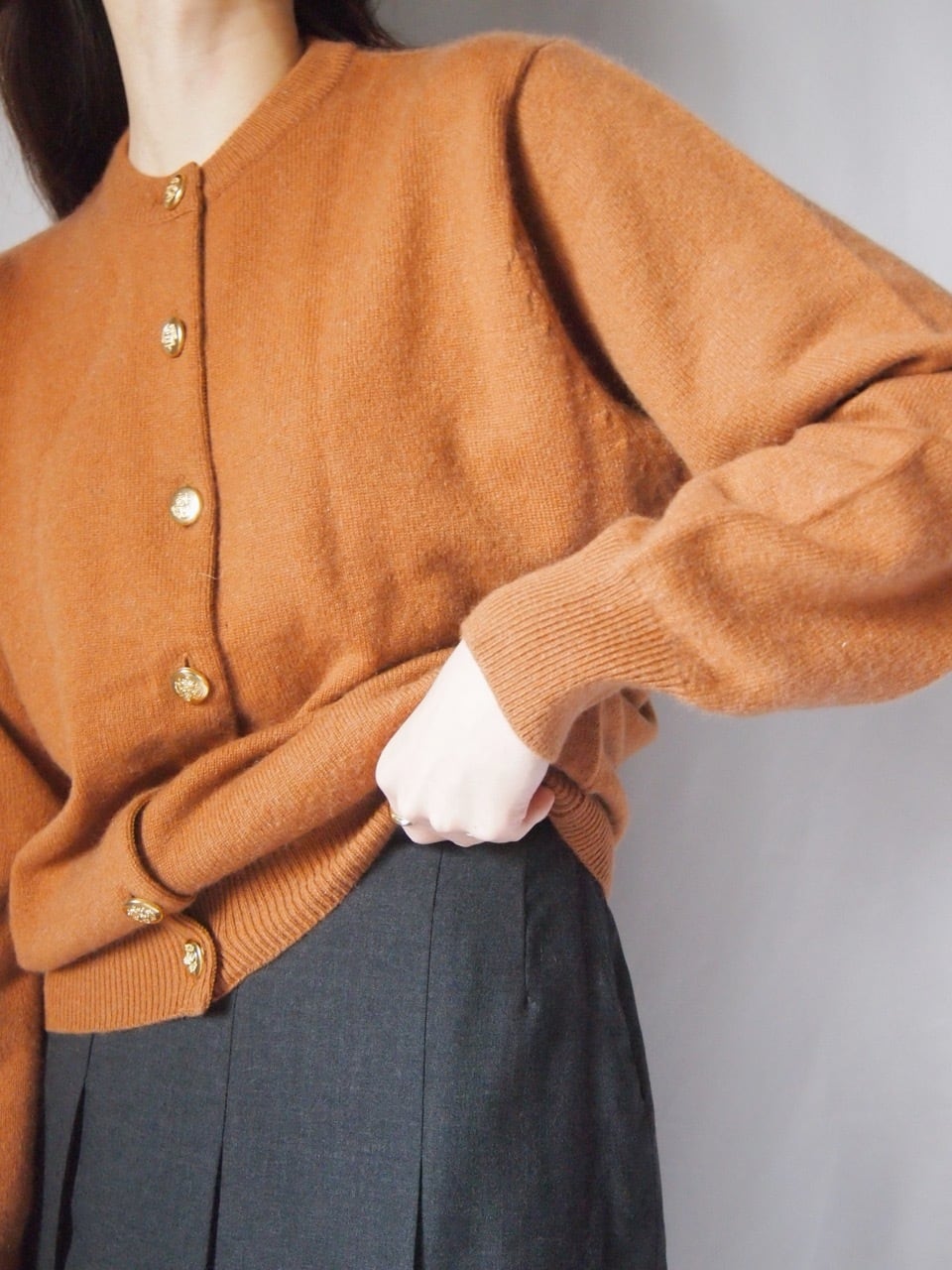 ライトブラウンカシミヤカーディガン