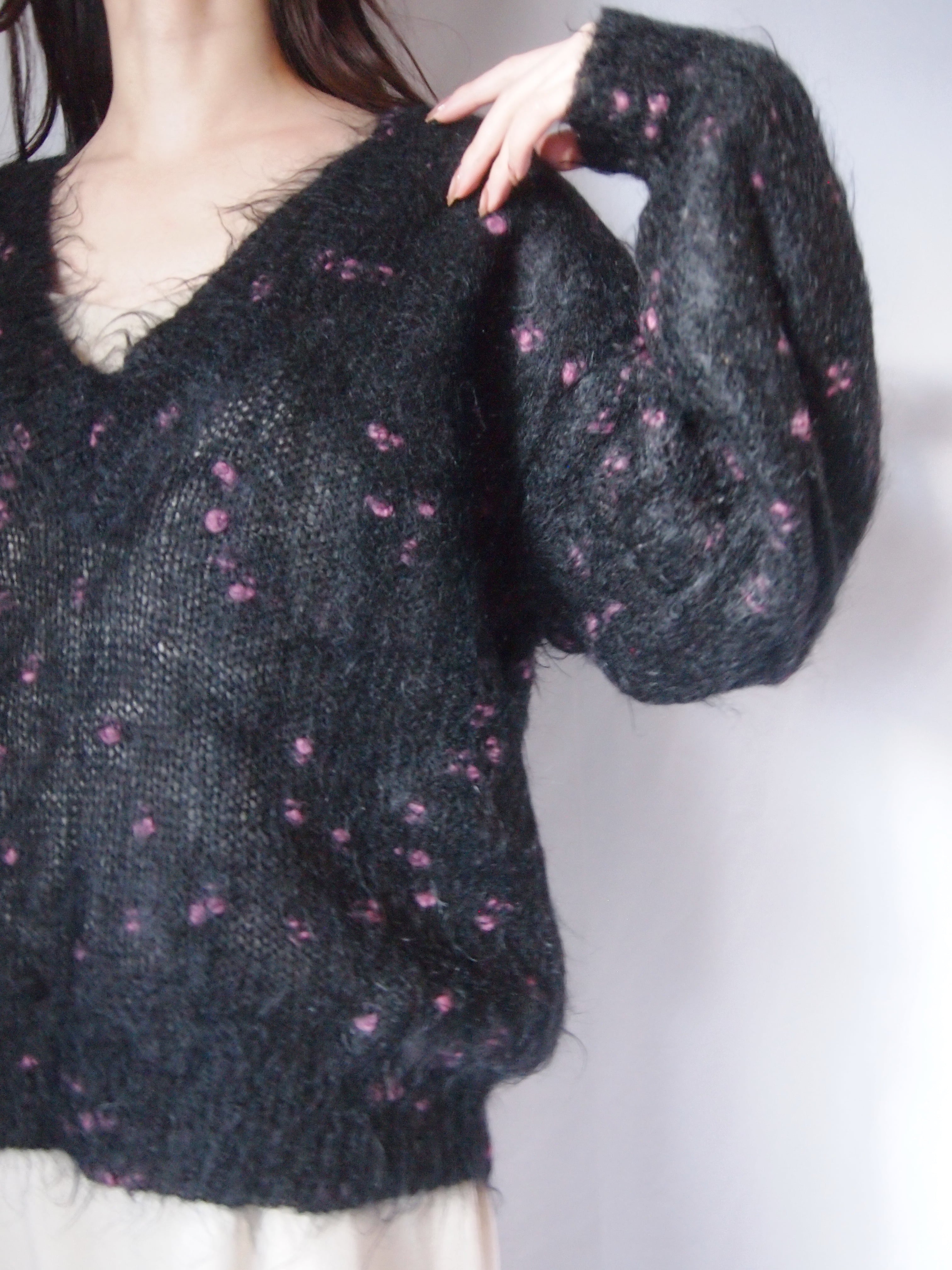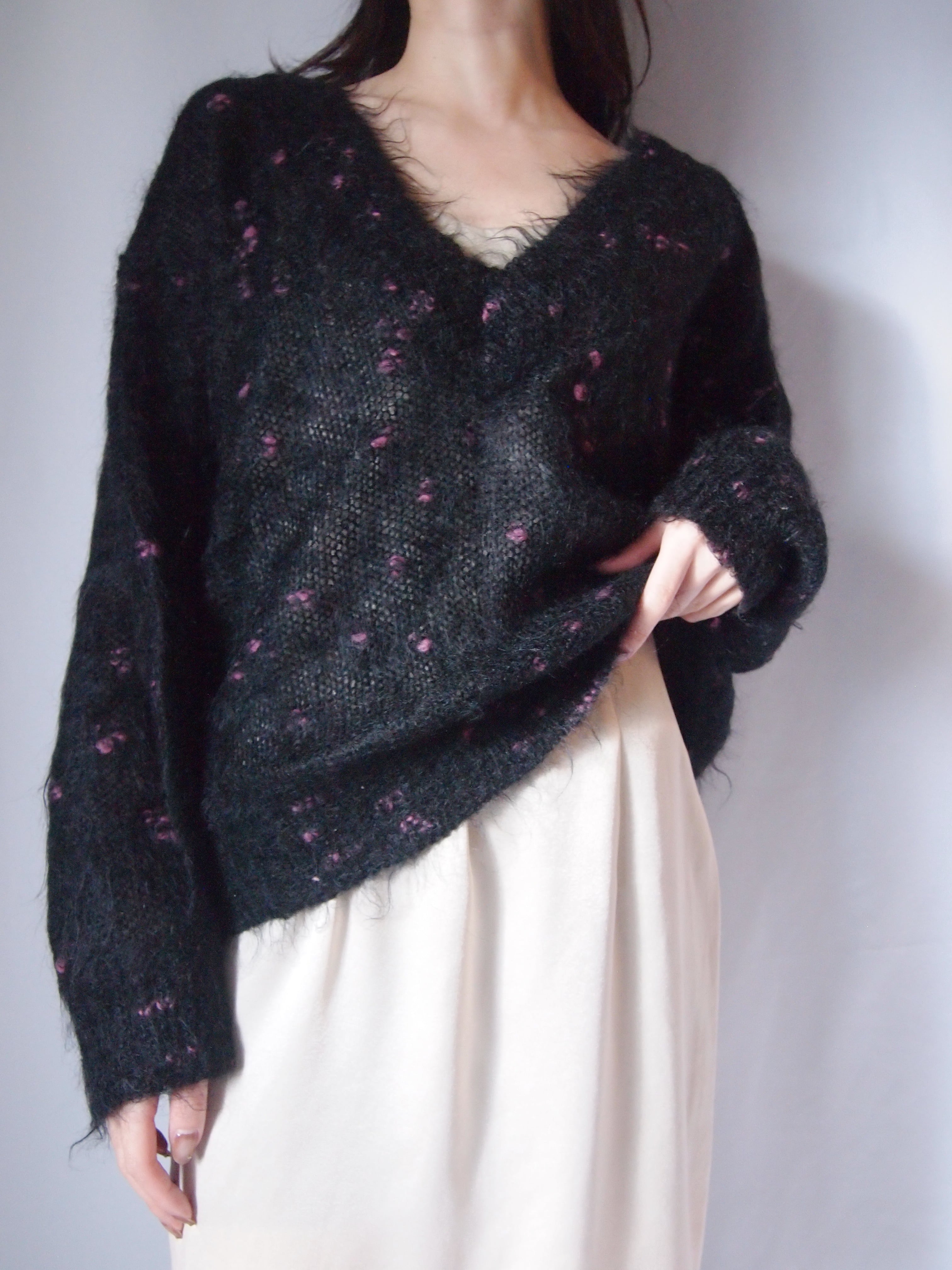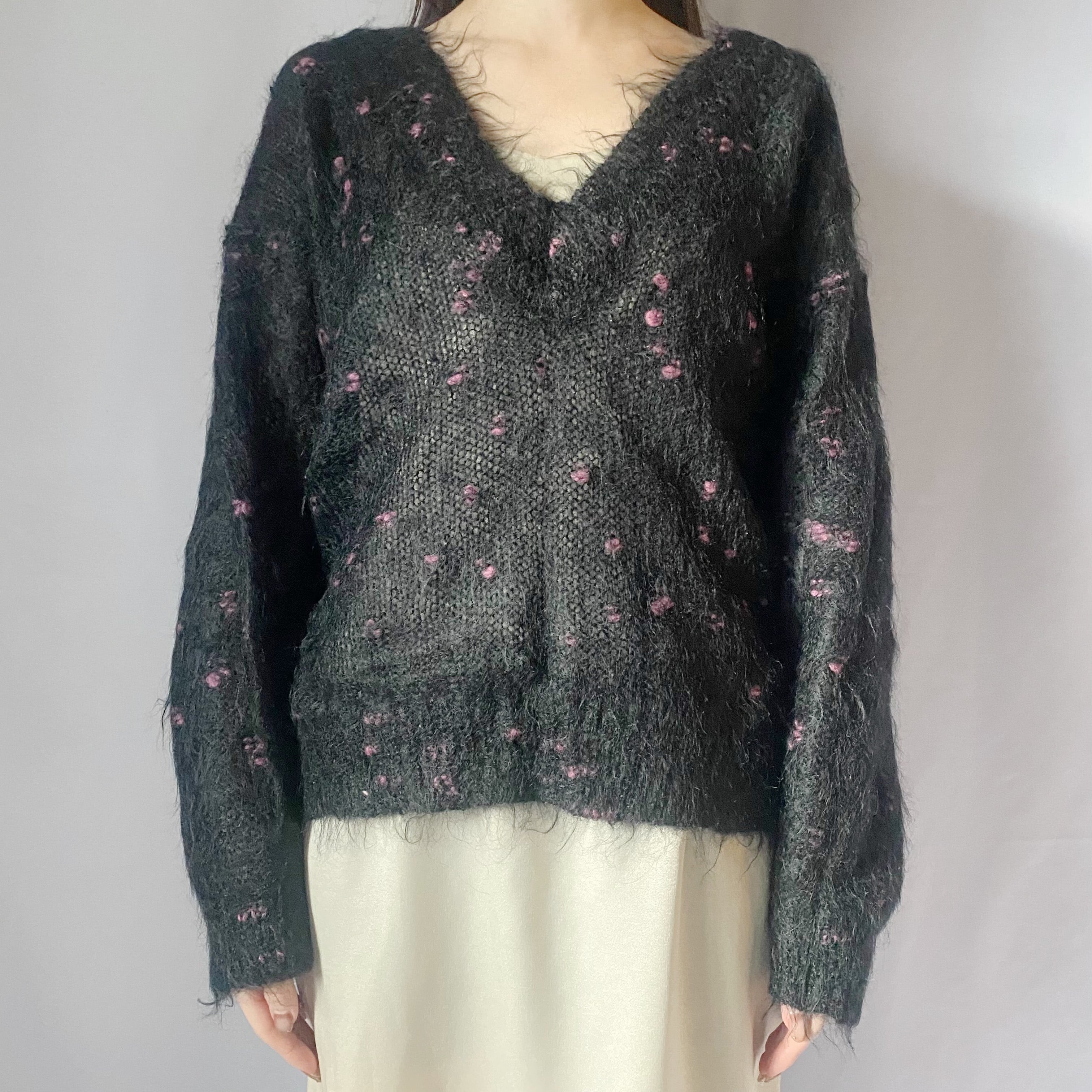 ブラックVネックニットセーター