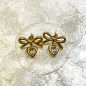 ゴールドリボンハートピアス