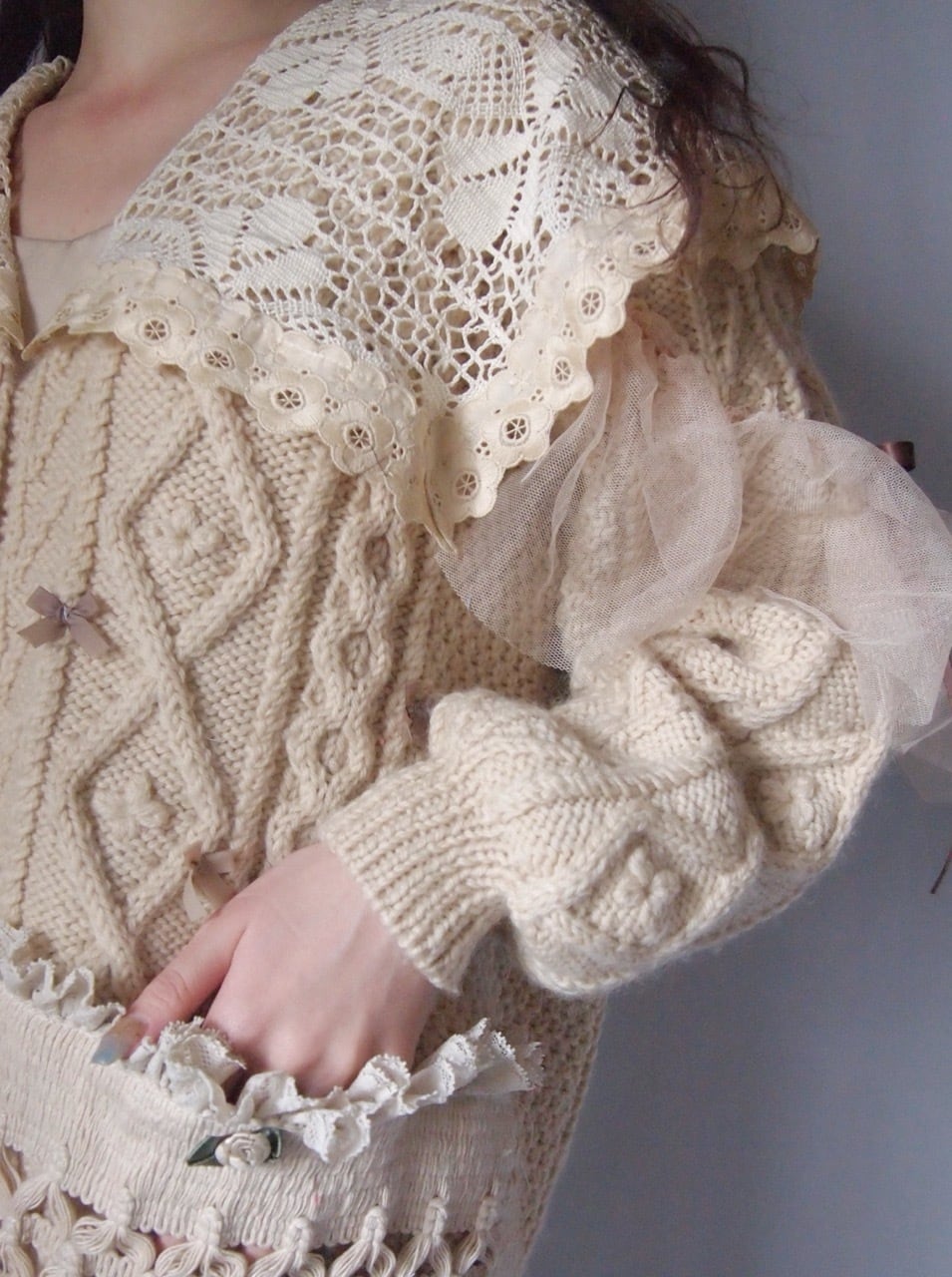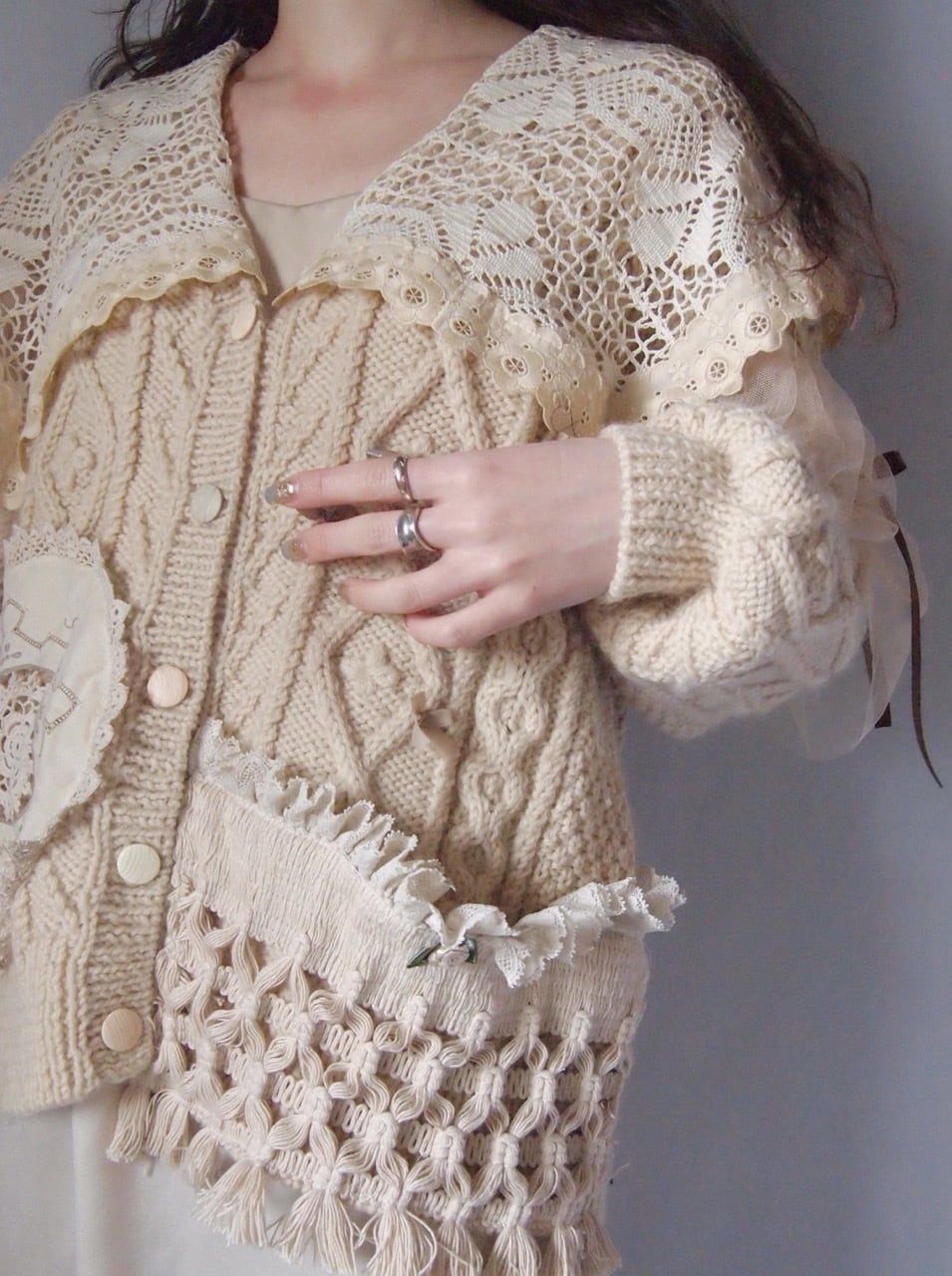 ベージュカスタムニットカーディガン