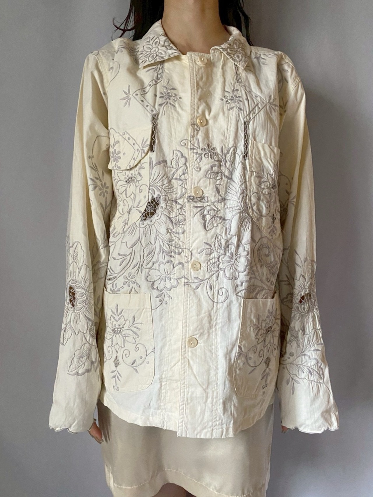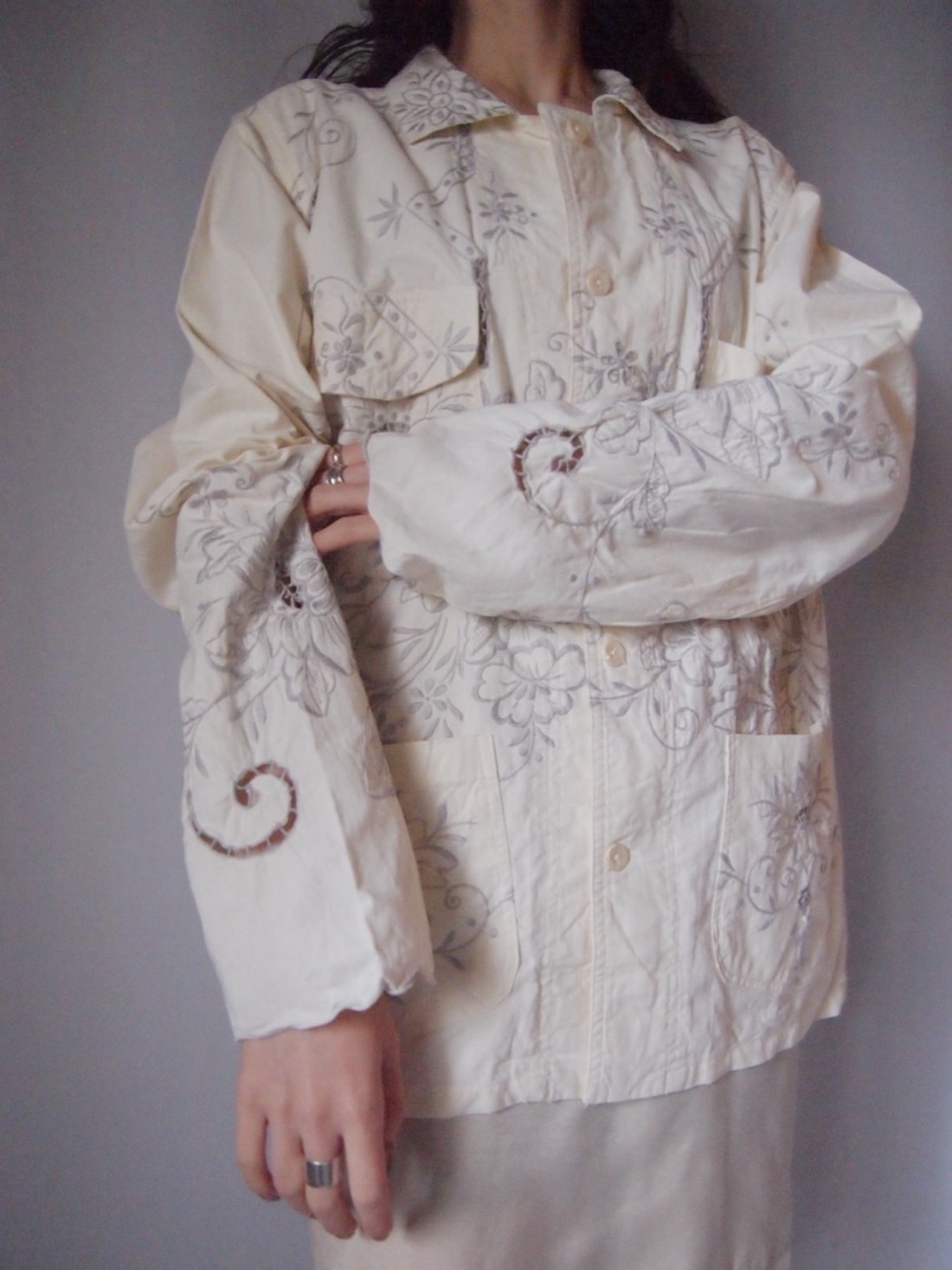 アイボリー刺繍カバーオール