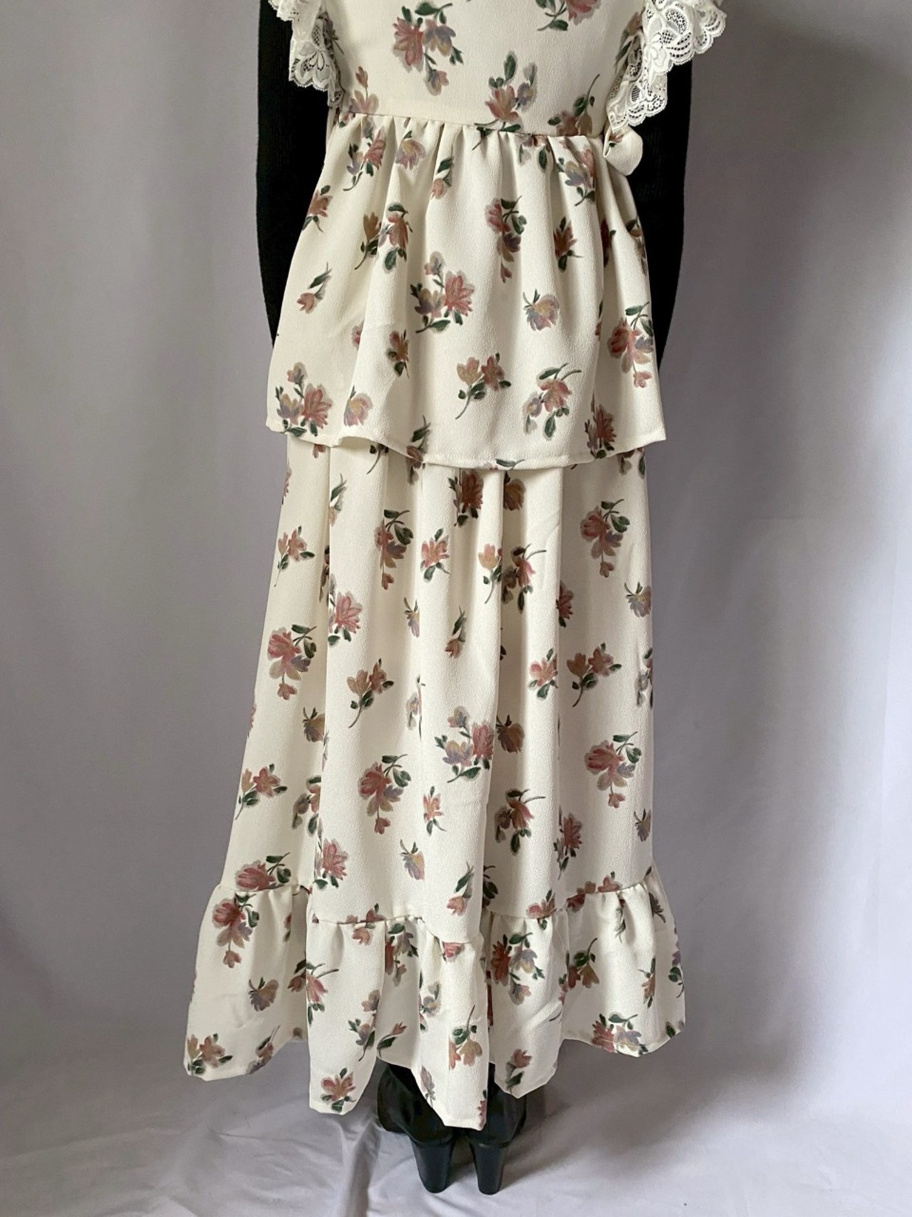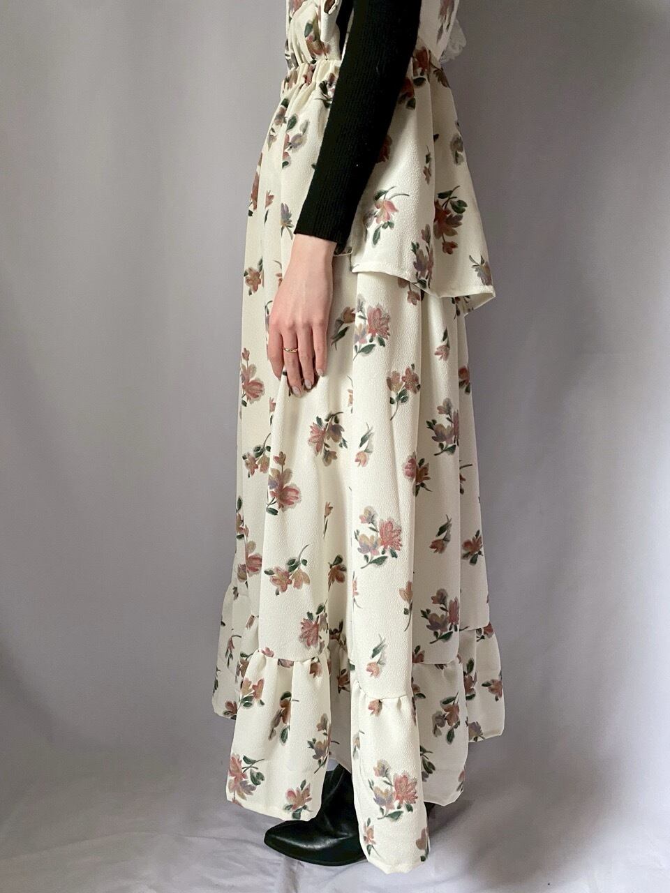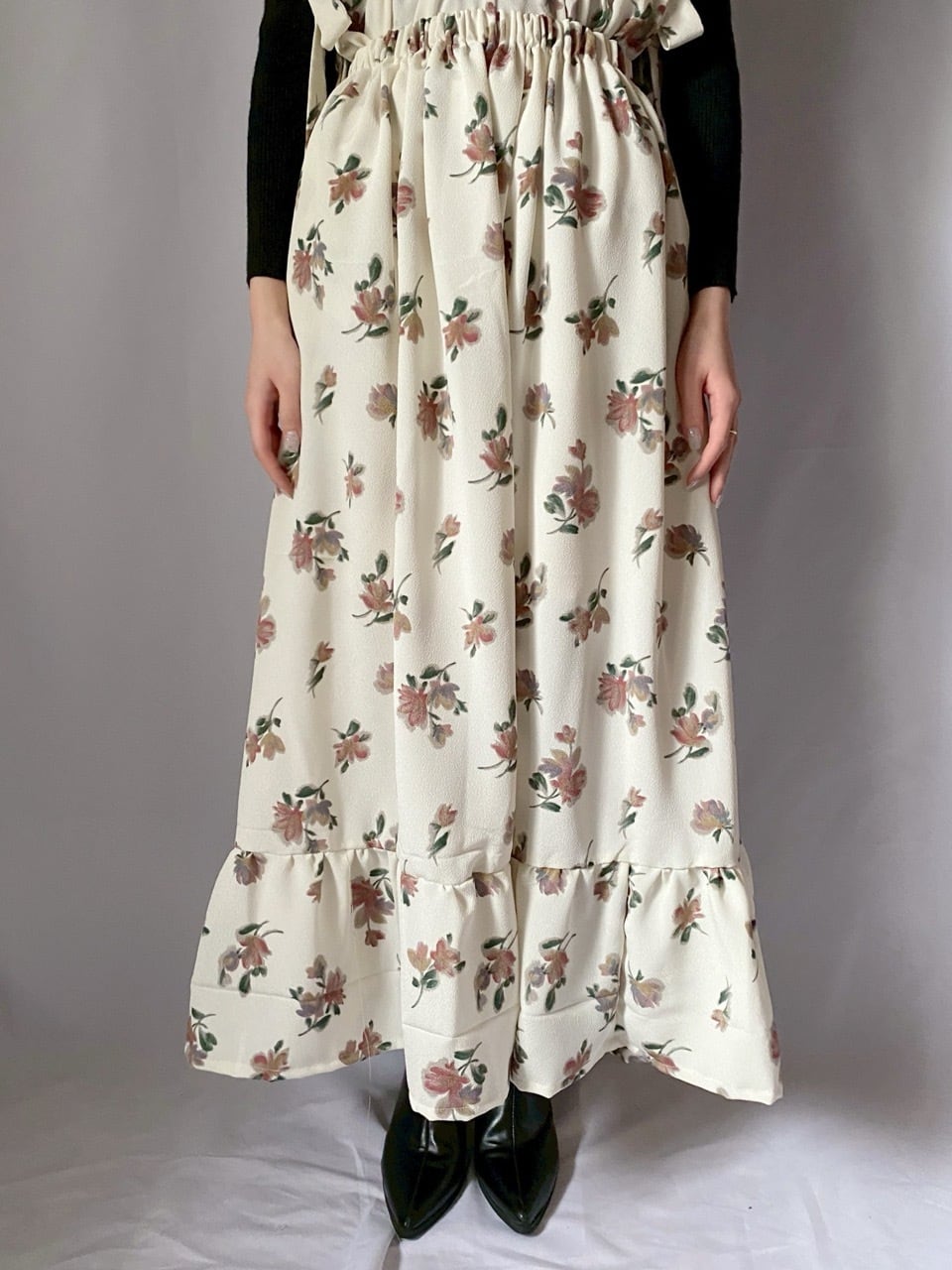 ホワイト花柄フリルスカート