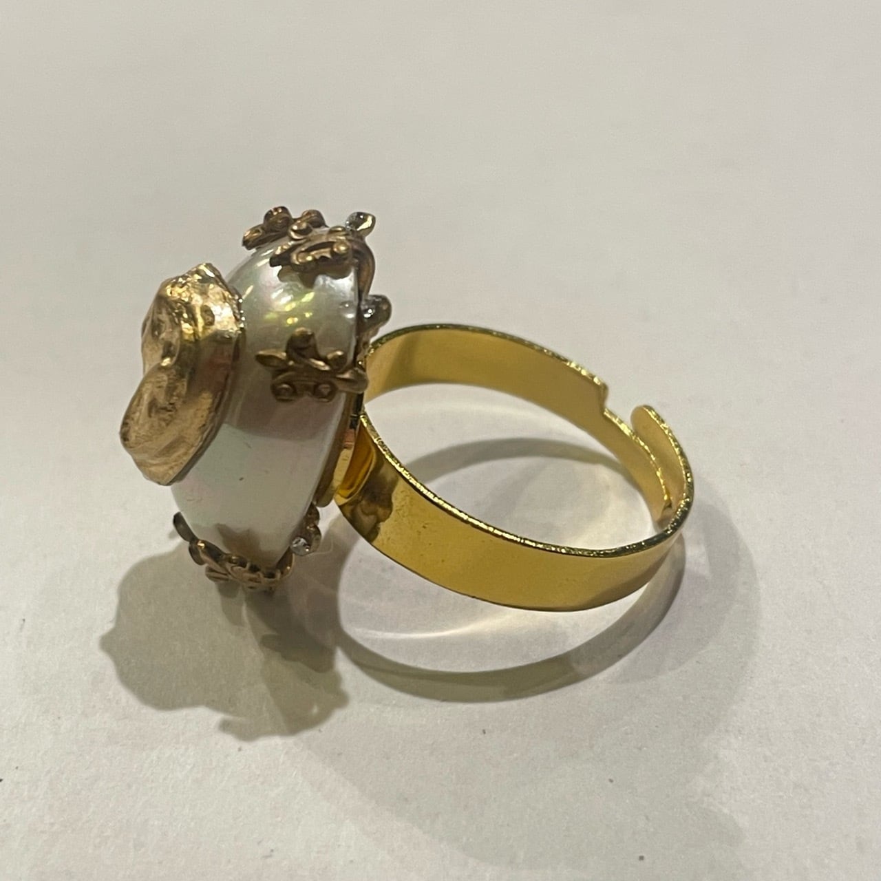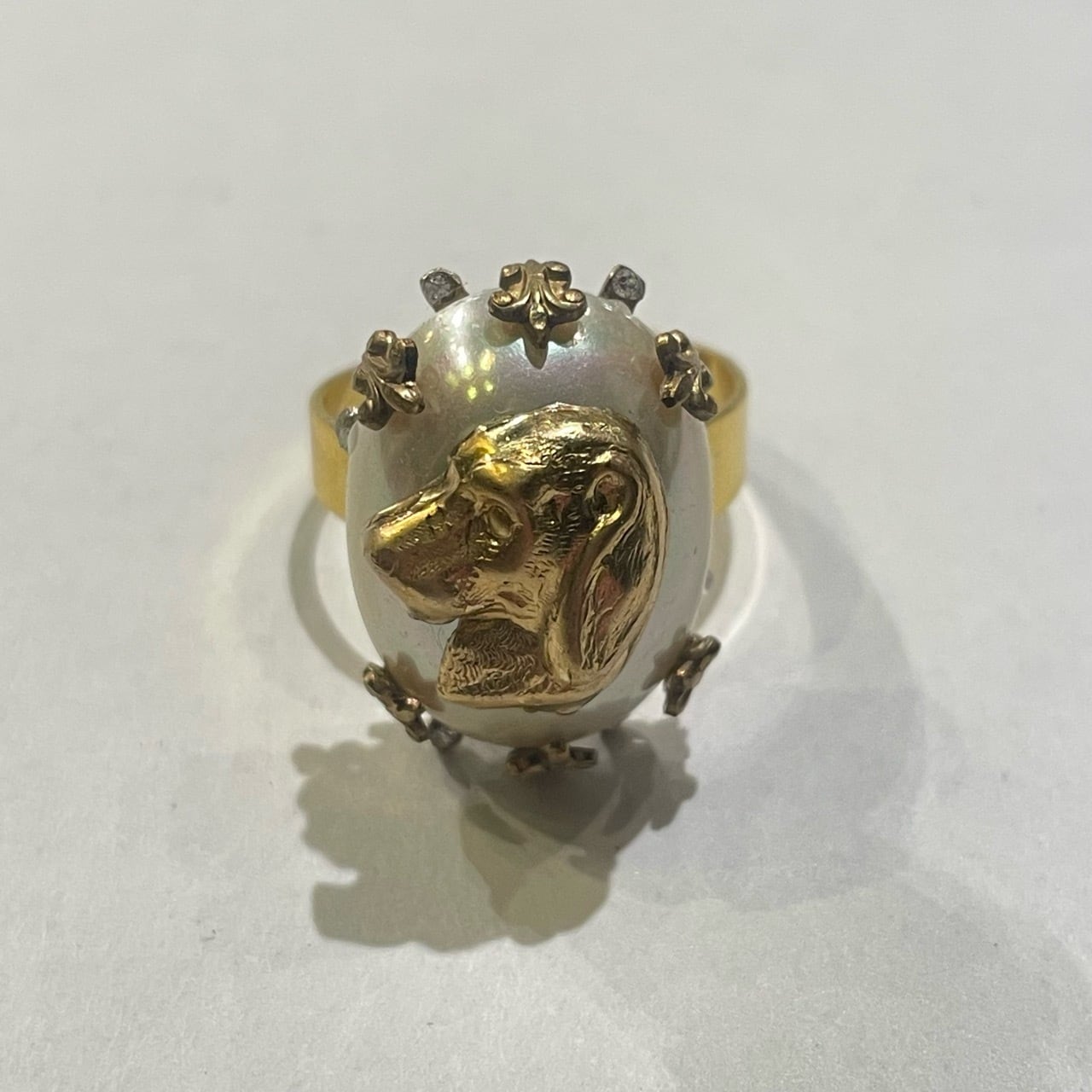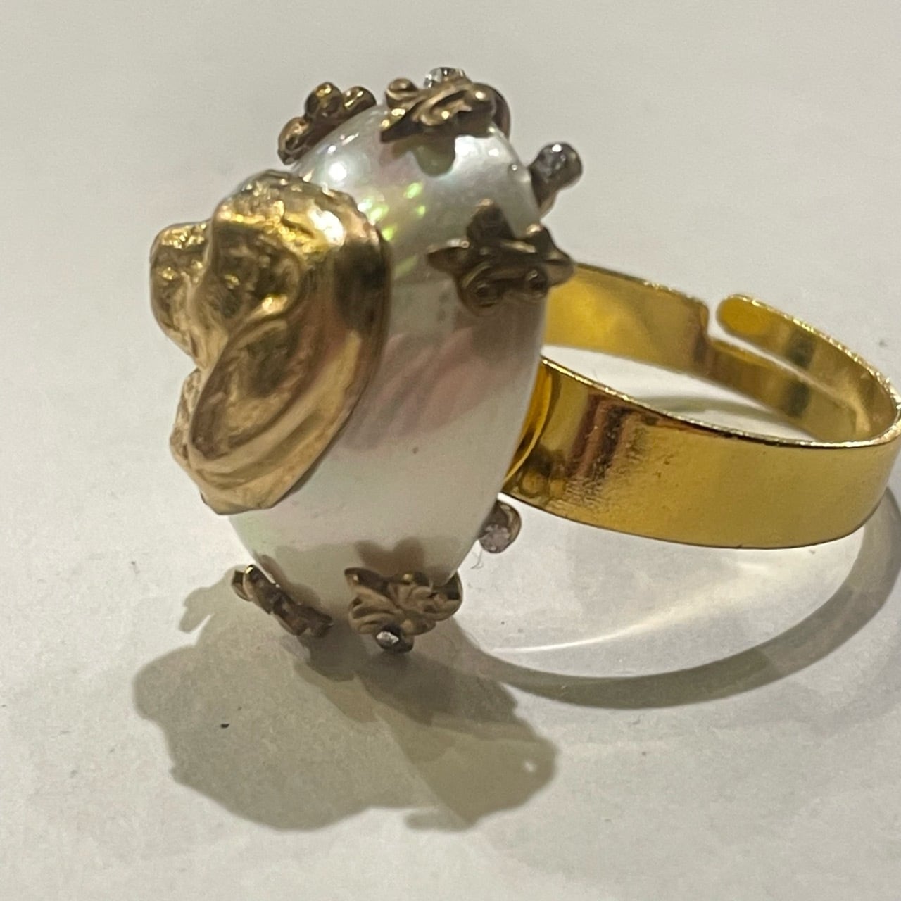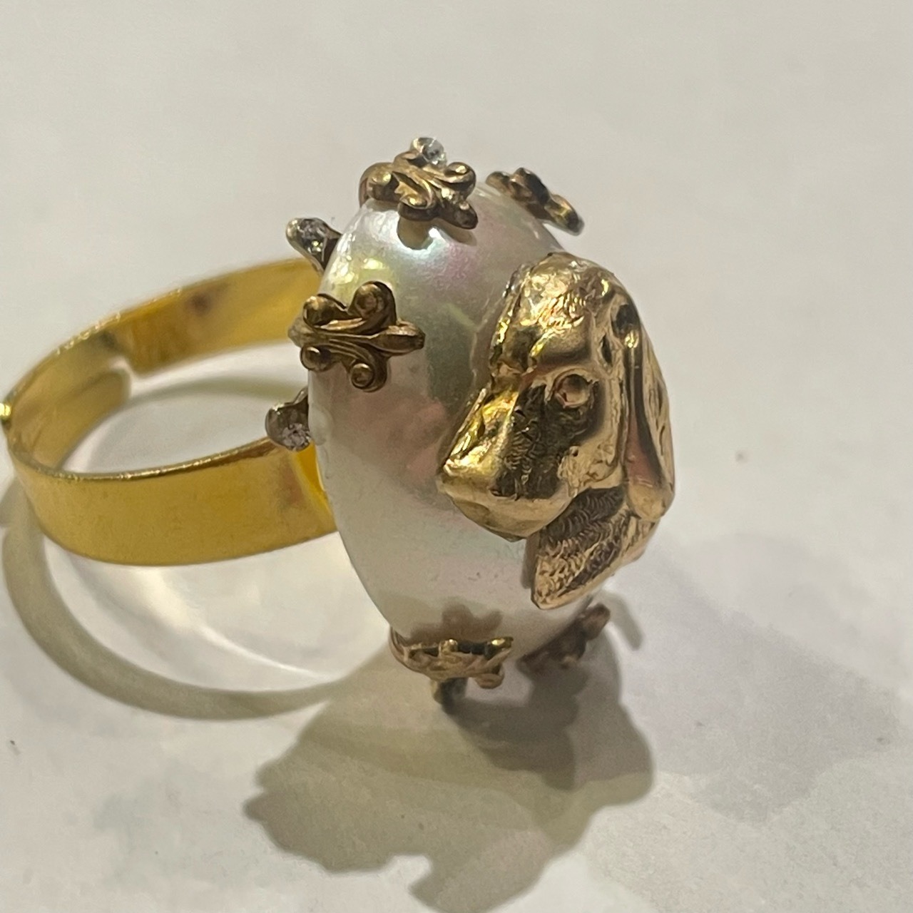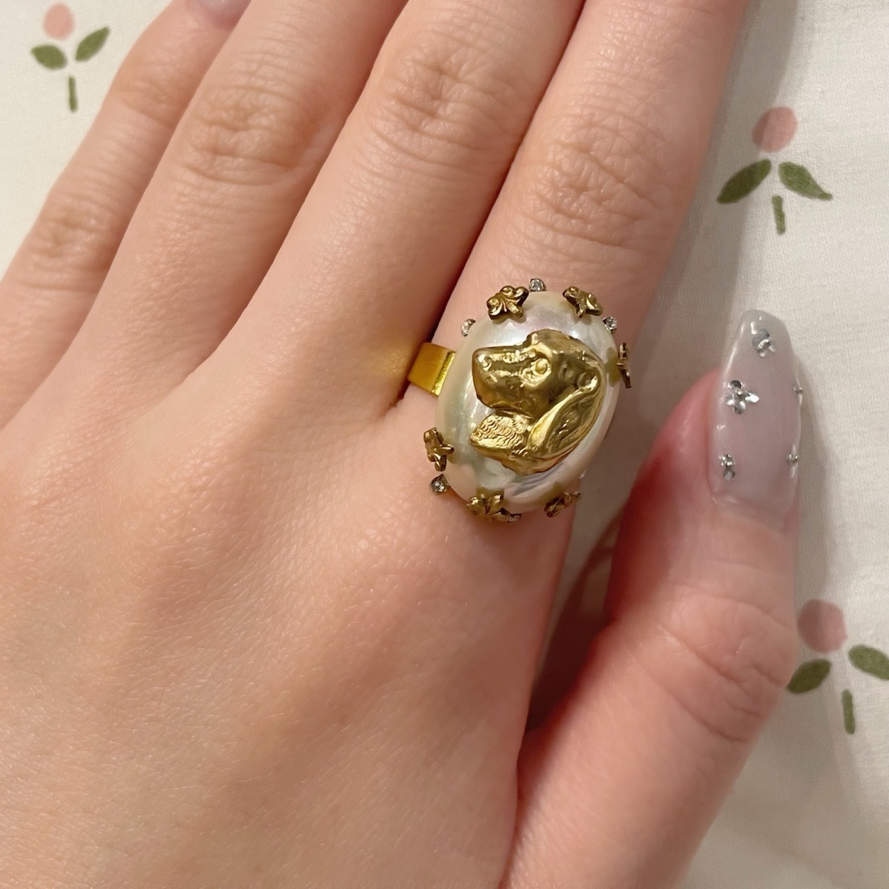 【Scent Of Jasmine】ゴールドパールリング(ドッグ②)