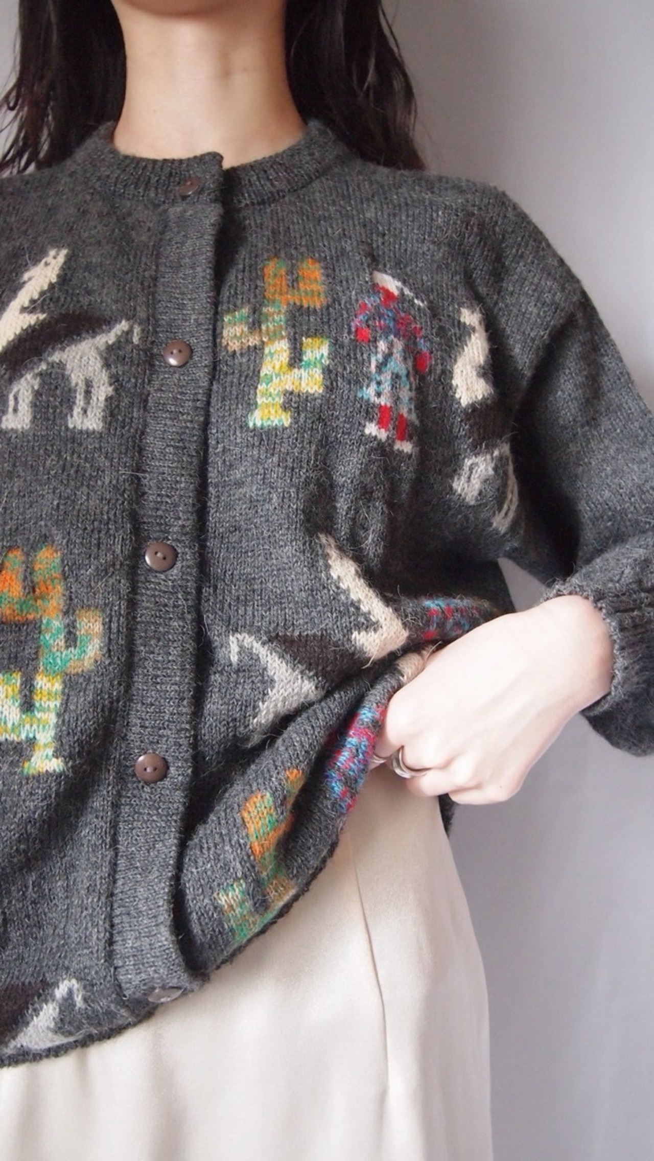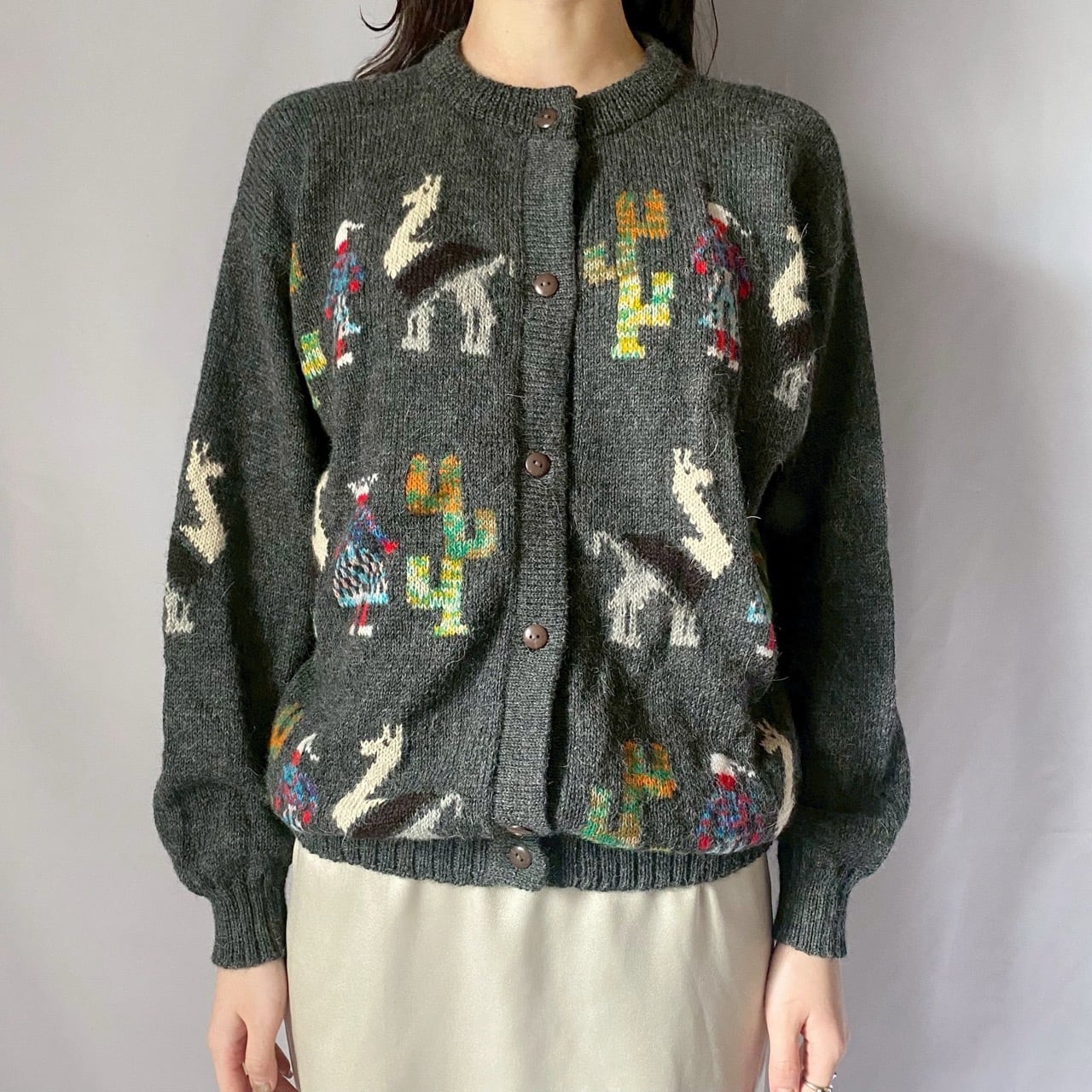 グレーアルパカニットカーディガン