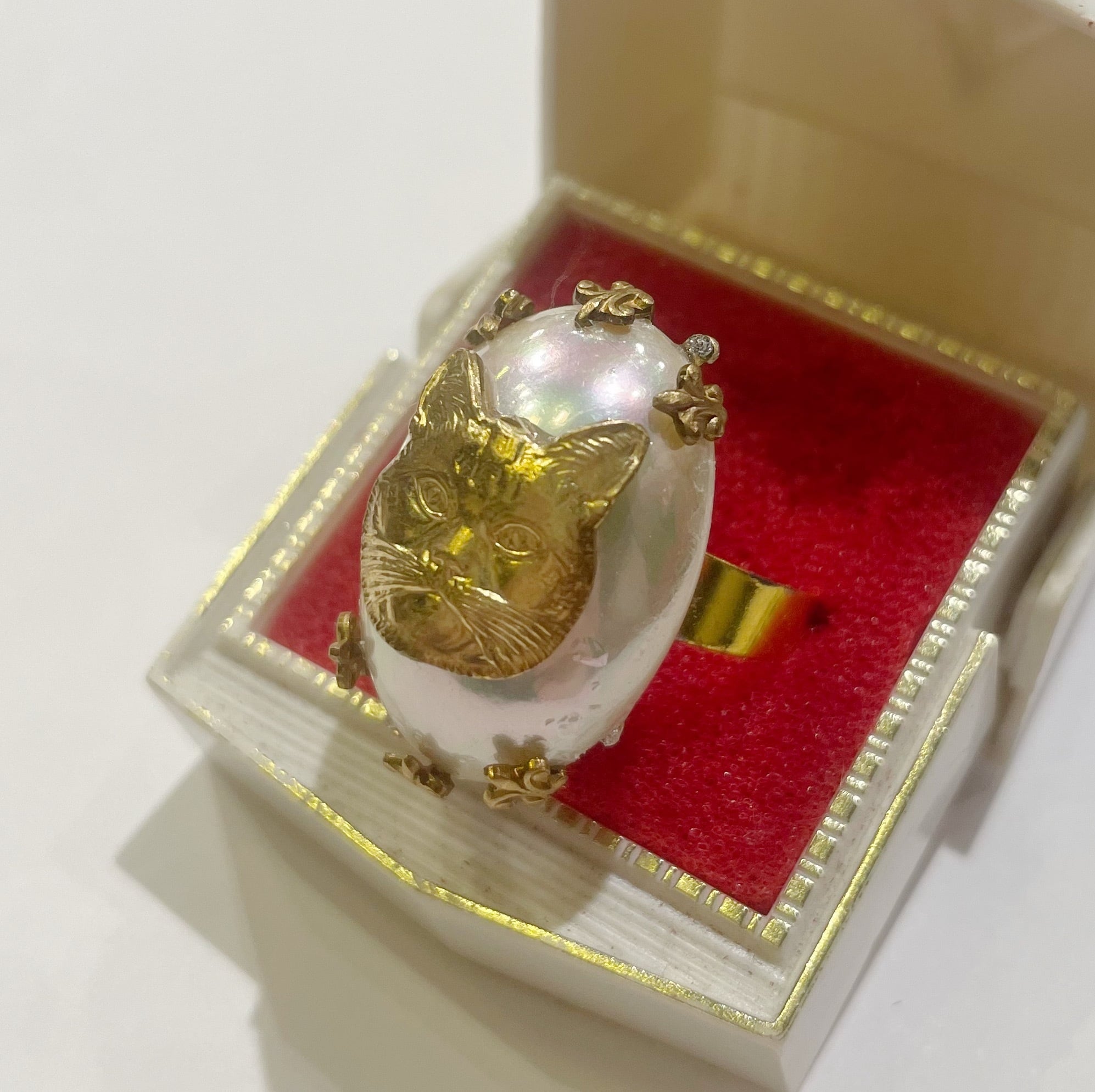 【Scent Of Jasmine】ゴールドパールリング(キャット③)