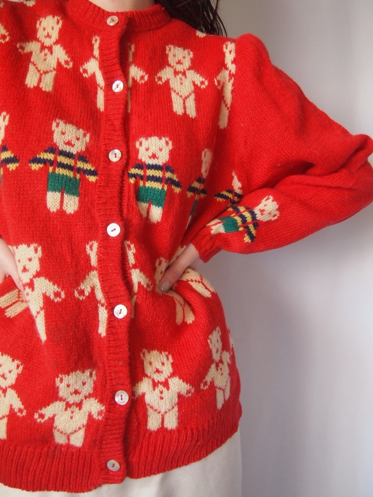 レッドくまちゃんニットカーディガン