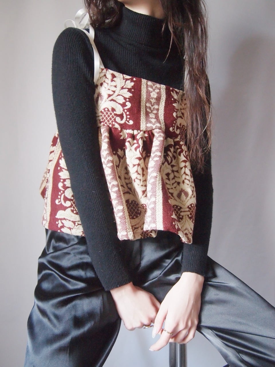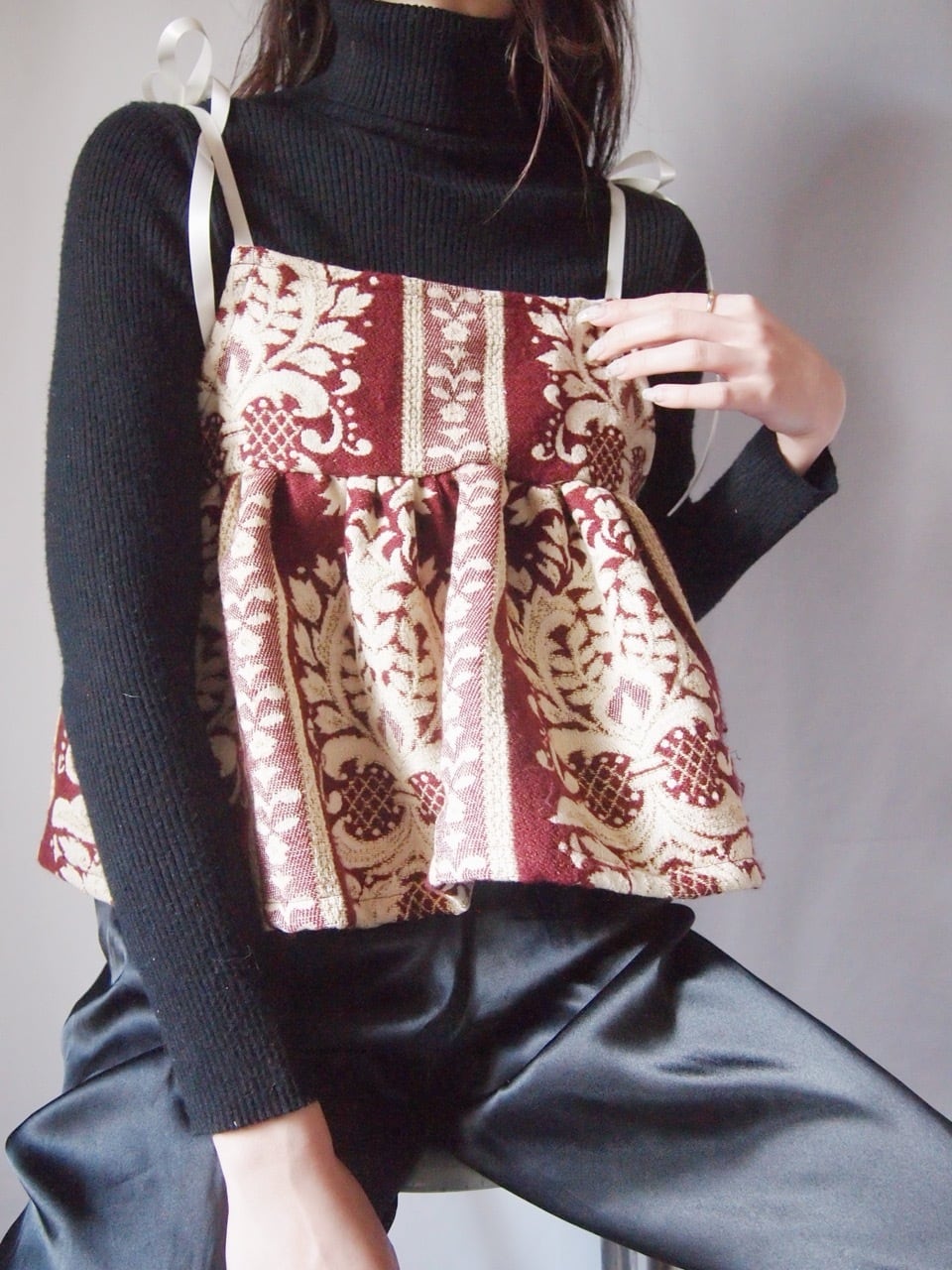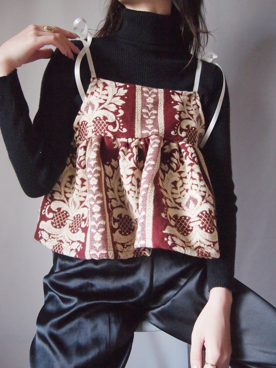 レッド柄リボンキャミソール