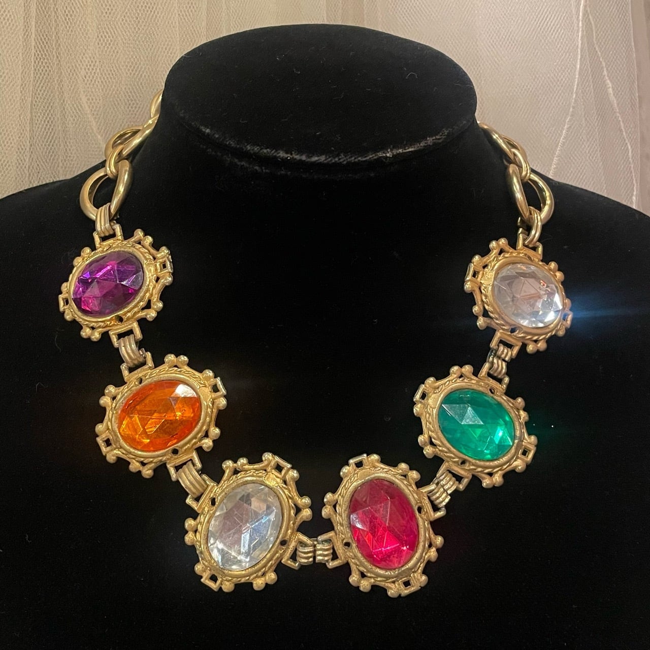 ゴールド×カラフルビジューネックレス