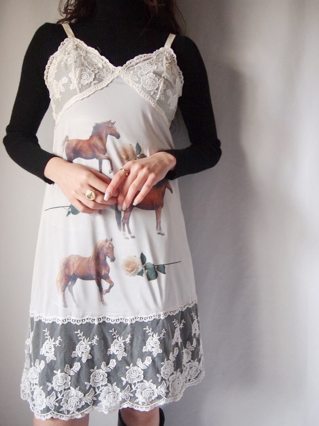 ホワイトお馬さん×お花ランジェリー
