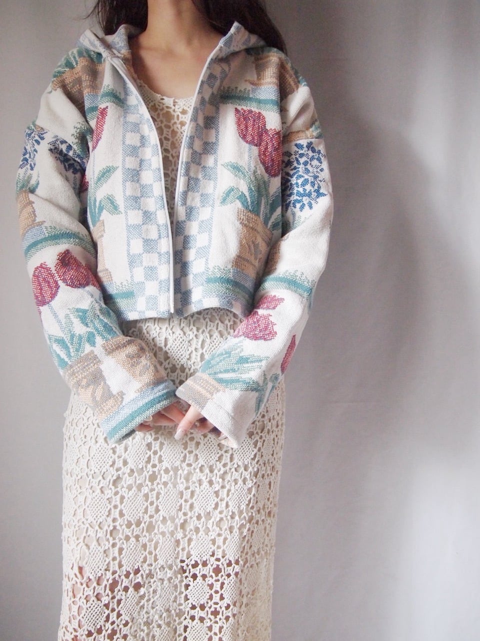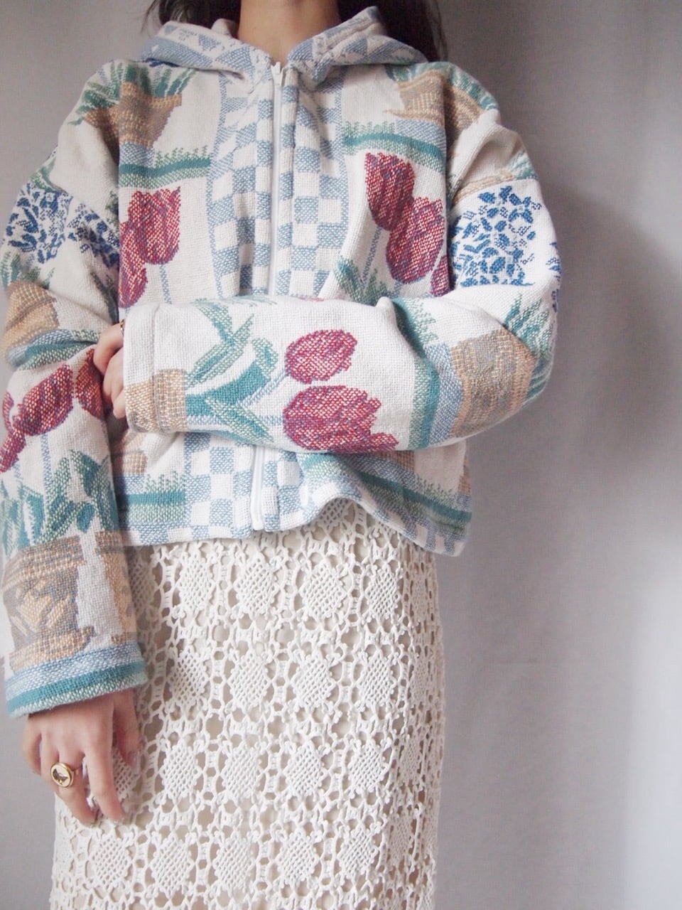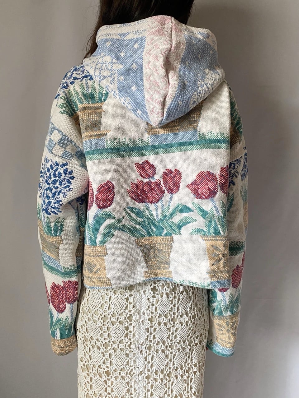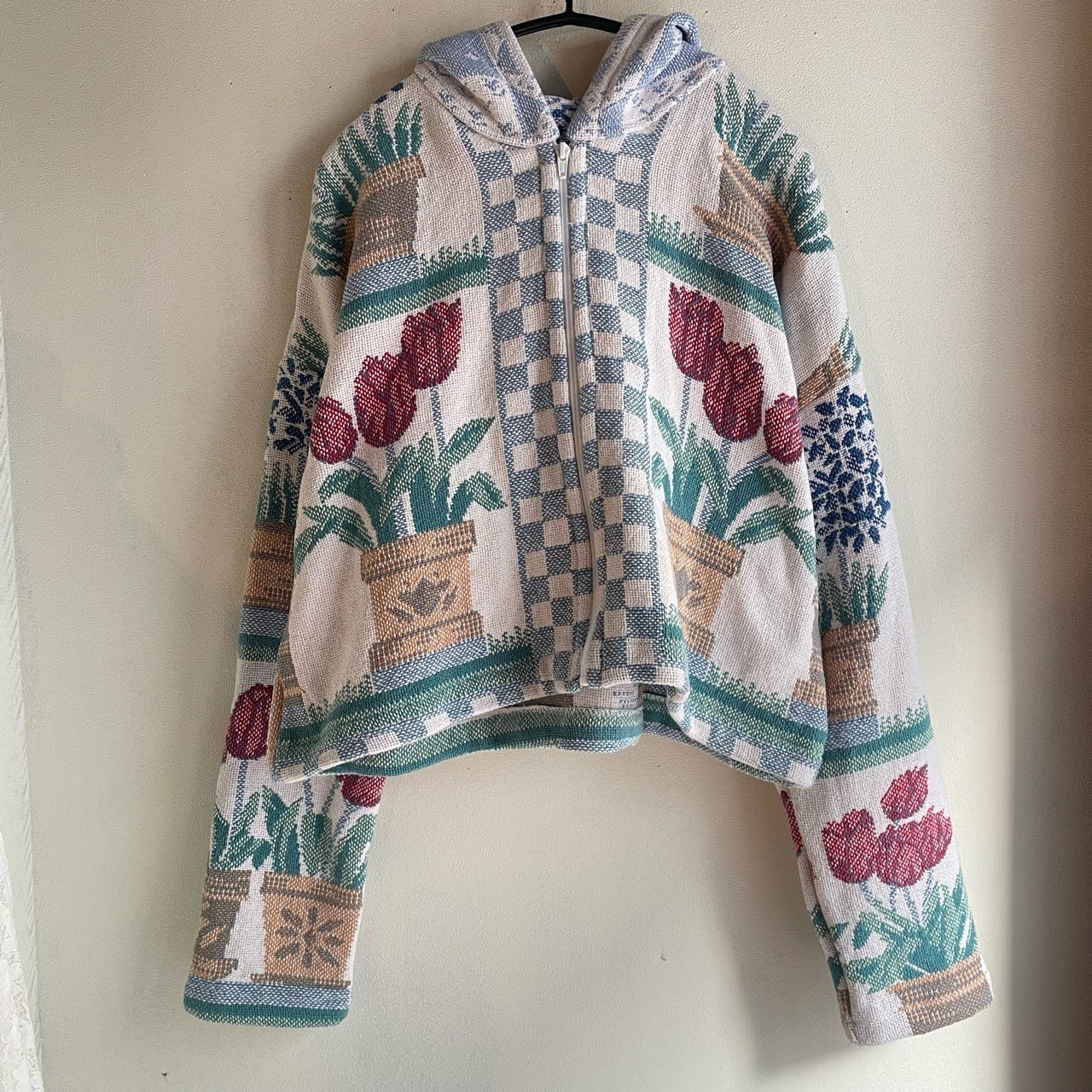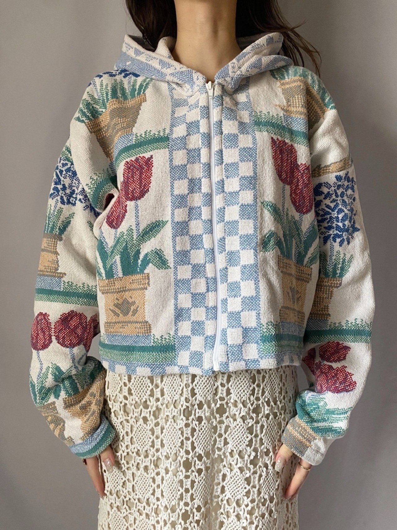 チューリップ柄ジップアップパーカー