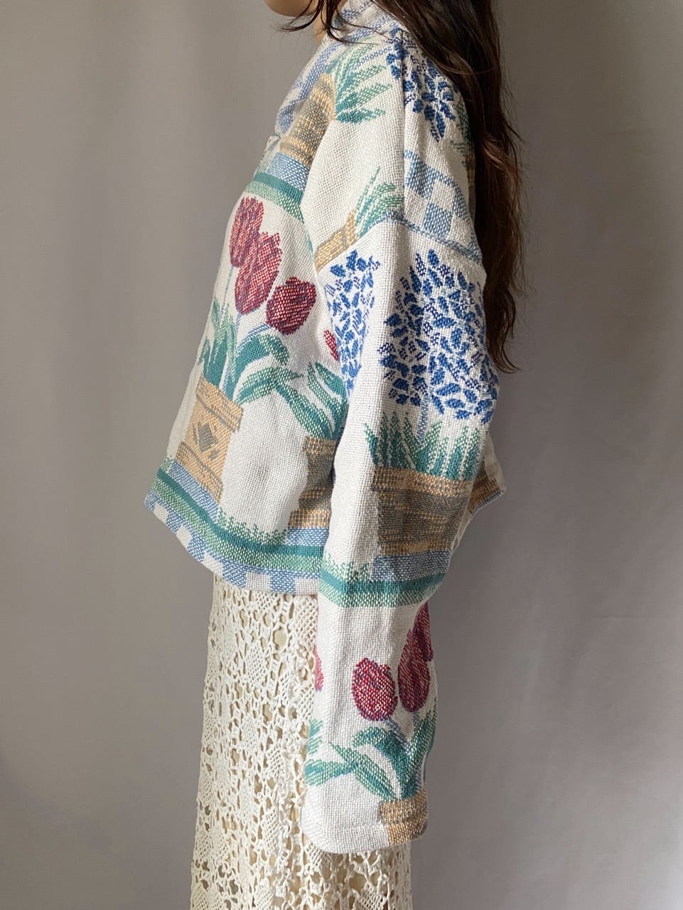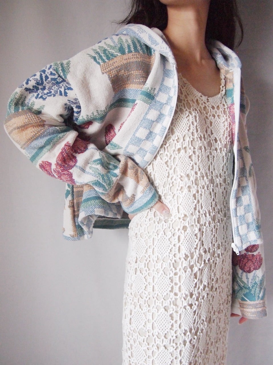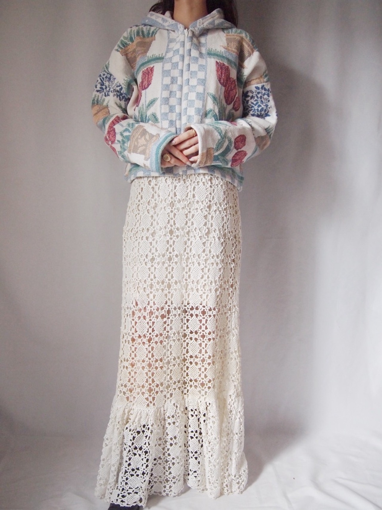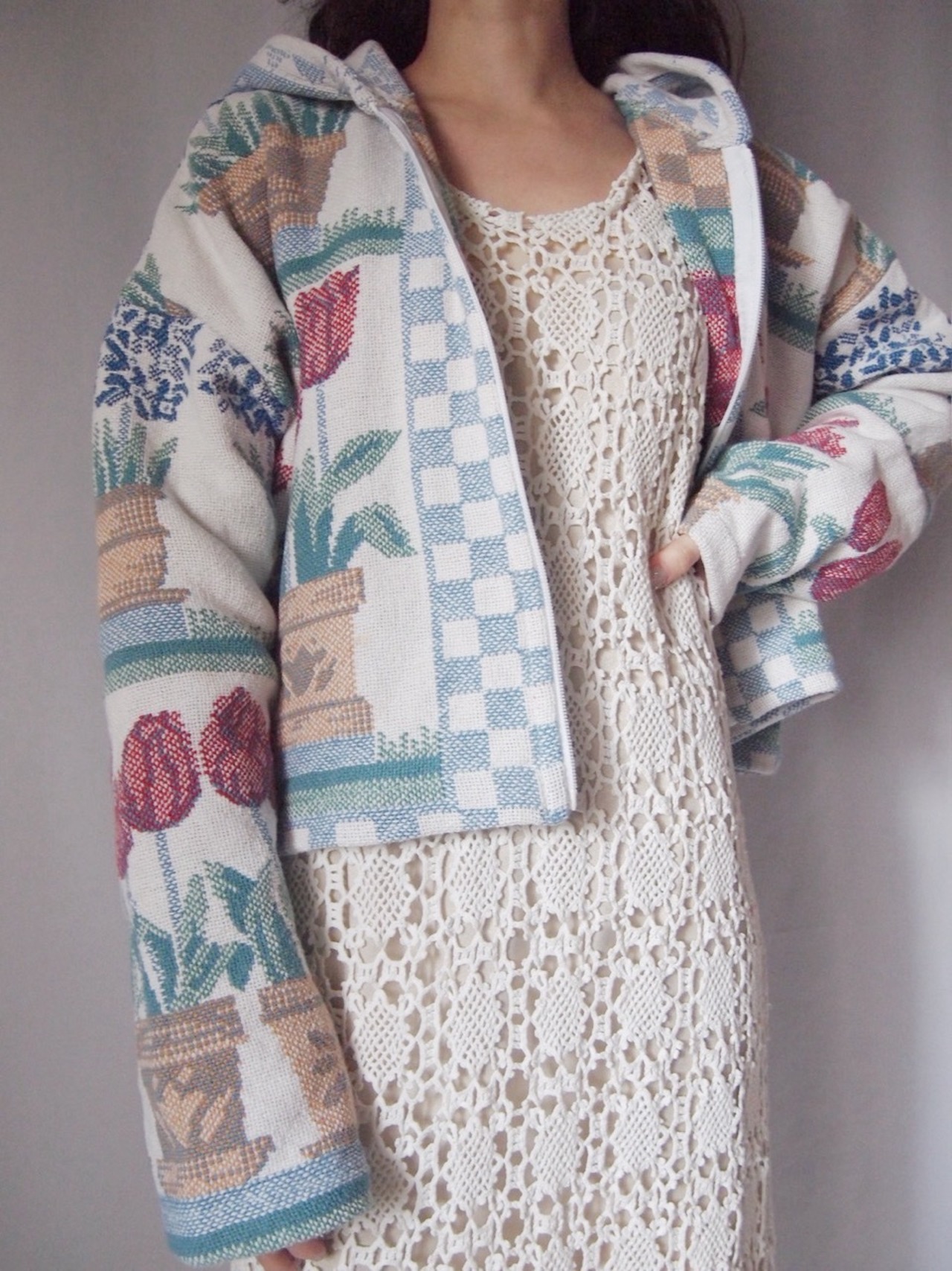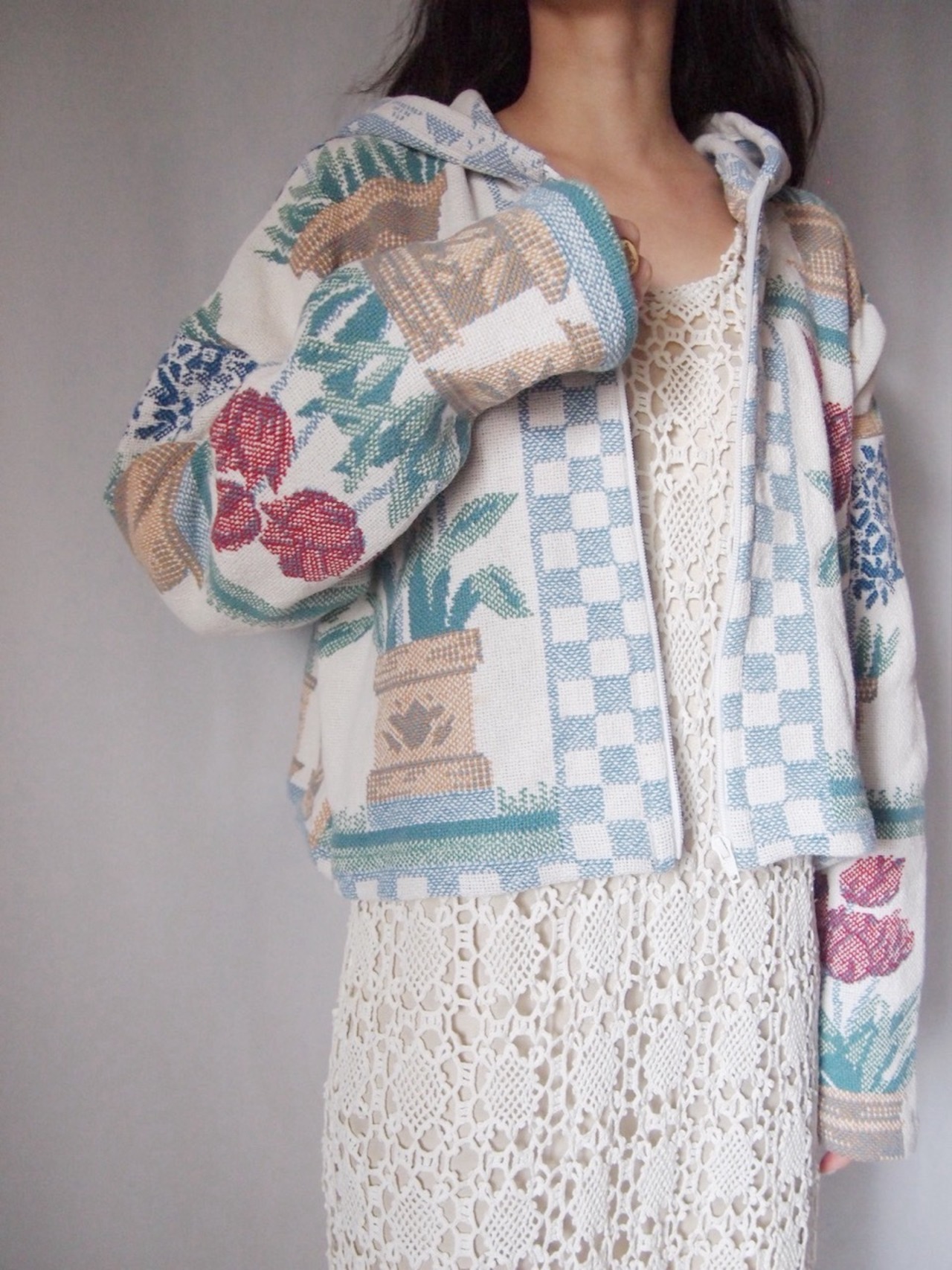 チューリップ柄ジップアップパーカー