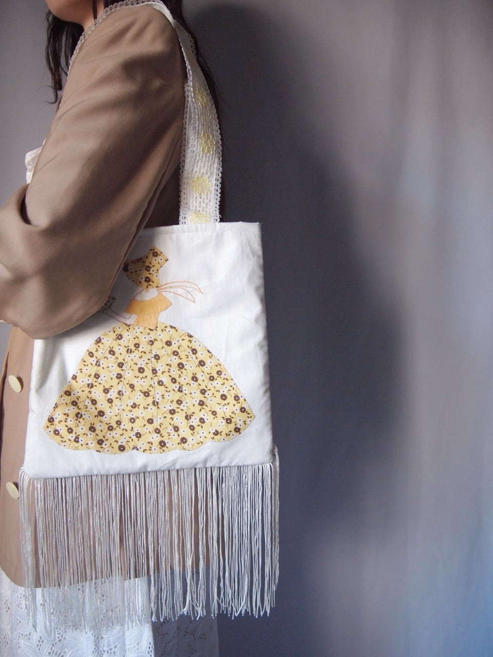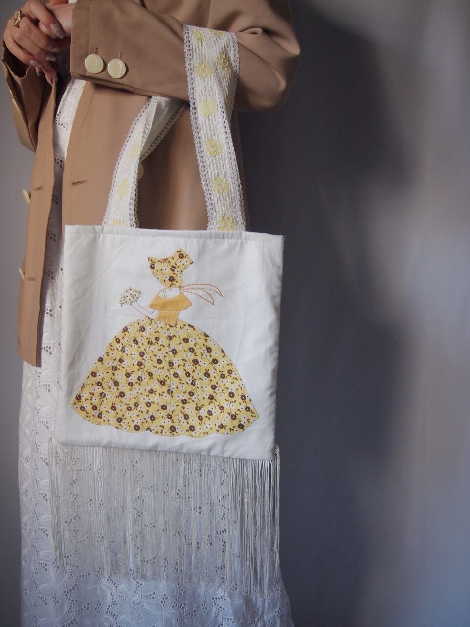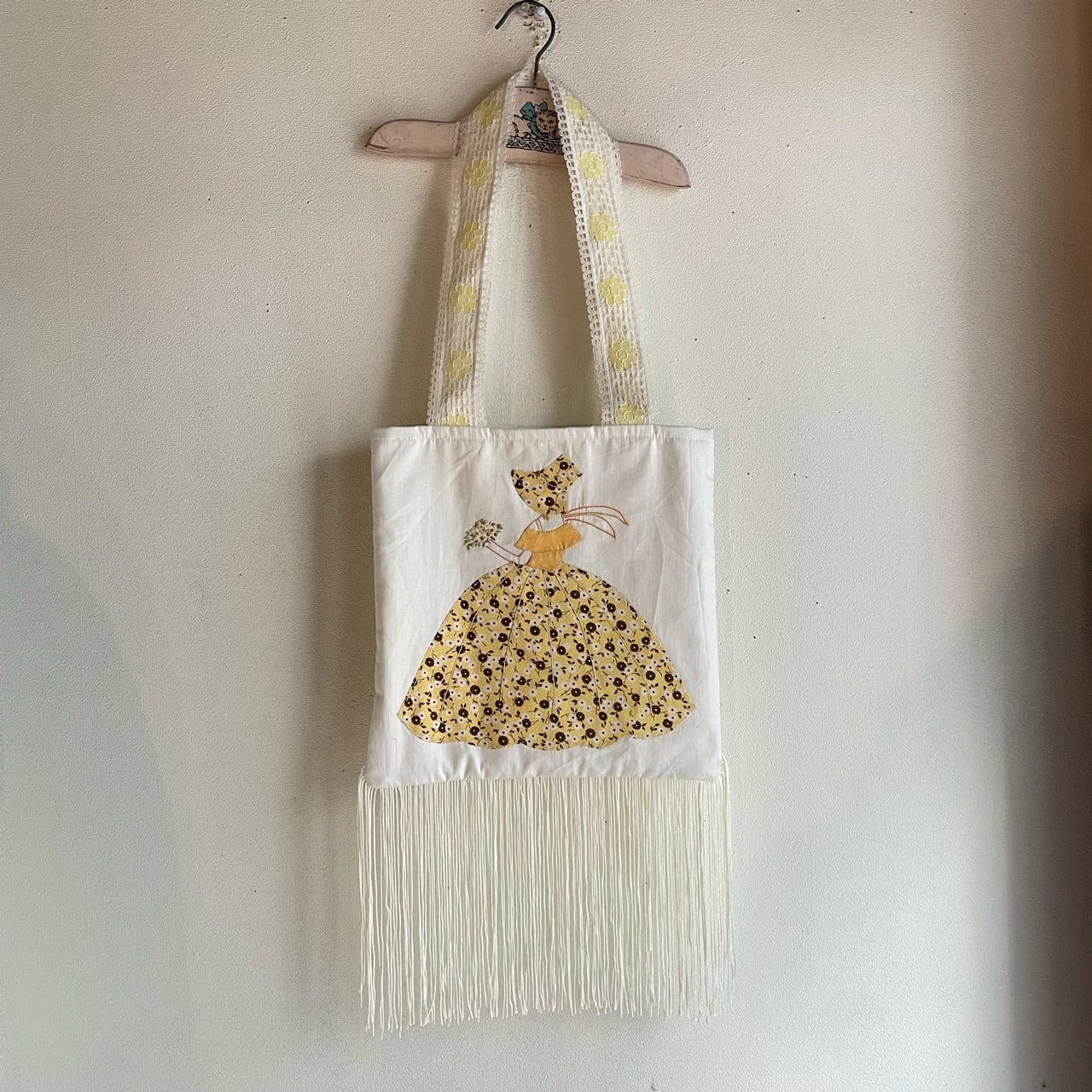 ヴィンテージファブリックフリンジバッグ(yellow)